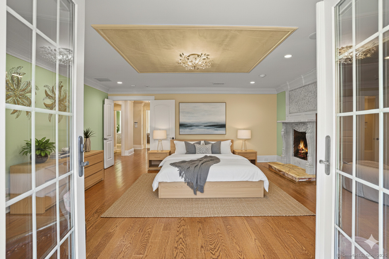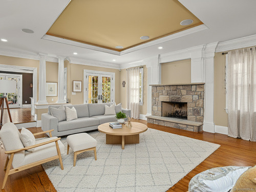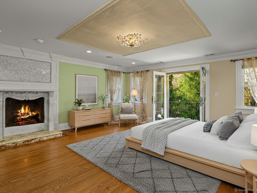 This stunning architectural masterpiece, nestled in the prestigious Silvermine neighborhood, offers nearly 8,000 square feet of unparalleled luxury. Upon entry, a grand two-story foyer makes an unforgettable first impression, featuring a striking marble staircase and an ornate chandelier that sets the tone for elegance throughout. Radiant floor heating ensures warmth and comfort during the cooler months. Natural light floods the interiors through soaring two-story windows, illuminating the gourmet kitchen. State-of-the-art stainless steel appliances complete this culinary masterpiece, while an adjacent sunken family room, anchored by a natural stone fireplace, offers the perfect space for relaxation. Upstairs, the primary suite is a retreat unto itself. Nestled in its own wing, it features a private balcony overlooking the serene wooded backyard, a fireplace encased in imported marble, and a spa-like bath with a rain shower, multiple shower heads, a whirlpool tub, and a dedicated space for meditation. A vast in-law suite or 5th bedroom offers complete autonomy, featuring its own kitchen, laundry, family room, and bathroom-ideal for extended family or guests. The finished lower level, spanning over 2,000 square feet, boasts a recreation/fitness room, billiards room, and a state-of-the-art home theater. Host unforgettable events with a full outdoor kitchen or unwind by the fire pit with loved ones. Welcome home to where luxury, design, and comfort harmoniously converge.