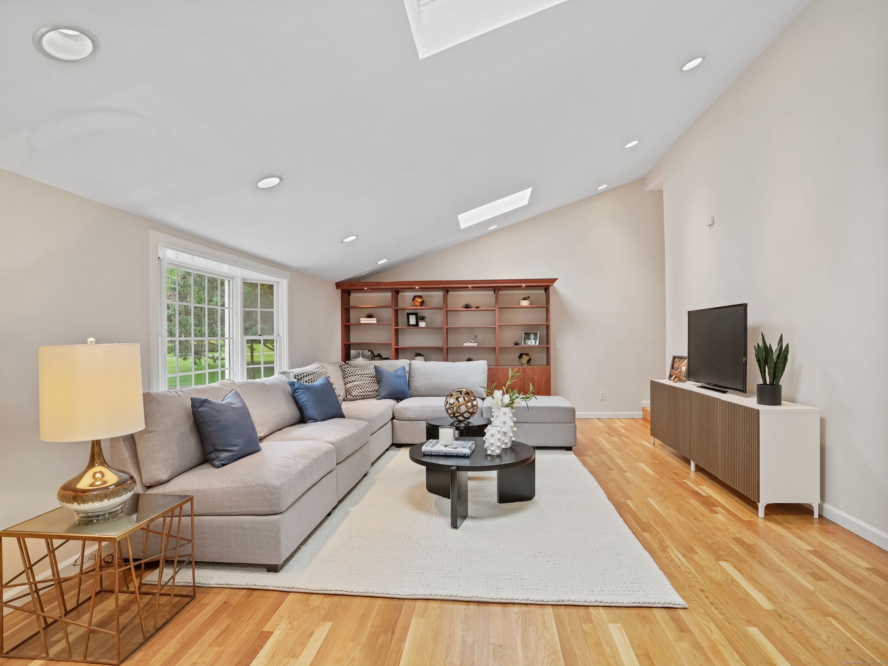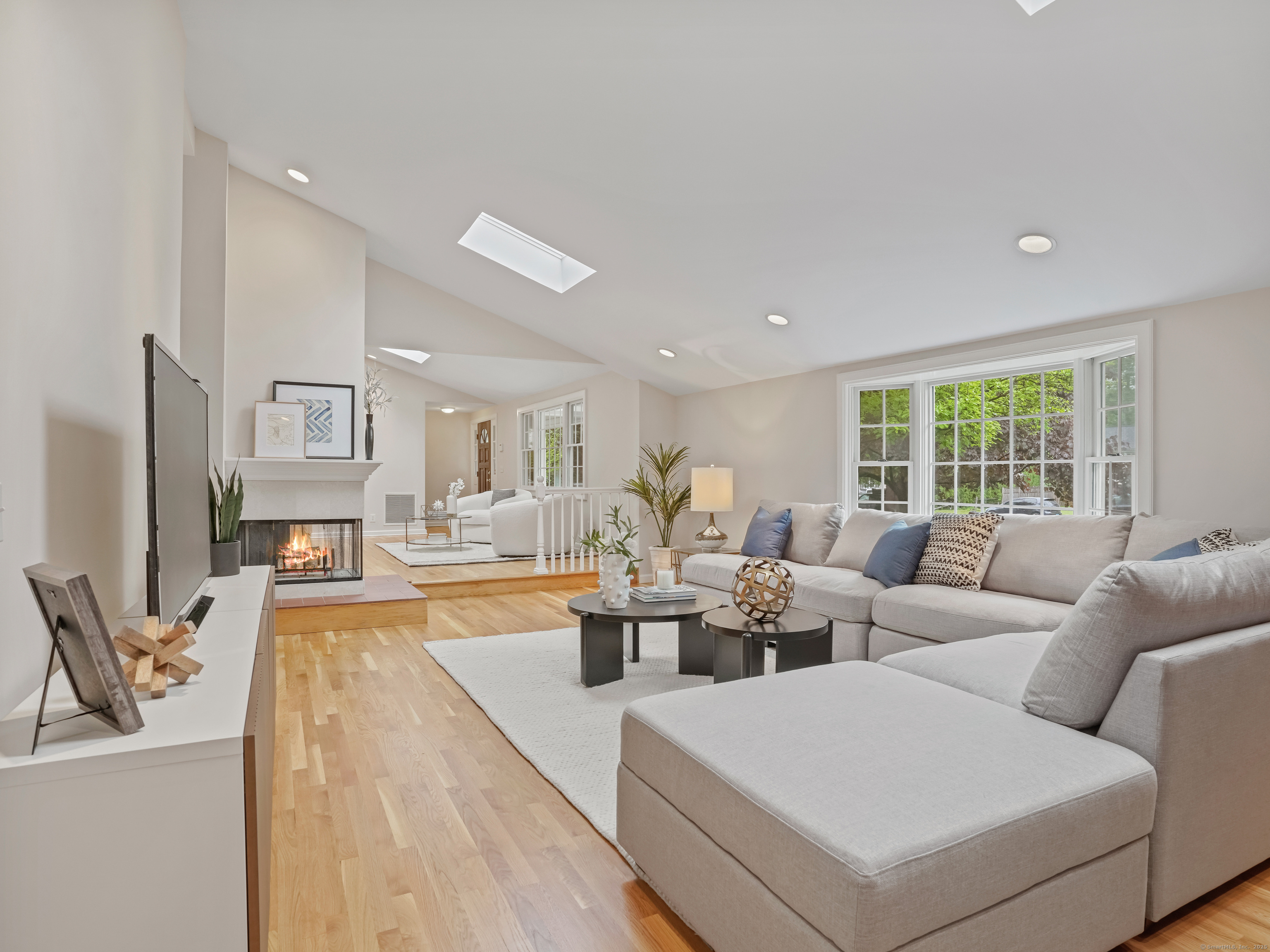 Move right into this pristine, sun filled, and inviting Ranch tucked away at the end of a quiet cul de sac in the heart of historic Silvermine! Conveniently located on the New Canaan border with access to Gray Barns Inn and Restaurant, Silvermine Art Guild and the Silvermine Market! Exuding both Character AND Curb Appeal, this home features professionally landscaped property with mature plantings and trees, a fenced-in backyard and private deck. Be delighted as you step into the sun-drenched open floor plan with vaulted ceilings, skylights, fireplace and built-ins. Huge great room above the oversized 2 car garage offers an extremely flexible space with a myriad of potential uses and features NEW carpet, vaulted ceilings, skylights and wall of windows! Newly refinished, gleaming hardwood floors throughout the main living area, freshly painted interior and new carpet in the family room. An additional 1,120 sf of finished basement with ceramic tile flooring offers a variety of uses... playroom, exercise room, work room and more!