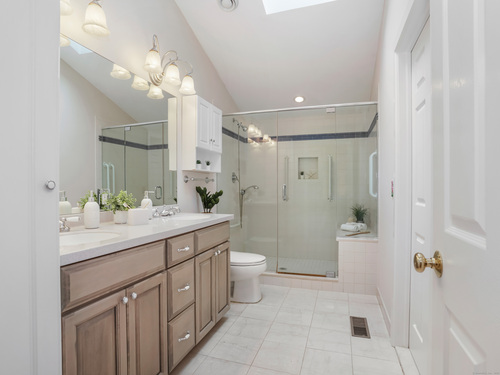 Skylight, Corian Counters, Double-Sink, Full Bath, Stall Shower, Tile Floor