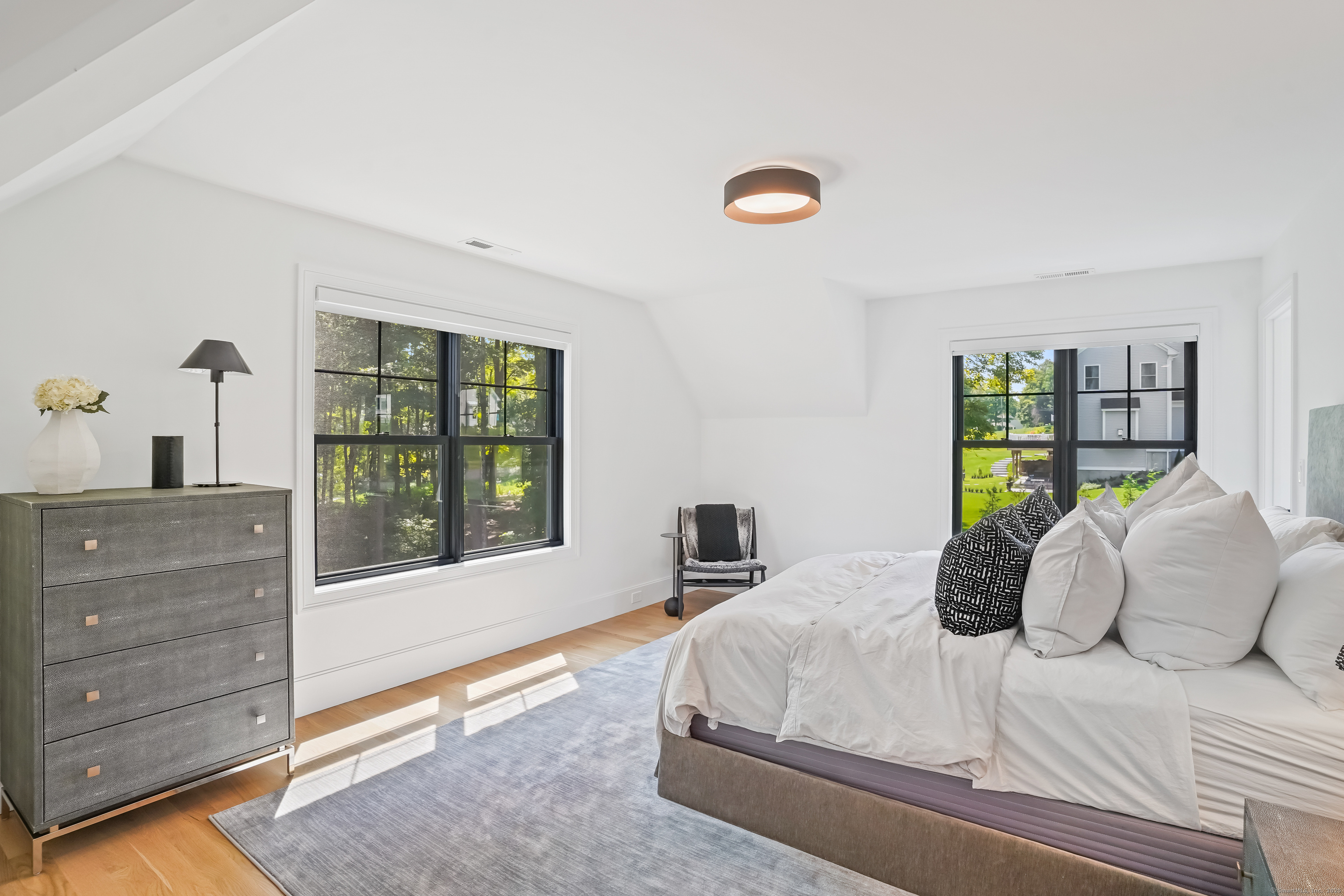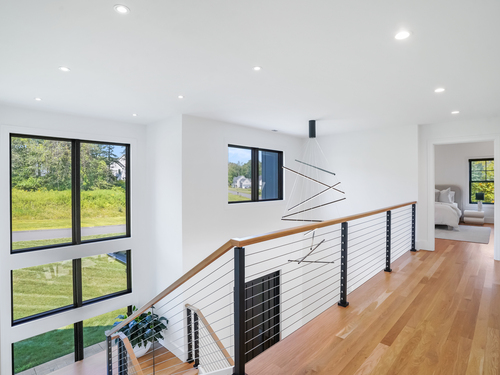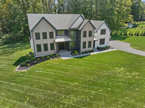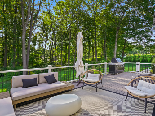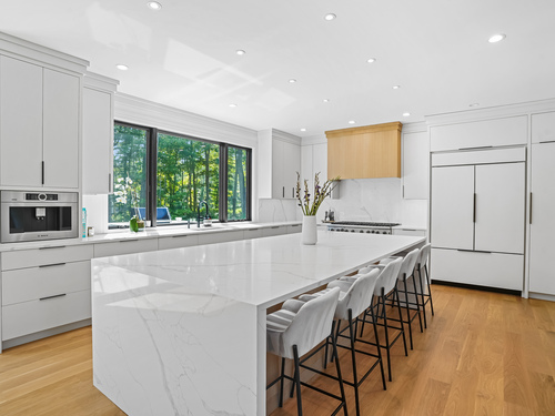 Magnificent Home in Private Cul-de-Sac.Tucked within enclave of newer,high-end homes,this exquisite residence offers a perfect combination of architectural drama and everyday comfort.Even when entering through the Side Door, you'll be immediately struck by the home's open-concept design and impeccable finishes.A massive cantilevered metal front door makes a bold statement for guests,opening to a soaring two-story foyer w/striking designer lighting.Wide-plank white oak flooring flows seamlessly through LR,DR,&expansive eat-in kitchen,creating a natural sense of continuity.Kitchen is a chef's dream,anchored by oversized quartz waterfall island w/seating for five & undercounter lighting.Professional-grade appliances include 8-burner dbl oven Viking range w/hood,Viking microwave & warming drawer,Bosch dishwasher, Bosch Coffee Station,Sub-Zero Refrigerator.The walk-in pantry (10' x 8.6') w/pocket door offers exceptional storage & Wine Chiller.Floor-to-ceiling windows flood the space with natural light, enhancing the open, airy ambiance.Step outside to the oversized Trex deck or relax on the concrete patio,surrounded by professional landscaping&mature arborvitae for privacy.The Primary Bedroom Suite is a private retreat, featuring 2 Walk-in Closets & Oversized spa-like bath w/walk-in shower, separate Soaking Tub,water closet w/Kohler commode,adjustable backlit mirrors w/defogging capabilities (which are throughout the home). Continue to Addendum