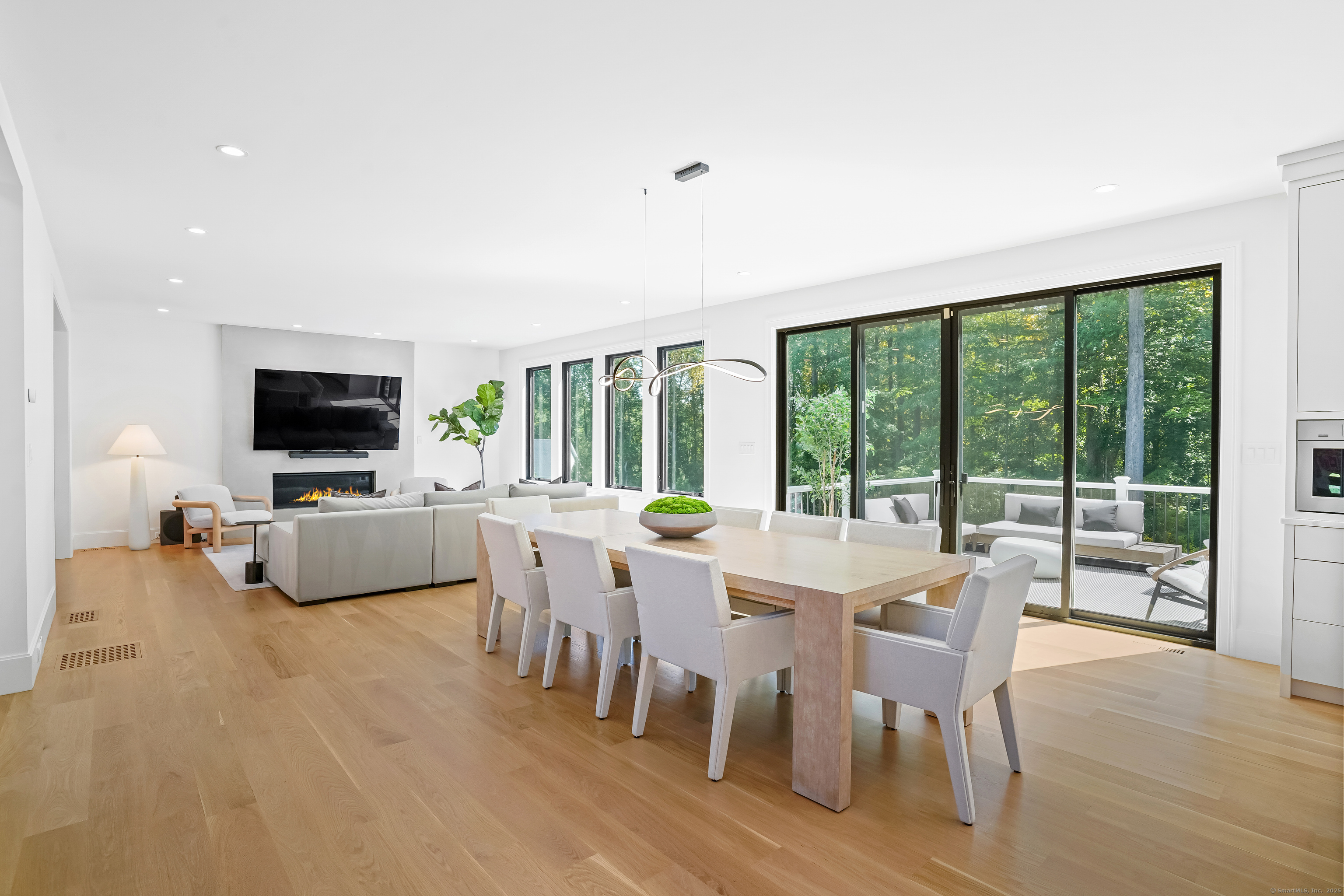 9 ft+ Ceilings, Balcony/Deck, Combination Liv/Din Rm, Fireplace, Sliders, Hardwood Floor