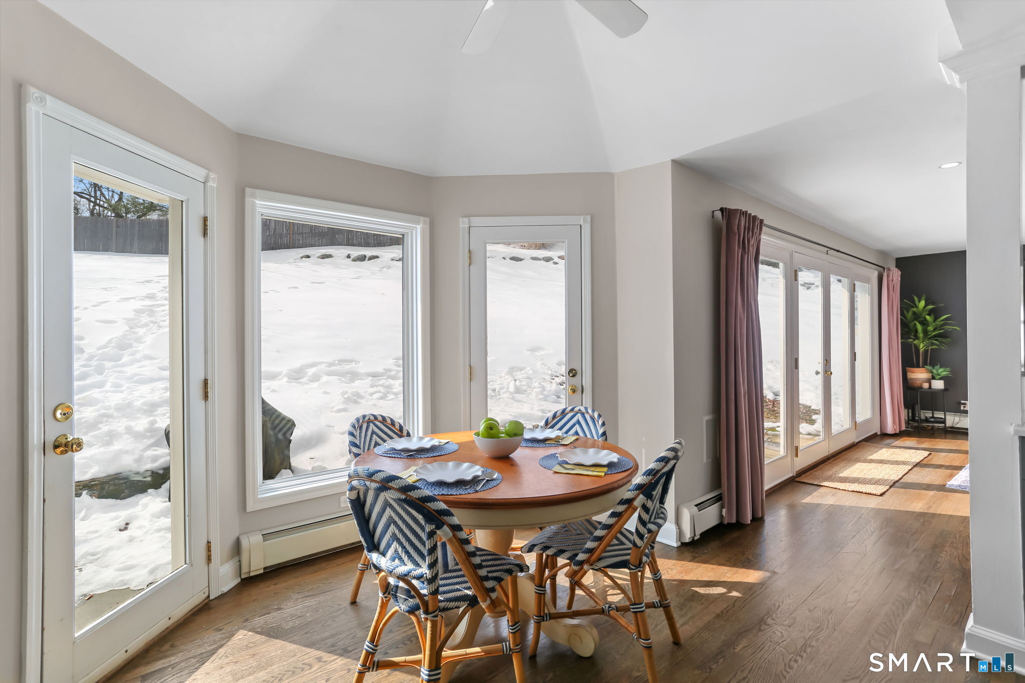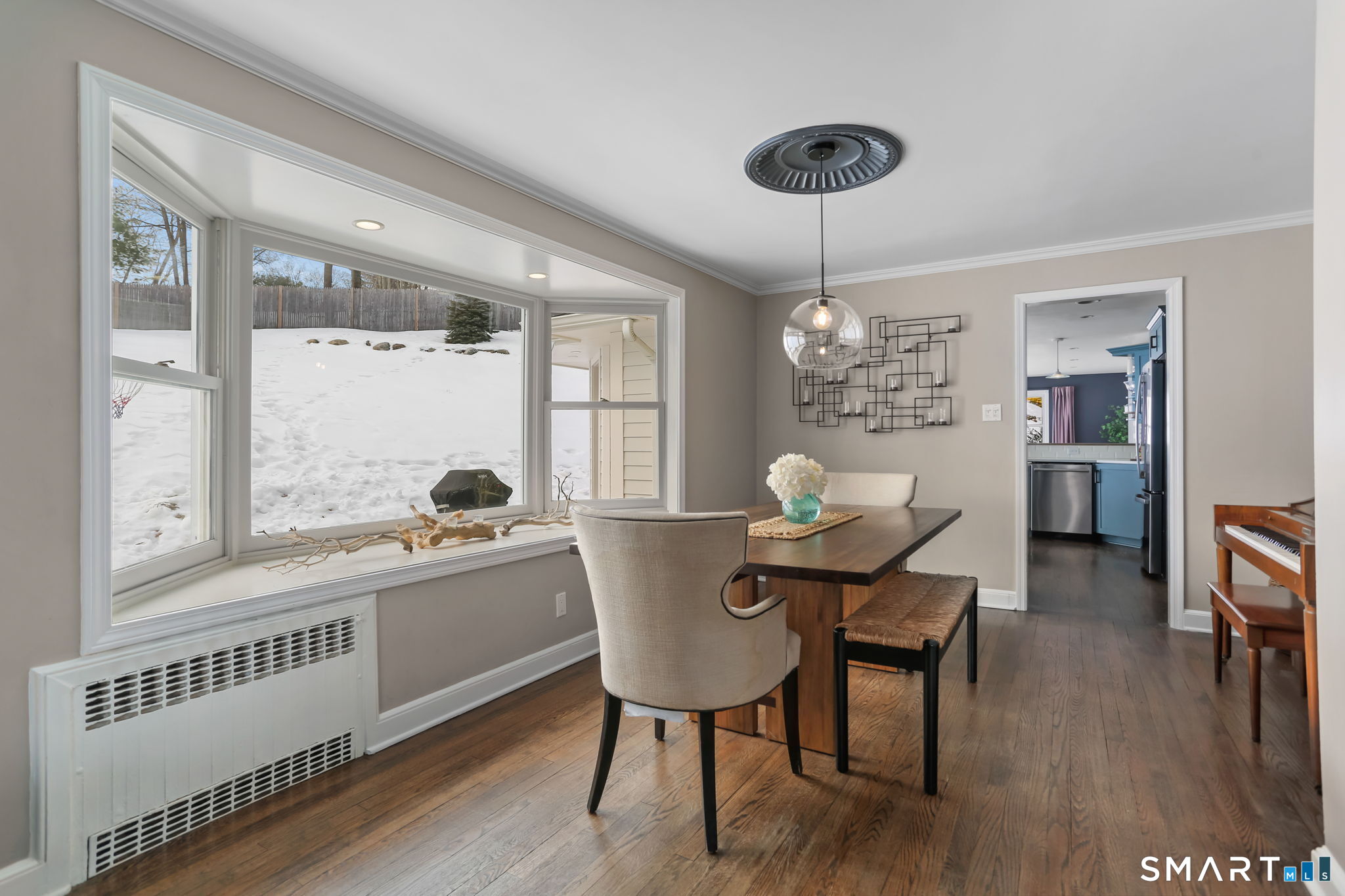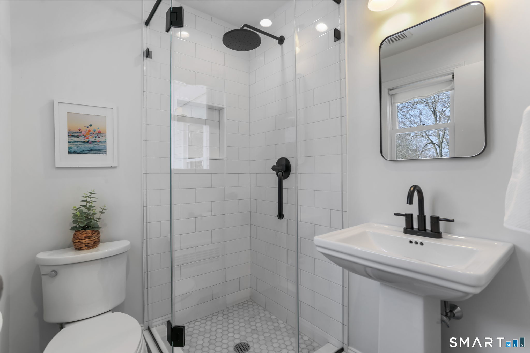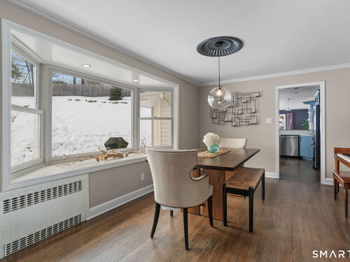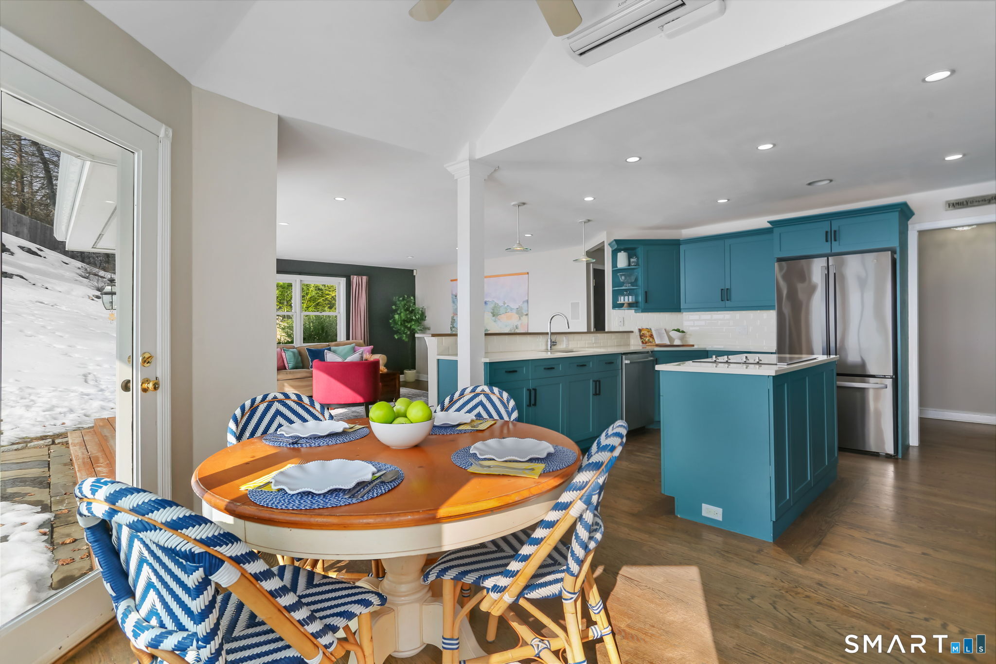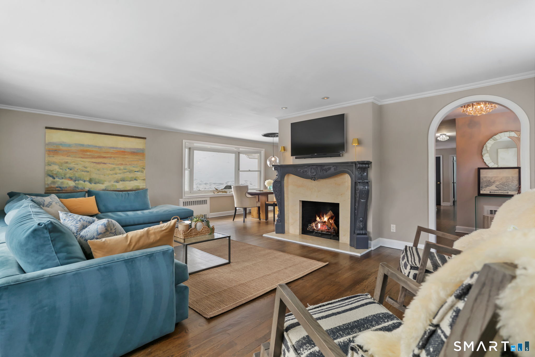 Westport Phenom: Anthropology-inspired, sun-drenched, stylish and inviting 4 Bed, 3 Full Bath home on .7 acres on a quiet cul-de-sac located in the coveted Greens Farms neighborhood, easily walkable to grocery, restaurants, shops, schools. Gleaming hardwood floors throughout add warmth and character. Spacious front living room with a show-stopping fireplace connects to cheery dining room. Great entertaining flow with an open concept kitchen and adjoining family room - both with French doors onto a large stone patio overlooking the lush, pretty backyard. New kitchen cabinets plus Island, double ovens, two sinks, bar stool counter. Recent upgrades: New Roof, Hardie Board siding, Central AC, Whole House Generator, Oil Tank, Cedar Fencing, Tree Landscaping and more. Flexible floorplan w/two Primary options: First-Floor Primary with new en-suite bath or Upper-level with wrap-around balcony and two closets, one walk-in. Luxurious second floor full hallway bath with radiant heat floors, double sink quartz vanity, plenty of storage. Oversized two-car garage, fully-finished walk-out basement with mudroom/laundry, gym, rec room. Fully-fenced backyard with flat areas for playsets/sports. Stellar curb appeal w/stone retaining walls, steps, Belgian Block lined driveway and commanding presence on its elevated "Builder's Prime Lot" at the end of the cul-de-sac - no thru traffic. Incredibly peaceful, private property near Metro North, beaches, shops, top-rated schools - in fabulous Westport!