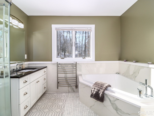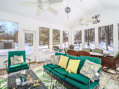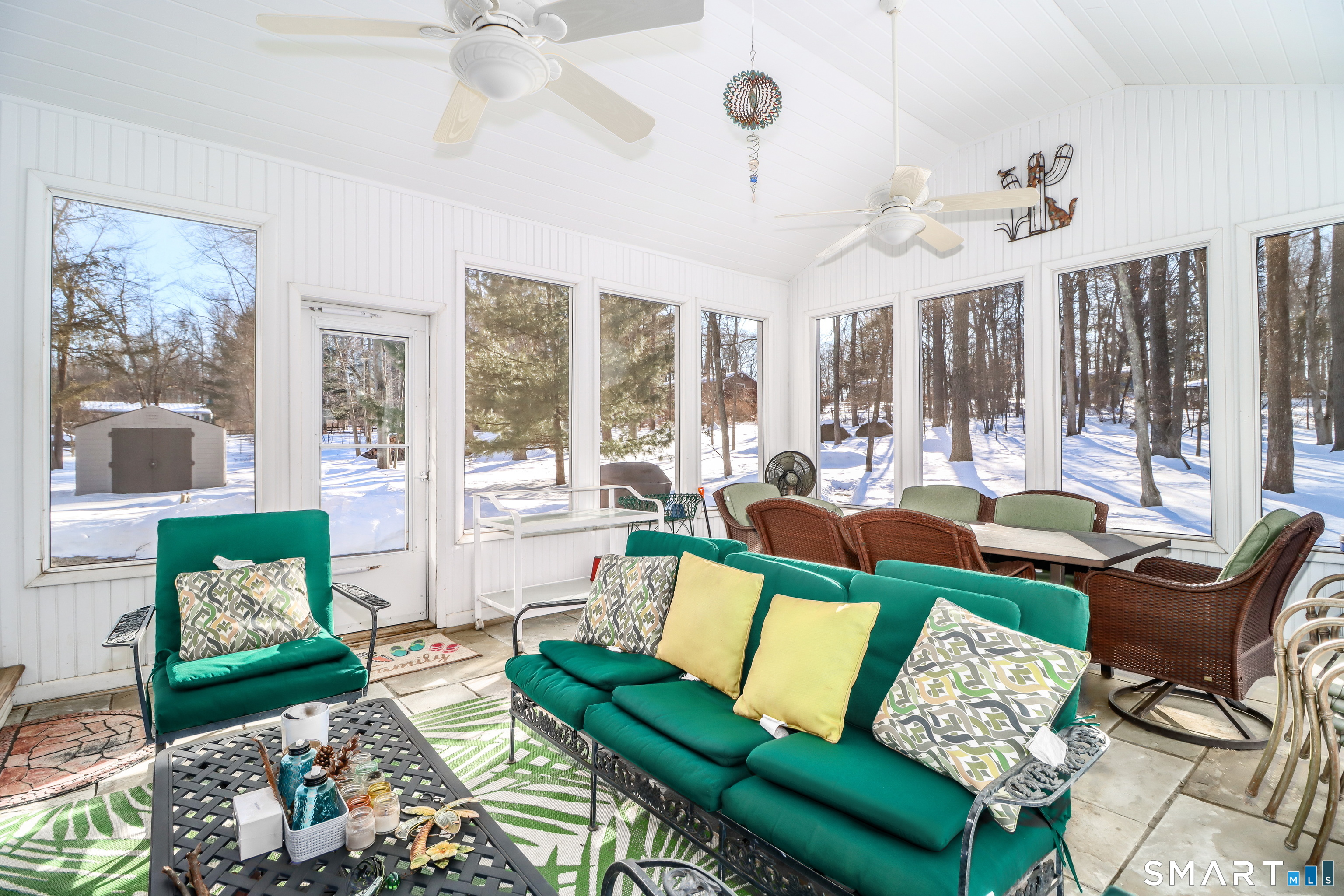 Completely rebuilt in 2015, this exceptional 4-bedroom, 3.5-bath residence offers quality craftsmanship throughout. The open-concept main level seamlessly connects the custom Kingswood kitchen to the living area, anchored by a classic wood-burning fireplace. The kitchen features heated tile floors, an expansive center island, and direct access to an impressive screened porch. With vaulted ceilings, a flagstone floor, and serene backyard views, the screened porch serves as a stunning three-season extension of the home. Up a half level are 3 well-appointed bedrooms, including an en-suite with full bath, along with a spacious family room and a private office tucked at the end of the wing. The entire third floor is devoted to a luxurious primary suite retreat with fireplace, an extraordinary walk-in closet, and a spa-like bath with heated floors and jetted tub. The finished lower level includes a wet bar, powder room, and separate laundry, offering flexible space for recreation or media. Gorgeous flowering trees, a level yard, an expansive bluestone patio, and a covered dog enclosure are just a few of the outdoor features that enhance this property. Reconstruction updates in 2015 also include spray foam insulation, updated electrical and plumbing, direct-fired water heater, and central air. Septic system installed (1999). Ideally located in a quiet subdivision near Candlewood Lake, I-84, and within walking distance to the Brookfield YMCA.