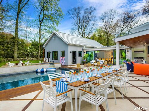 Welcome to 8 Pasture Lane, a property that redefines FUN in luxury living with resort-style elegance in one of Darien's most desirable locations. This stunning 6-bedroom, 5,500 sq. ft. home offers impeccable design, thoughtful architecture & an extraordinary flow that's as unique and functional as it is beautiful. From the moment you step inside, the first floor sets the tone for a home that's both inviting & impressive. Its seamless layout creates an open and effortless connection between spaces, with true showstoppers including the awesome kitchen-family room & vibey primary suite. A rare change from the everyday Darien offering this home just invites easy living & serious entertaining. But the magic doesn't stop indoors. Sitting on just under an acre, the landscaped grounds feel like your own personal retreat. Whether it's a refreshing dip in the gorgeous heated pool, a soak in the spa, or relaxing in the private back yard, there's something here for everyone. The turf field, in particular, is a dream for athlete's training or a little outdoor fun-it's perfect for practices, games, or simply running around. Want more? The finished basement offers endless versatility, ready for a playroom, or your own private media center. And let's not forget the unbeatable location-just minutes from beaches, shops, top-notch restaurants, & the train, 8 Pasture Lane seamlessly combines convenience with tranquility. A lifestyle designed for making memories & savoring every moment.