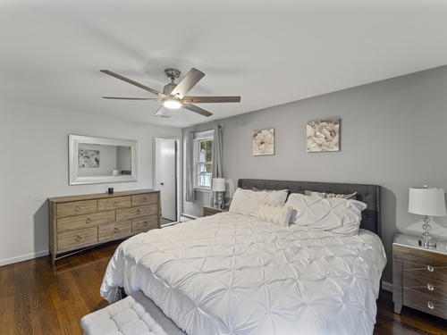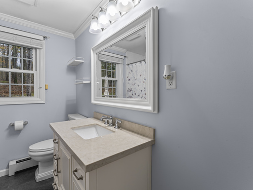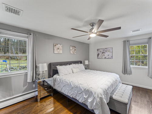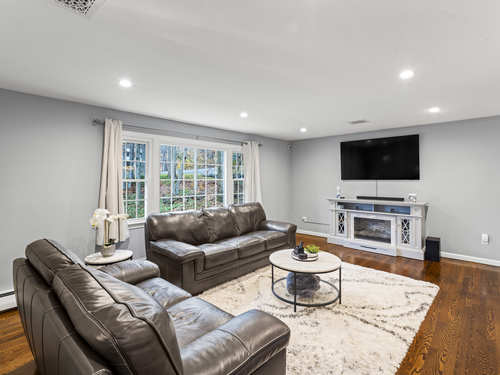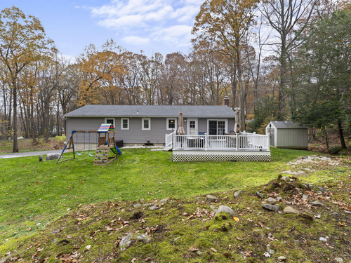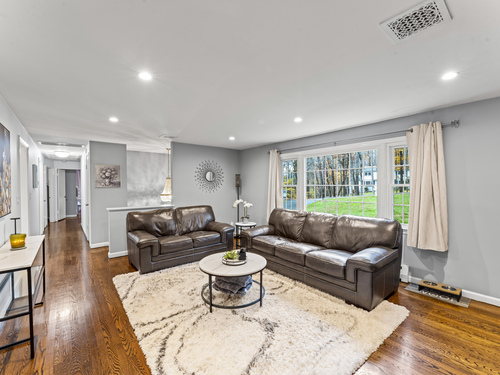 Move right in to this beautifully updated 3-bedroom, 2-bath raised ranch, perfectly set on a level lot in a desirable cul-de-sac neighborhood. This light-filled home features a refreshed kitchen with solid wood cabinetry, stainless steel appliances, and granite counters - perfect for any aspiring chef. The spacious family and dining rooms offer an ideal flow for entertaining, while the lower-level den is a comfortable spot for movie or game nights. The generously sized primary suite boasts ample closet space and a brand-new, spa-like full bath. Two additional bedrooms share another refreshed full bath. Gleaming hardwood floors run throughout most of the home, complemented by fresh paint and a new central A/C heat pump system for year-round comfort. New septic system in 2019, New siding, roof, windows and water filtration system all completed in 2020 adds peace of mind of any new buyer! Outside, a new front patio with walkway, driveway, and back deck pair beautifully with professional landscaping, showcasing true pride of ownership. All this in a wonderful neighborhood, close to town shopping, restaurants, and local conveniences!