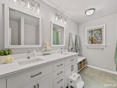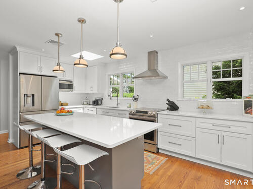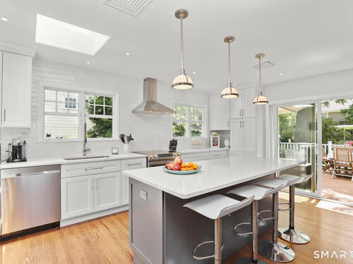 Nestled at the end of a private cul-de-sac in the heart of Old Greenwich Village, this beautifully renovated four-bedroom home is close to schools, train and Old Greenwich Point. The open-concept family room and kitchen create a welcoming space that flows seamlessly to a sunny deck and a lush garden, perfect for outdoor relaxation and entertaining. First floor primary suite plus an additional three double bedrooms on second floor. Lower-level finished office space not included in total square feet. Move right in to this prime location and enjoy all that Old Greenwich has to offer. House is not in an AE flood zone.
