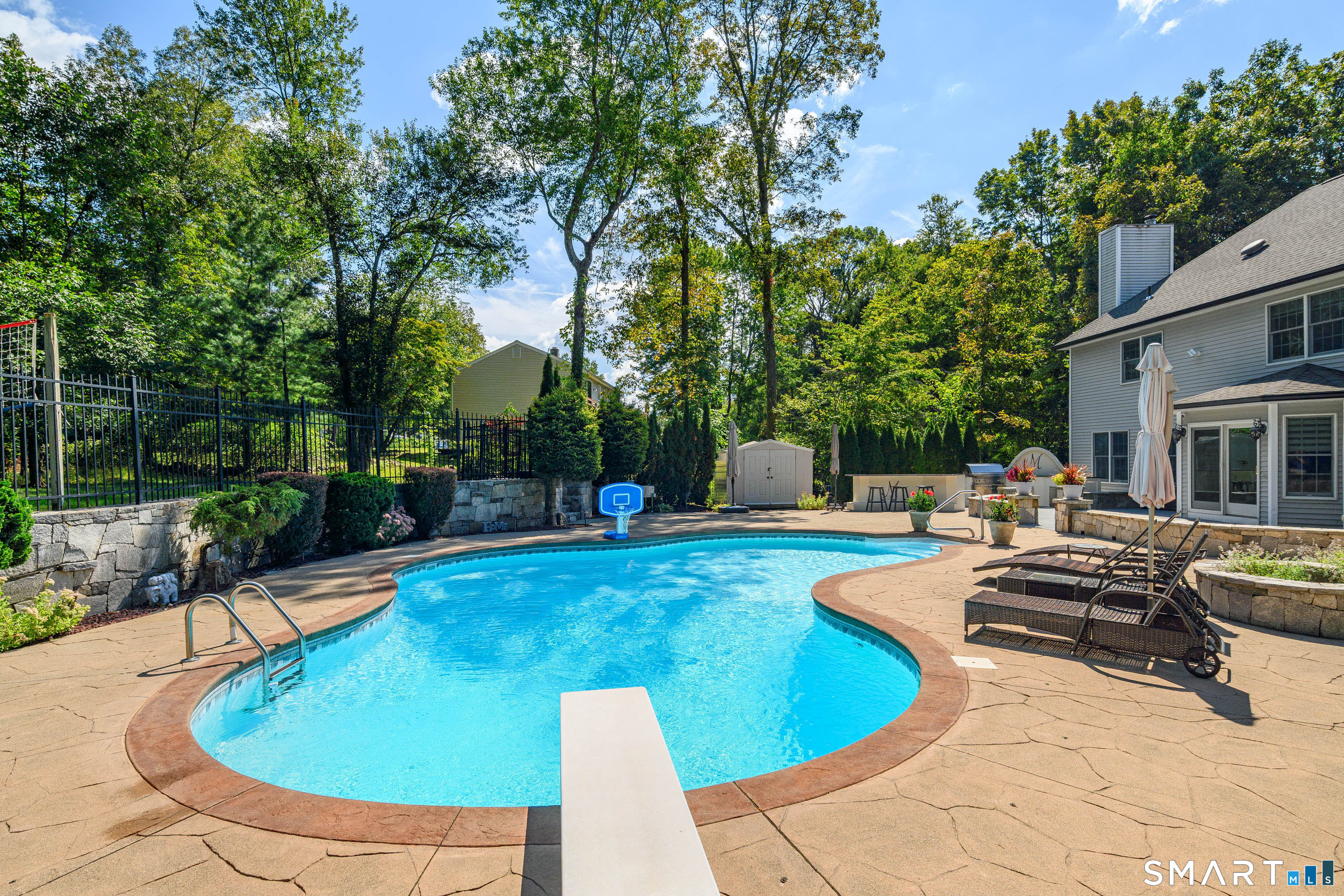 Move in-ready spacious 4 bedroom 3 1/2 bathroom retreat that offers exceptional indoor and outdoor living on a large, private, park-like property. The main level features are a formal living room and dining room with hardwood floors, eat-in kitchen with granite countertops, and family room with a propane fireplace. The upper level includes 4 generously sized bedrooms w/hardwood floors, a laundry room, and bonus room. The finished lower level offers a large gathering area and a separate space for a home office or overnight guests & full bathroom. Backyard oasis complete with an inground saltwater pool, outdoor kitchen, and patio, all surrounded by professionally landscaped grounds that offer privacy. Set back from the road, the home provides a peaceful setting. Additional highlights include a 3-car attached garage, a private and level lot, a new roof (2025), new well pump (2026), and new well tank (2023). Easy commuting to the nearby Metro-North shuttle or a short drive to the Brewster/Southeast train station with direct access to NYC's Grand Central Station. Major highways including I-84 and I-684 provide convenient access to Stamford, Westchester, and New York City. Shopping, dining, and medical facilities are all nearby. New Fairfield offers year-round activities, Candlewood Lake, Squantz Pond, and Ball Pond for boating, kayaking, paddleboarding, swimming, fishing, ice fishing, and ice skating. New Fairfield school district.