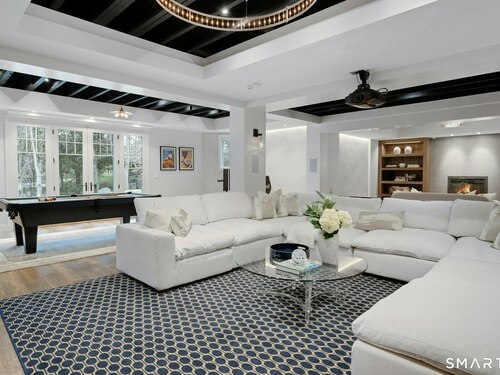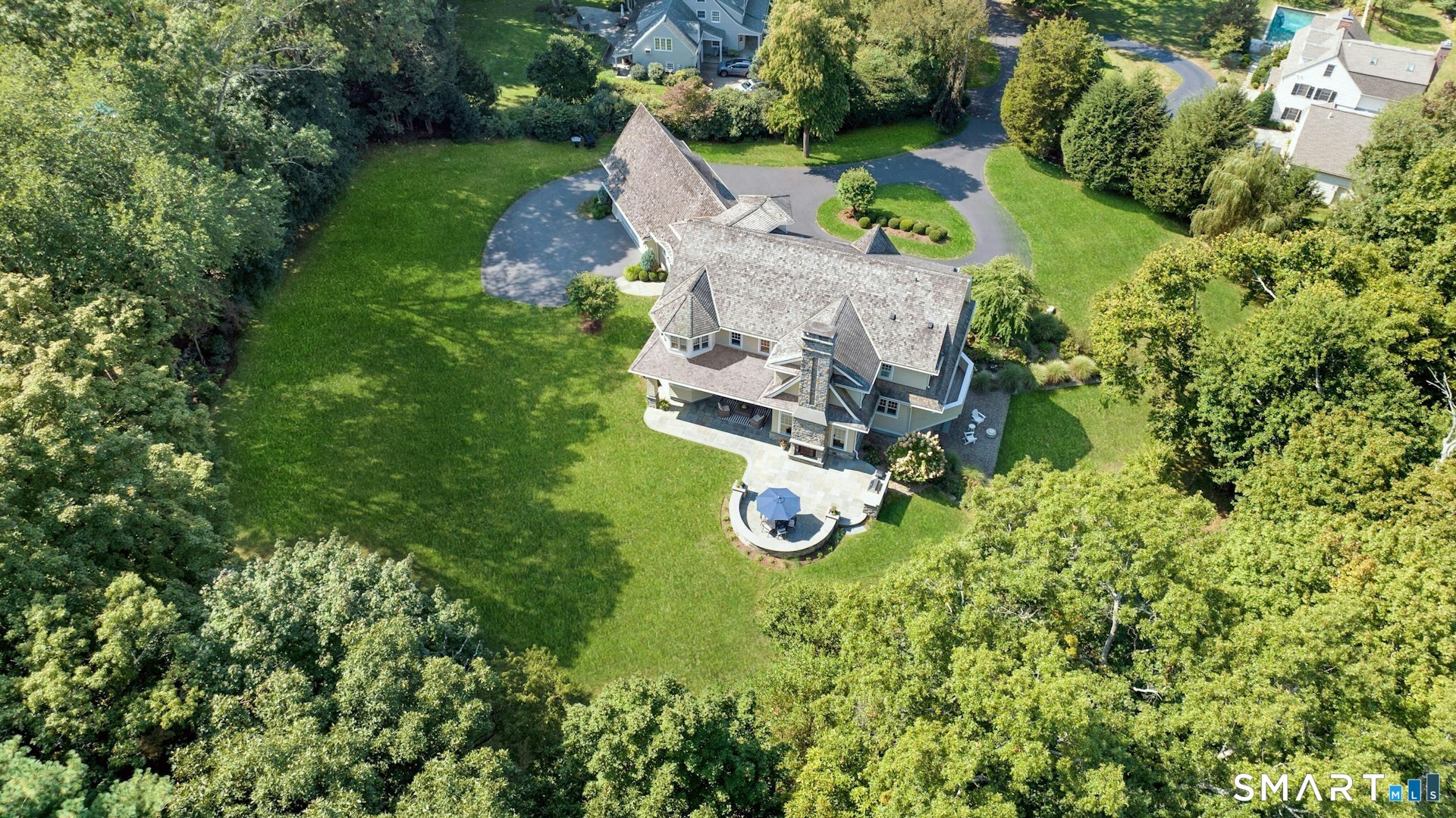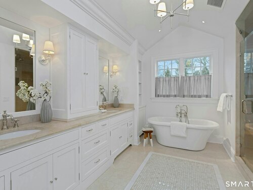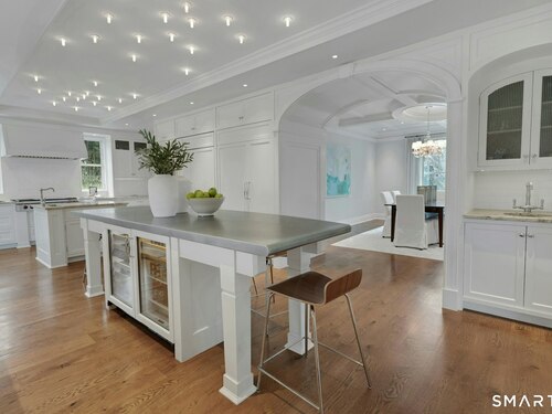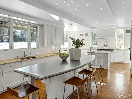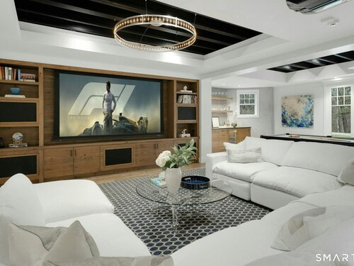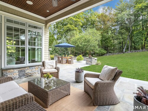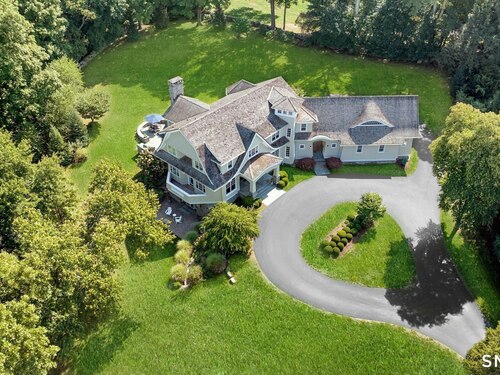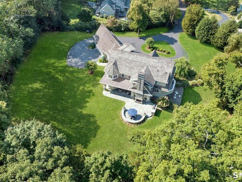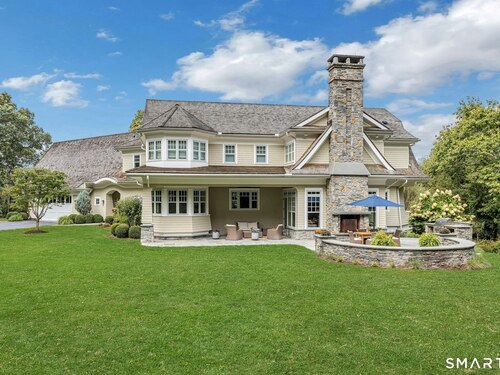 Timeless design meets modern sustainability in this stunning shingle-style home, set on 1.5 private in-town acres. Sunlight fills every room through oversized Kolbe windows, showcasing park-like grounds and mature plantings. The kitchen impresses with custom cabinetry, a handcrafted zinc island, and top-tier Wolf and Sub-Zero appliances. Step outside to a spectacular bluestone patio with an outdoor fireplace, built-in Lynx grill, and covered lounge -- perfect for entertaining. Energy-efficient geothermal heating, LED lighting, and Lutron HomeWorks automation deliver comfort with minimal electricity costs. A Stewart Filmscreen theater, fireside library, gym and wet bar elevate the walkout lower level, making it truly one of a kind. The third floor offers untapped potential, and the oversized three-car garage provides incredible flexibility for car enthusiasts or creative projects. This property offers room for a pool and and ADU, with additional details available upon request (pool plans and third floor/loft expansion plans). This move-in ready home combines exquisite craftsmanship and endless possibilities in a private and premier location.