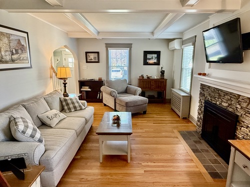 Welcome to this gorgeous 2-bedroom Cape Cod home, perfectly located just minutes from Mill River Country Club. The owner, a master finish carpenter, has infused this home with exquisite craftsmanship and timeless style. Step inside to find a custom-built hall closet and a spacious living room that flows seamlessly to a beautifully screened porch-ideal for relaxing summer evenings. The dining area opens to a gourmet kitchen featuring a charming breakfast nook and a convenient half bath. From here, step out to the screened porch and a peaceful backyard retreat. The lower level offers a versatile playroom or office with laundry, plus a separate workshop and storage area-perfect for a contractor or hobbyist. Upstairs, you'll find two cozy bedrooms and a full bath. A long driveway accommodates 4-5 cars, ideal for holidays and gatherings. Enjoy easy access to Metro-North (with direct service to NYC and Stamford), the Merritt Parkway, I-95, and I-91. Stratford residents also enjoy beach rights to several local beaches. This beautifully maintained home blends old-school charm with many modern updates-your dream home awaits!