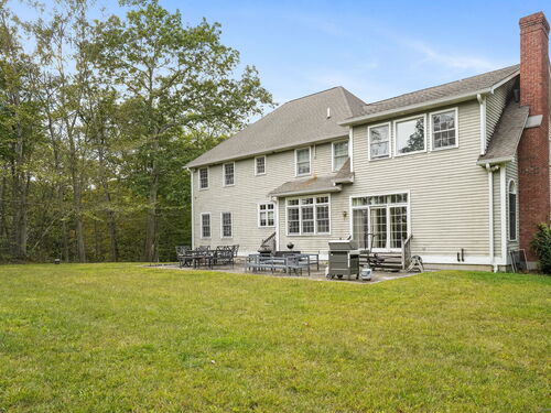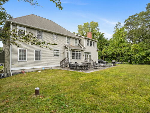 Welcome to this stately Easton Colonial, privately set on 5.74 acres at the end of a quiet cul-de-sac. A two-story foyer opens to nearly 4,000 sq ft of sunlit living space, including a chef's kitchen with center island, formal dining room, and a window-lined great room with fireplace. Upstairs, five spacious bedrooms and four full baths provide ample room, while the finished lower level adds an additional 1,600+ sq ft with a complete in-law/guest suite featuring a kitchen, bedroom, bath, and private entry. Outdoor living shines with a stone patio, expansive lawns, and wooded surroundings that offer both privacy and a natural backdrop. With three fireplaces, a flexible floor plan, and convenient proximity to major routes, this home blends timeless design with modern comfort, an exceptional opportunity in Easton.