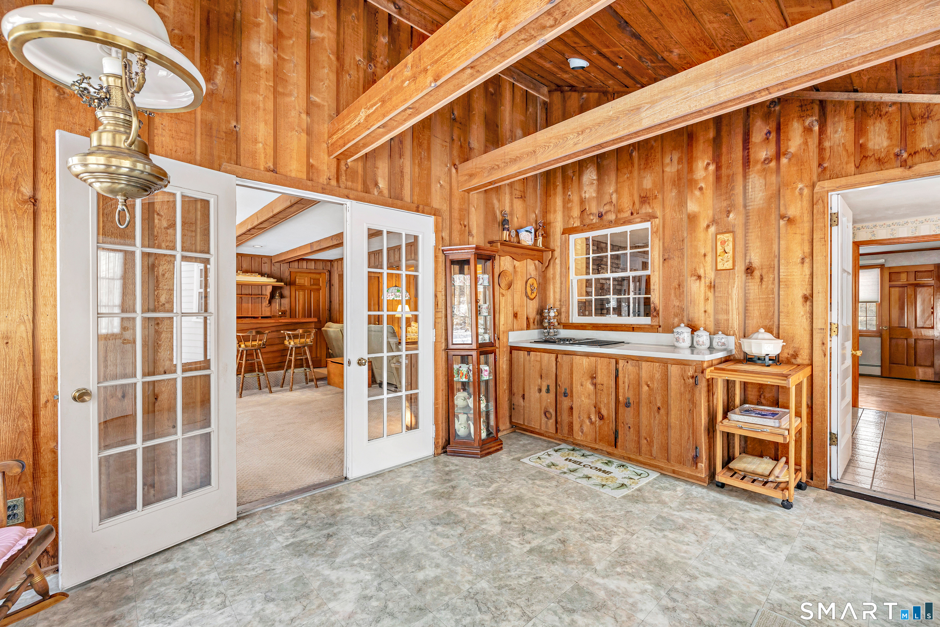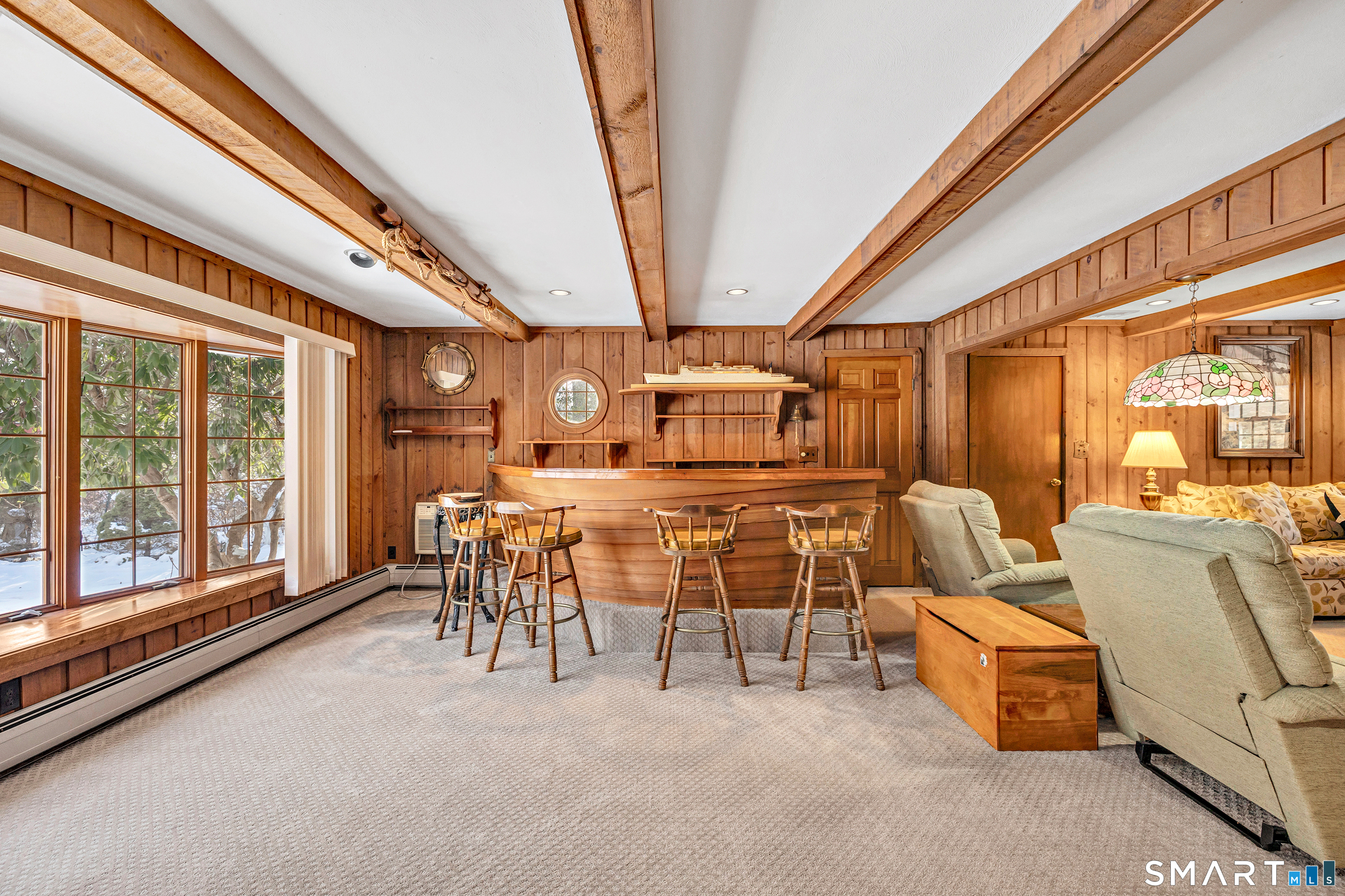 Set on a beautifully level 1.07-acre lot in Trumbull's desirable Tashua neighborhood, this classic colonial offers space, privacy, and timeless quality on a quiet residential street. Lovingly maintained by its original owners, the home reflects solid construction and thoughtful care throughout. Major mechanical updates-including the heating system and central air-provide peace of mind, while the interior offers an excellent opportunity to personalize & add value. Hardwood floors, solid wood doors, original trim, high-end tilt-in windows, & cedar clapboard siding highlight the home's craftsmanship and enduring appeal. Designed for comfortable living & entertaining, the home features a spacious family room addition overlooking the expansive backyard w/a distinctive bar area. A three-season cedar sunroom with cathedral ceilings and a built-in Jenn-Air grill extends the living space & creates an ideal gathering spot.The kitchen includes a unique indoor-grilling fireplace and quality fixtures. The full basement offers high ceilings & a professionally installed Connecticut Basement waterproofing system, providing excellent storage and future potential. Outdoors, the private backyard offers ample room for recreation, entertaining, & gardening, plus a convenient storage. Located minutes from Tashua Knolls Golf Course, town pool, pickleball, tennis, & basketball courts, this home combines location, lot size, & customization long-term value in one exceptional offering.