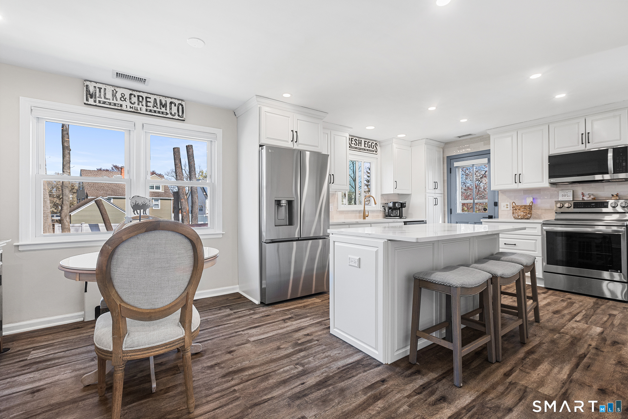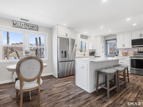 Welcome to 84 Champion Terrace, a charming Cape Cod-style home, nestled at the end of a cul-de-sac in a desirable Stratford neighborhood. This inviting residence features four generously sized bedrooms with hardwood floors. The home boasts two full bathrooms, with one recently remodeled and the secondary updated with new sink, paint, air vent, mirror and light fixture. The brand new large, eat-in kitchen seamlessly connects to the dining room, creating a perfect space for entertaining and sharing meals. The dining room flows into the living room, complete with a fireplace, making it an ideal spot for relaxation. A highlight of this property is the expansive, finished basement, providing ample space for a variety of uses, from a family room to a home office or gym. Outside, the level yard offers plenty of room for outdoor activities and even the potential for a pool. Additionally, the property includes a new roof, new electrical panel, new vinyl flooring on the main level, and a convenient one-car garage. Located close to I95 (4.7 miles), The Merritt (4.0 miles), and shopping this home offers both tranquility and accessibility, making it a perfect choice for those seeking a blend of comfort and convenience. This is a perfect home for commuter traveling to NYC or North on I95. This home has a negotiable chicken coop! This Cape Cod gem is not to be missed!
