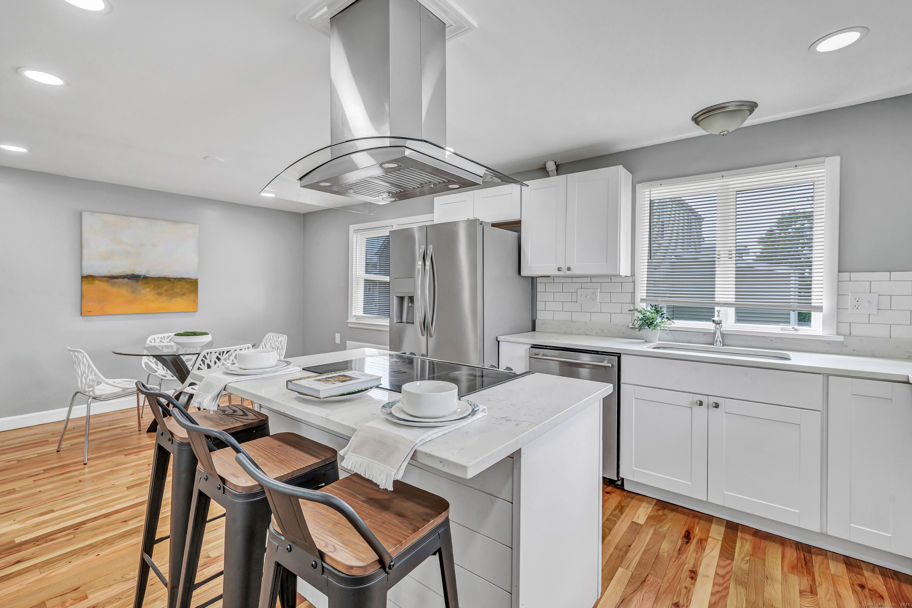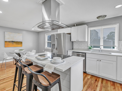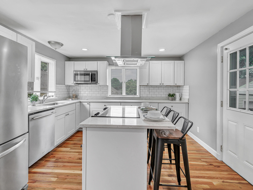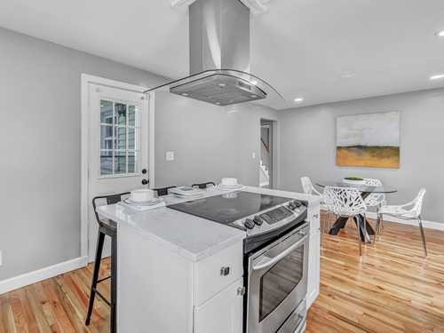 This newly renovated home with two brand new bathrooms features four bedrooms and finished basement affording 3,000 sq ft of living space. The lower level has two oversized rooms that can be used as a home office/guest rooms with a separate entrance. Just off the kitchen is a deck overlooking an open fenced in backyard. While on a quiet street it is a few minutes walk to Stop & Shop, a diner, McD's and countless restaurants and retailers.