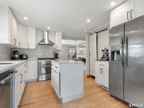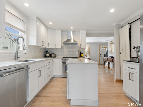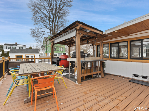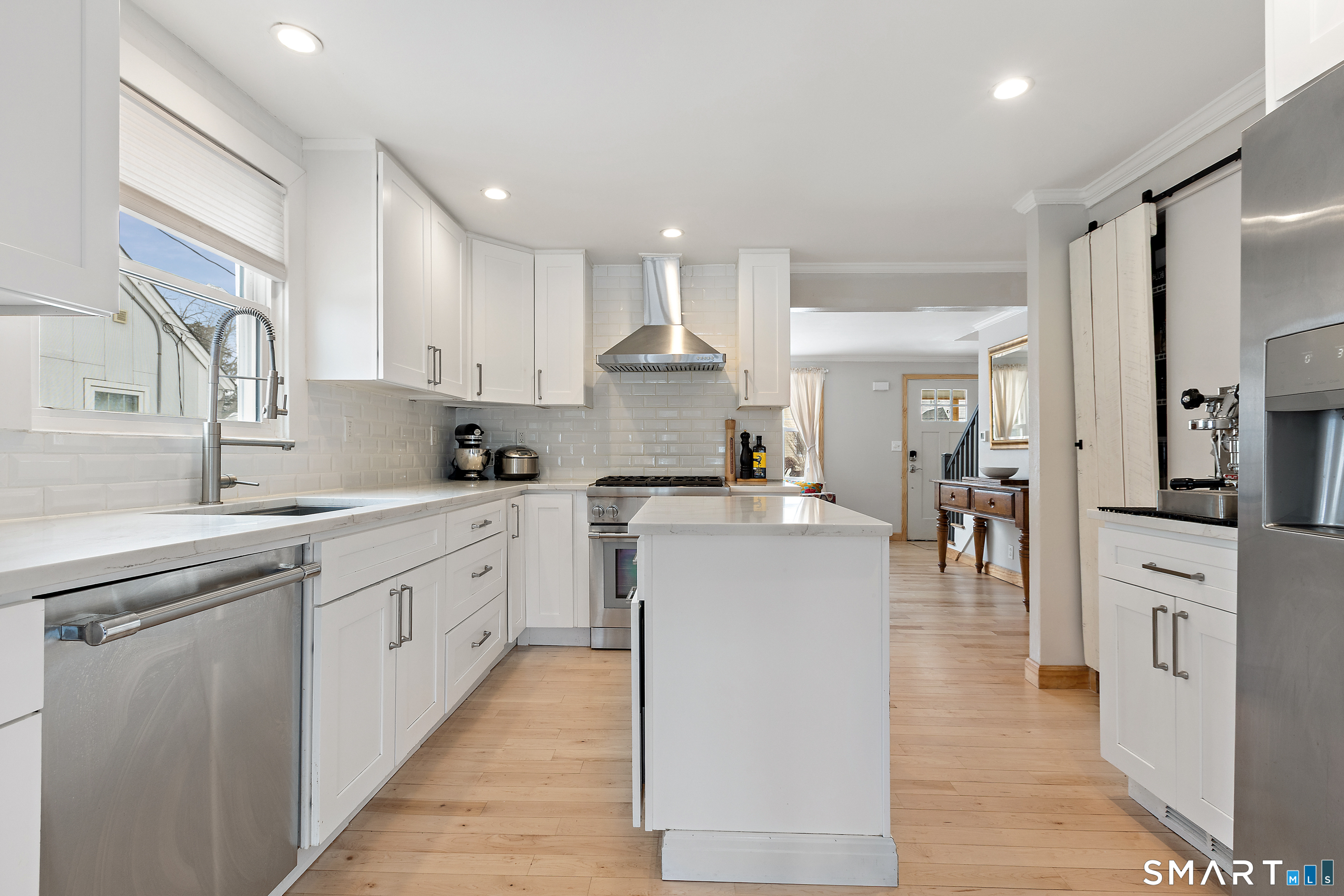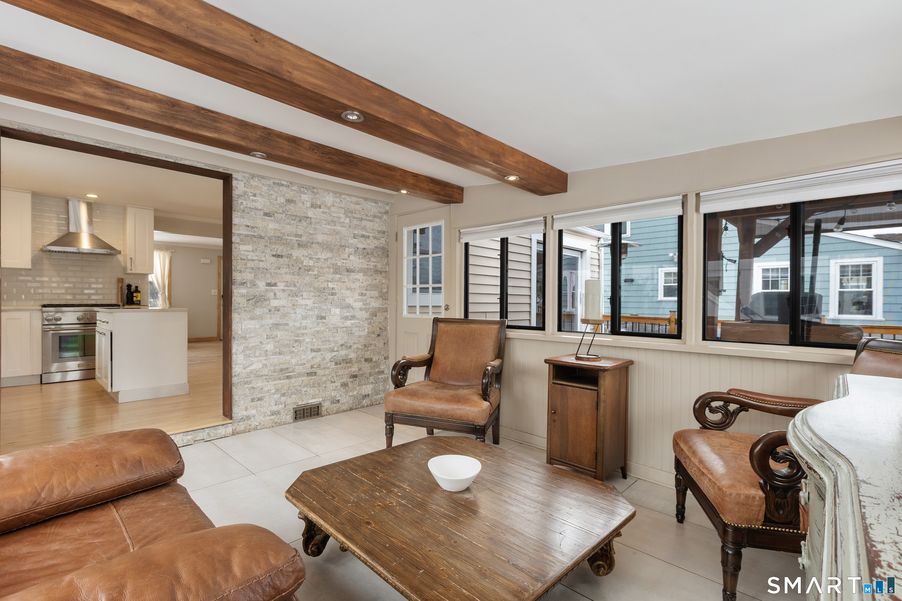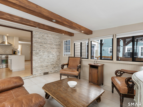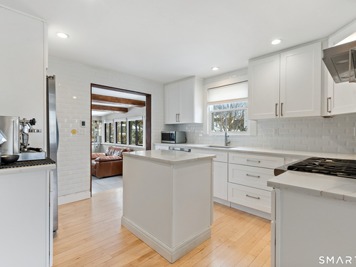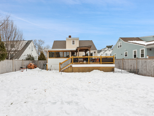 Beautifully renovated coastal home featuring 4 bedrooms and 2 full baths on a .14-acre lot, ideally located just a short stroll to the beach and marina. The home features a beautifully updated kitchen with quartz countertops and premium stainless steel appliances. Beyond the open living and dining areas, a converted year-round sunroom wrapped in windows offers versatile additional space, ideal for an eat-in kitchen, playroom, home office, or studio. Upstairs offers a primary bedroom with built-ins and an additional bedroom or office space with full bath. The newly finished basement adds two additional bedrooms and a playroom for lots a flex space. Outdoor living is effortless with an expansive deck for entertaining and a spacious, flat, fully fenced backyard. Modern comforts include natural gas heat, central air conditioning, public water and sewer, along with new windows, a brand-new electric panel, new gas furnace, and new high efficiency hot water tank. Just a short walk to downtown Fairfield, Metro-North train, and Sherman School, this home delivers the perfect blend of coastal lifestyle and everyday convenience.