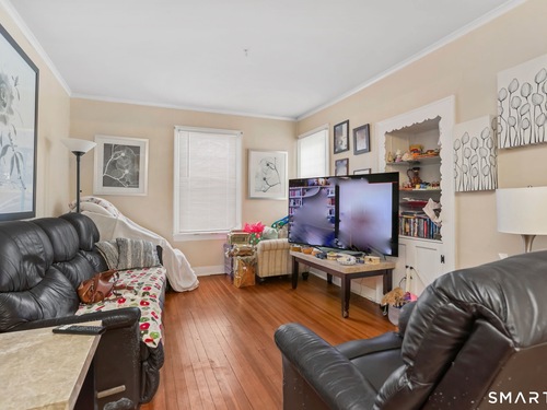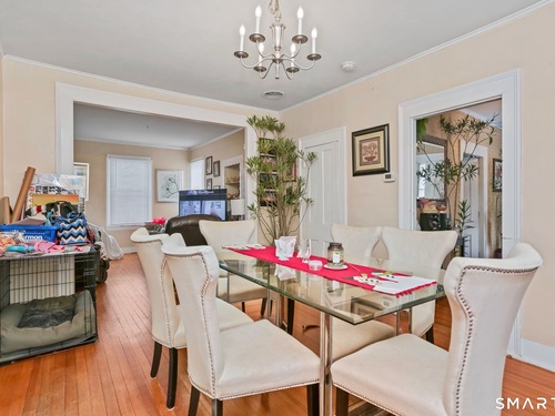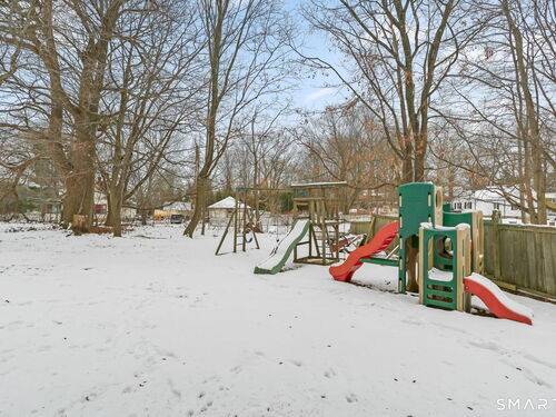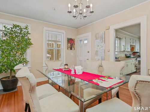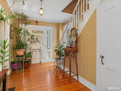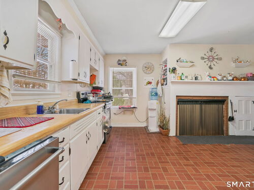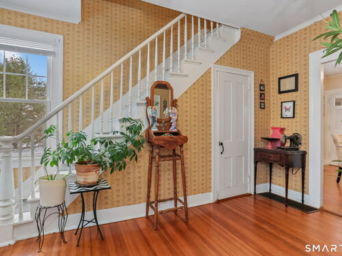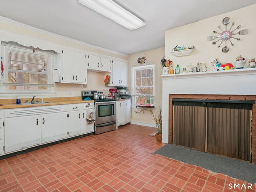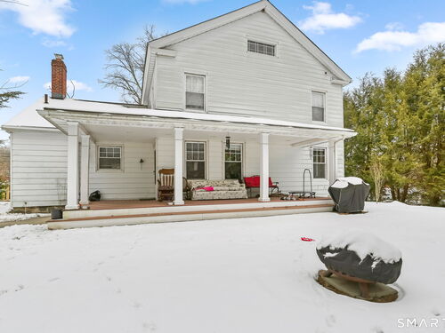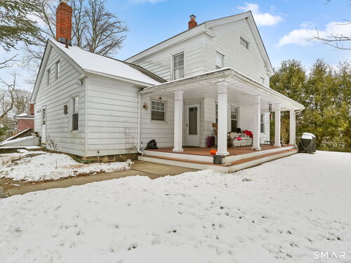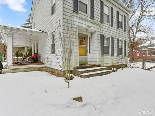 Set in a convenient in-town location, this distinctive colonial offers history, character, and everyday practicality. Wood floors, period trim, built-ins, a large kitchen with a wood-burning fireplace, and a welcoming front porch highlight its traditional charm, while a full bath and laundry area on the main level support modern living. Formal dining, living, and family rooms offer defined yet flexible space for gathering and daily use. Upstairs are three bedrooms and a full bath, including one with a back staircase to the kitchen. A detached two-car garage adds everyday practicality and completes the offering. Listed on the State Register of Historic Places as the Trumbull Congregational Parsonage (c.1850), the property offers a unique connection to the town's early history. Construction elements visible in the basement and attic-stone foundation walls and hand-hewn beams-further speak to its age and craftsmanship. Outdoors, the fenced yard and large evergreen border create a comfortable space for gardening, play, and pets. With its historic character, functional footprint, and central location, the property presents an appealing opportunity to restore and personalize a one-of-a-kind home in a highly desirable town with extremely limited inventory. Proximity to schools, shopping, parks, and major commuter routes further enhances everyday convenience. An inviting offering with exceptional potential in one of Fairfield County's most sought-after communities.