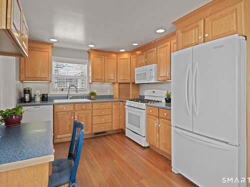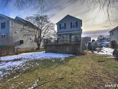 Coastal charm meets modern living in this exceptional beach-area home, perfectly positioned in a coveted walk-to-everything neighborhood. Cherished by the same family for generations, the residence was taken down to the studs and thoughtfully rebuilt in 1994, creating a home that blends classic character with today's standards of comfort and finishes. The location is truly unbeatable - just steps to the beach and water, and an easy stroll to town, shops, restaurants, the train station, farmers market, and local parks. Enjoy peaceful mornings on the sunny front porch, casual days working from the eat-in kitchen study nook, and unforgettable gatherings on the expansive rear deck, designed to accommodate large-scale entertaining. The private backyard offers space for play, relaxation, and outdoor living. The second level features a stunning primary suite with vaulted ceilings, abundant natural light, hardwood floors, and a walk-in closet. A hallway leads to two additional bedrooms, a full bath, and a convenient laundry room. The lower level provides a dedicated workspace and exceptional storage. Live a quiet, convenient, and connected lifestyle in highly desirable Fairfield, CT - surrounded by million-dollar-plus homes and timeless coastal appeal.
