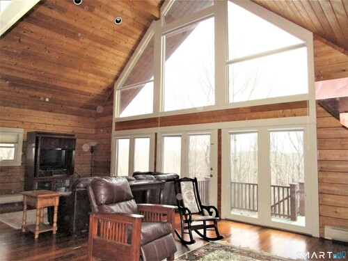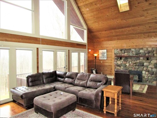 Owner must sadly sell this much loved,beautiful,custom log home loc in the desirable,sought after Long Meadow Hill area-close to everything.Log homes,known for long lasting,high efficiency&ability to withstand Mother Natures wrath beyond that of a brick or stick built home,also offers rustic,cozy ambiance,environment friendly"green"construction w/all the modern features&conveniences.This stunning home sits on a 1.5 ac nature packed private lot w/beautiful native gardens,stone walls,gorgeous combo of yard&woods&backs to a wooded valley w/babbling brook&Kahlo Preserve.This warm,inviting home features an open interior design,exposed beams,cathedral ceilings,floor to ceiling windows overlooking pure nature,Walnut&Birch wood flrs,wood ceilings&walls where connect to the ext,EIK w/,SS appl,subzero ref,stove w/dble oven,opens to a spacious dining/sitting combo w/an inviting,warm dble sided fireplace with floor to ceiling river rock facing&hardwood mantel.Mulitple doors out to a huge,newer wrap around composite deck-perfect for peace&tranquility or gatherings w/friends&family.Spacious FR w/fireplace,flr to ceiling windows&fabulous,private views.More features incl walnut & birch wood flrs,2 BR's w/a full,tastefully updated bath on ML,up to 2nd lvl w/ primary suite,walk thru clst,strge area,balcony overlooking the FR w/its full wall of windows & views of nature,30 year roof installed in 2013,Lennox Wood fireplace insert provides great heat,min cost,setup for generator w/generator incl.