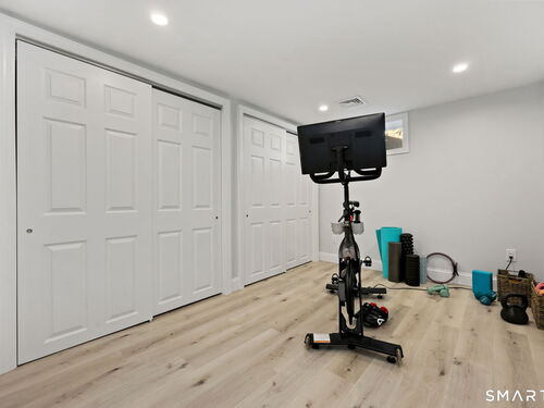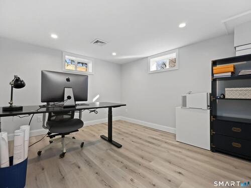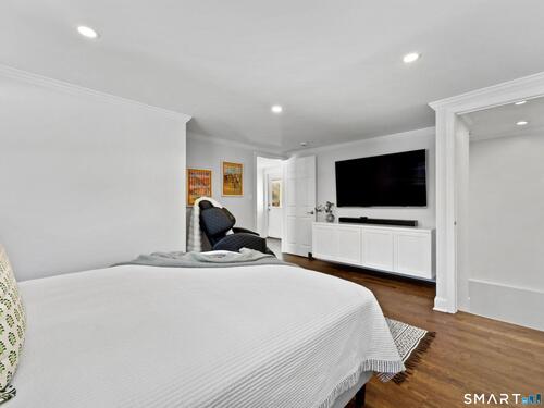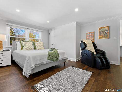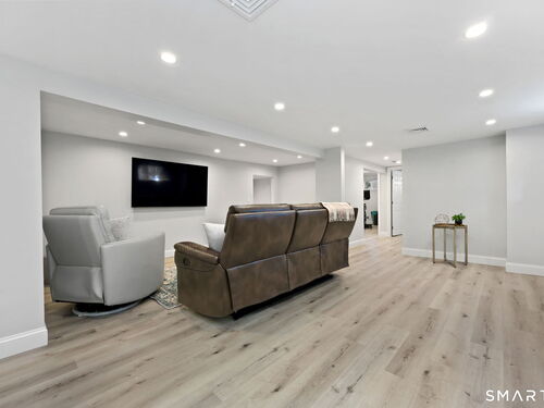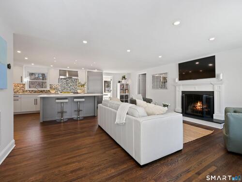 Nestled at the end of a cul-de-sac in Rowayton, Norwalk's beloved coastal village, this beautifully renovated ranch offers easy, turnkey living with room to spread out. Set on 0.46 ac and upgraded top-to-bottom (interior to exterior) through 12/25, the home delivers 2,264 sq ft of updated style, comfort, and modern convenience. Designed for seamless single-level living, the main floor features a refined open layout with hardwood floors, a sunlit living dining area anchored by a cozy fireplace, an upgraded kitchen, three serene bedrooms, two full baths with heated tile floors, and laundry room. The fully finished LL expands the way you live, with a family/playroom, office, gym/bedroom, full bath, storage, and second laundry room, ideal for guests, hobbies, work-from-home, or multi-generational needs. Enjoy the indoor-outdoor flow to a professionally landscaped yard with views of a neighboring pond, perfect for morning coffee and entertaining. Completing the lifestyle, an updated garage with great storage, a he/she shed, and access to all Rowayton's signature amenities, community events, summer concerts, paddle, tennis, pickleball, beach days and boating, winter polar plunges, saunas, arts, dining, and easy Metro-North/I-95 commuting. A rare opportunity for effortless one-floor living with flexible space below, polished, turnkey, and inviting is ready to welcome you to Rowayton's lifestyle.