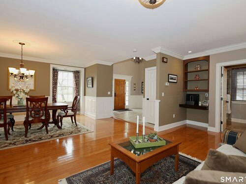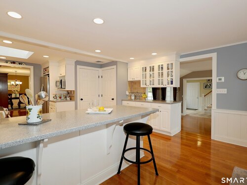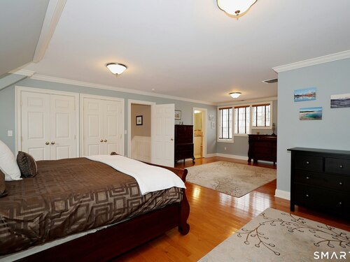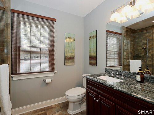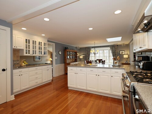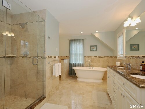 Exceptional, fully remodeled custom home, set back on 3.38 level acres in one of Ridgefield's most sought after neighborhoods, just 1 mile north of historic Main St. for shopping, restaurants, park, library, theaters & just 60 miles to Midtown. Well over $1M invested by current owners to completely transform the original 1958 ranch into this like new, 4,782 sf custom craftsman featuring standing seam copper porticoed entrance into new 2 story foyer; new 2nd informal front entry into spacious mudroom w/2 car garage & vaulted bonus room above w/gas fplc - perfect for game room; new expansive 2nd floor primary suite w/marble bath offering soaking tub & frameless shower; new bsmt w/exterior entrance; heat converted to propane; 20kw automatic generator; extensive landscaping incl. Belgian block lined circular drive; remodeled kitchen, baths, & so much more. Light, bright & open floor plan w/formal DR featuring wainscot paneling, crown molding, hardwood, & brick fireplace w/custom wood surround; wide open to the gracious LR w/custom built-in display shelves. The inviting kitchen is a dream w/crisp white cabinets, S/S appliances, wet bar w/glass display cabinets, & sunny breakfast rm w/skylight & bay window, open to both the large vltd. FR, as well as the stylish library/den w/floor to ceiling built-ins, furniture style built-in dry bar, & adj. stone patio for outdoor enjoyment. Total 4 BR, 3/1 baths including 3 generous BRs & 2 full bths plus powder room on the main level. Special!