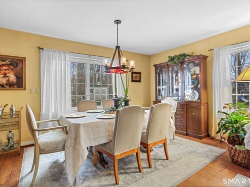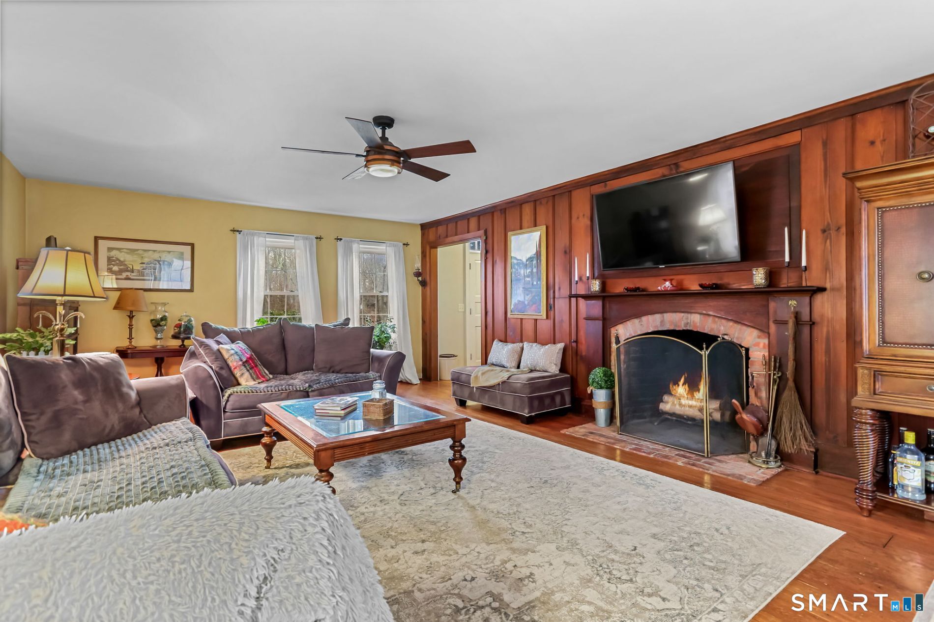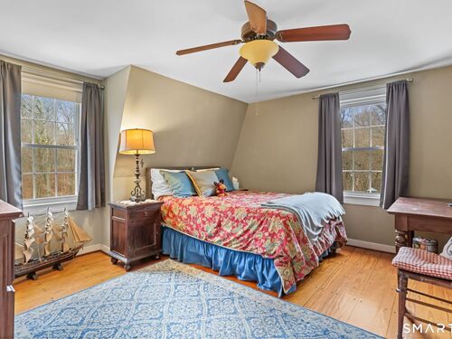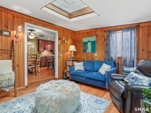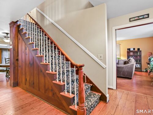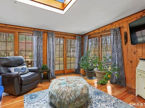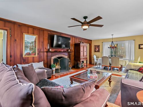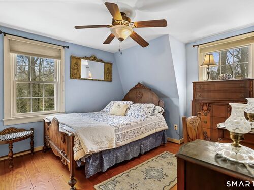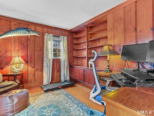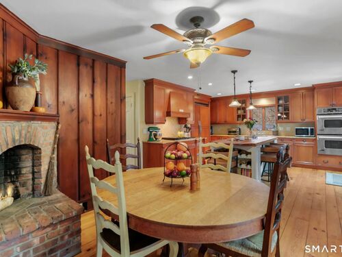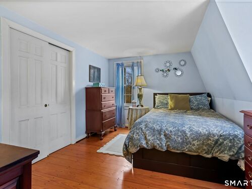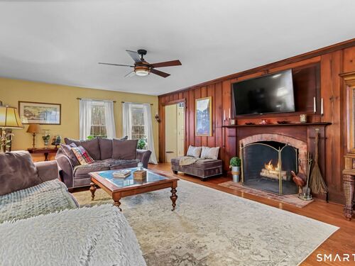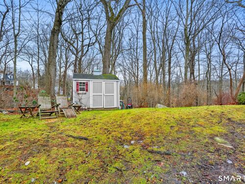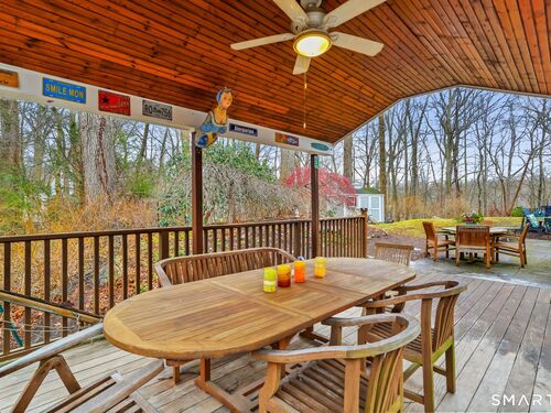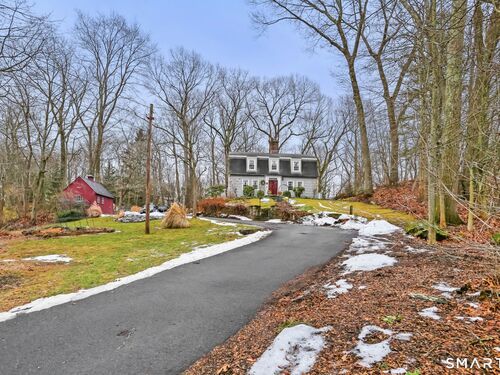 Charming Dutch colonial 4-5 bedroom 3.5 bath set on a private cul-de-sac, featuring wide plank pine floors throughout. The spacious farmstyle custom kitchen includes a center island with seating, two sinks, a pantry, fireplace, Miele dishwasher, Viking refrigerator and a double oven. A private main level office accessible from the front door can also serve as guest room. The large living/dining great room offers another fireplace and pine paneling for warmth and character. Many outstanding features exist such as antique bullseye glass over the front double doors. Not included in the square footage are several valuable spaces: a newly carpeted in-law apartment on the ground level (5th with a full bath, cedar closet and private driveway entrance, as well as a finished, newly carpeted game/family room. A four season sunporch off the kitchen and an adjoining covered deck adds to living space. This hidden gem on a 1.6 acre wooded lot showcases professional landscaping and offers privacy, yet easy access to beaches, I-95, Rowayton train station, nearby shopping and walk to schools. Outdoor features include a large covered deck, outdoor shower, a stone patio and a fire pit for great outdoor entertaining. A large barn and shed provide ample storage. There is also parking for multiple vehicles and a garage.