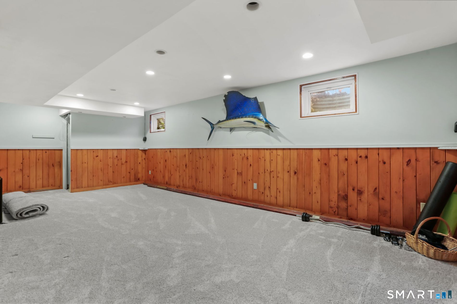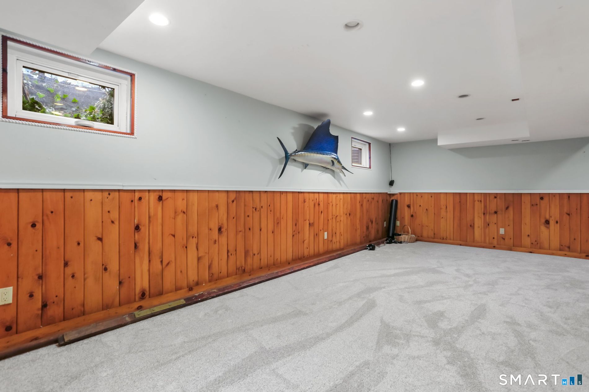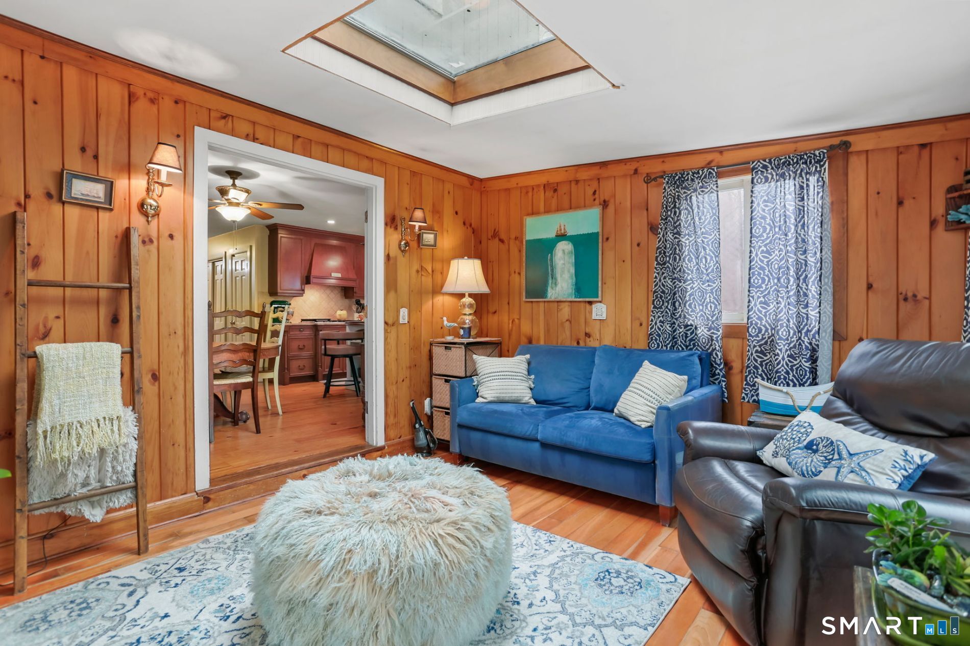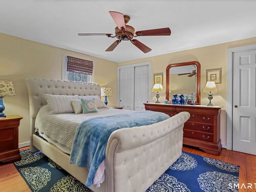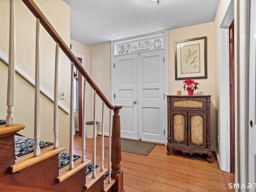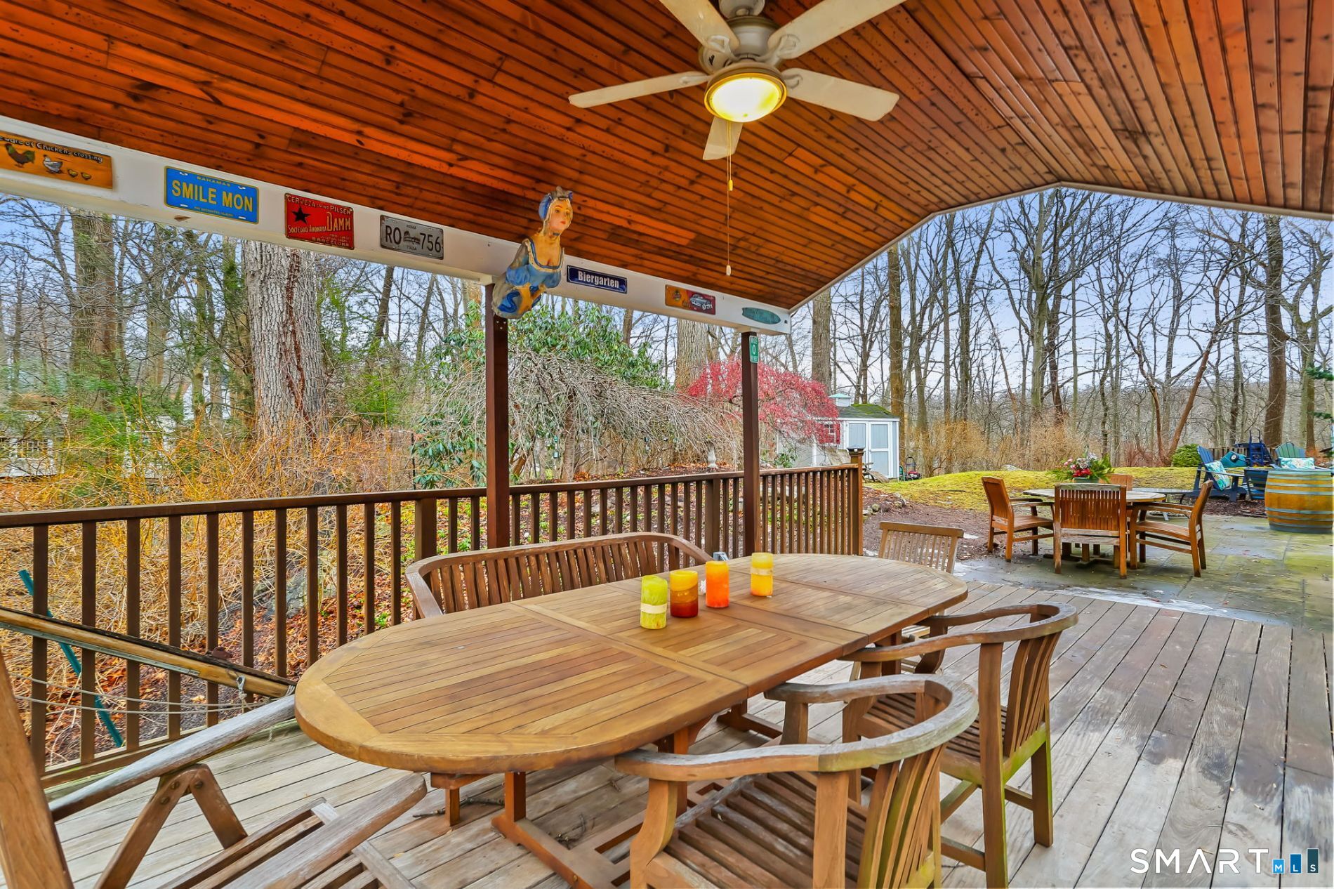 Charming Dutch colonial 4-5 bedroom 3.5 bath set on a private cul-de-sac, featuring wide plank pine floors throughout. The spacious farmstyle custom kitchen includes a center island with seating, two sinks, a pantry, fireplace, Miele dishwasher, Viking refrigerator and a double oven. A private main level office accessible from the front door can also serve as guest room. The large living/dining great room offers another fireplace and pine paneling for warmth and character. Many outstanding features exist such as antique bullseye glass over the front double doors. Not included in the square footage are several valuable spaces: a newly carpeted in-law apartment on the ground level (5th with a full bath, cedar closet and private driveway entrance, as well as a finished, newly carpeted game/family room. A four season sunporch off the kitchen and an adjoining covered deck adds to living space. This hidden gem on a 1.6 acre wooded lot showcases professional landscaping and offers privacy, yet easy access to beaches, I-95, Rowayton train station, nearby shopping and walk to schools. Outdoor features include a large covered deck, outdoor shower, a stone patio and a fire pit for great outdoor entertaining. A large barn and shed provide ample storage. There is also parking for multiple vehicles and a garage.