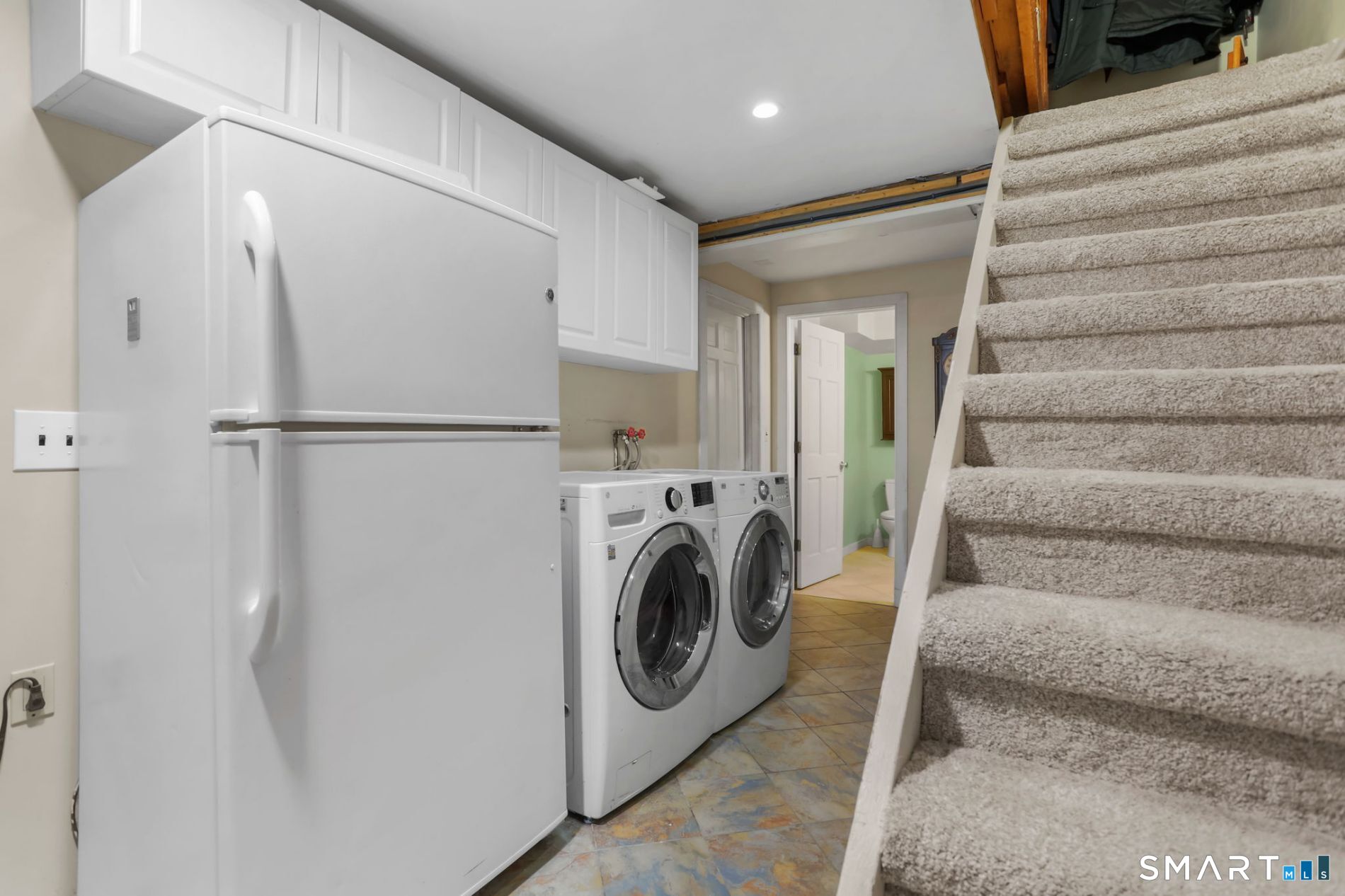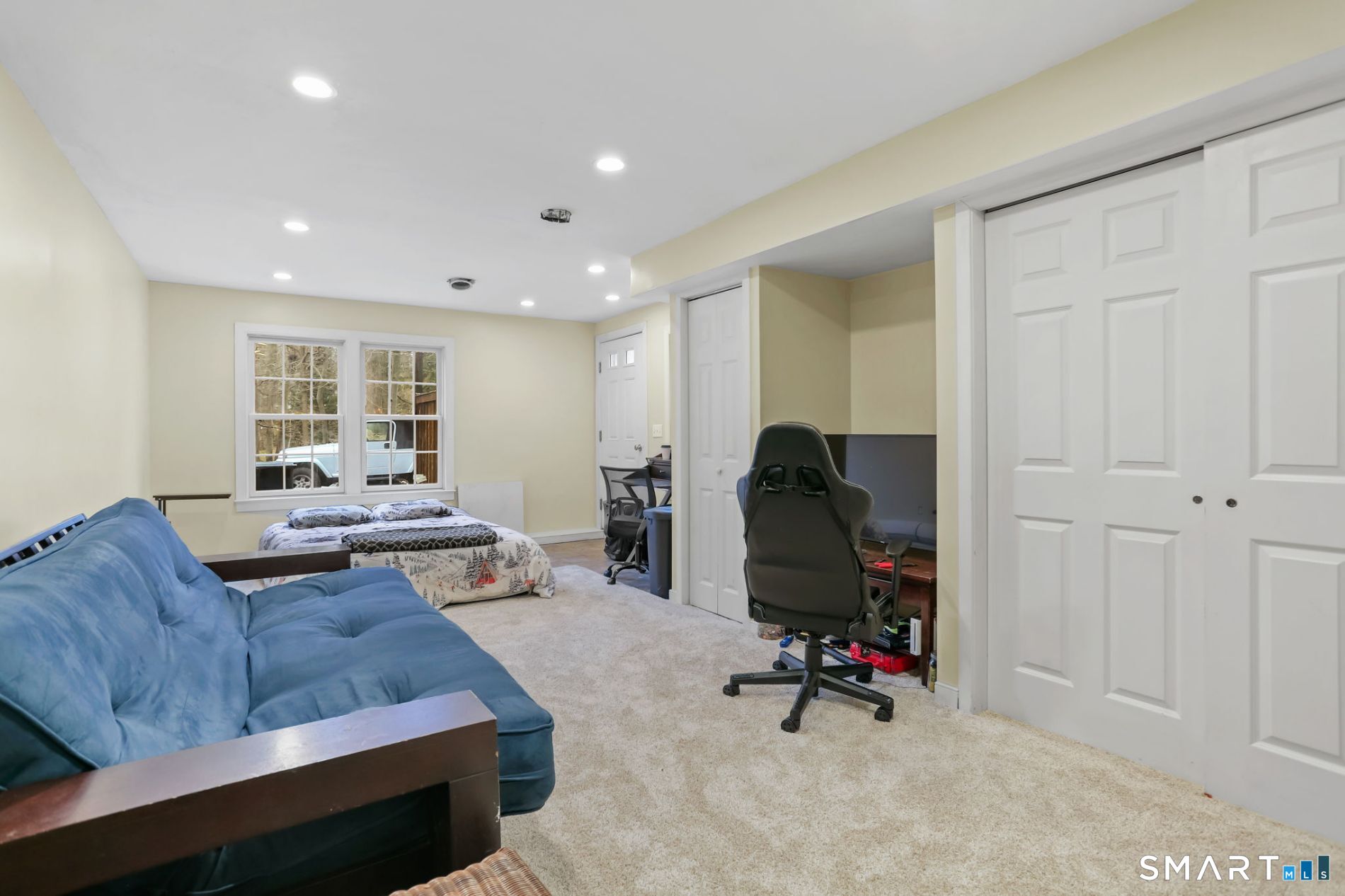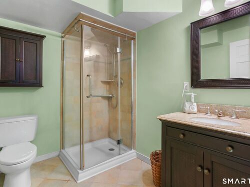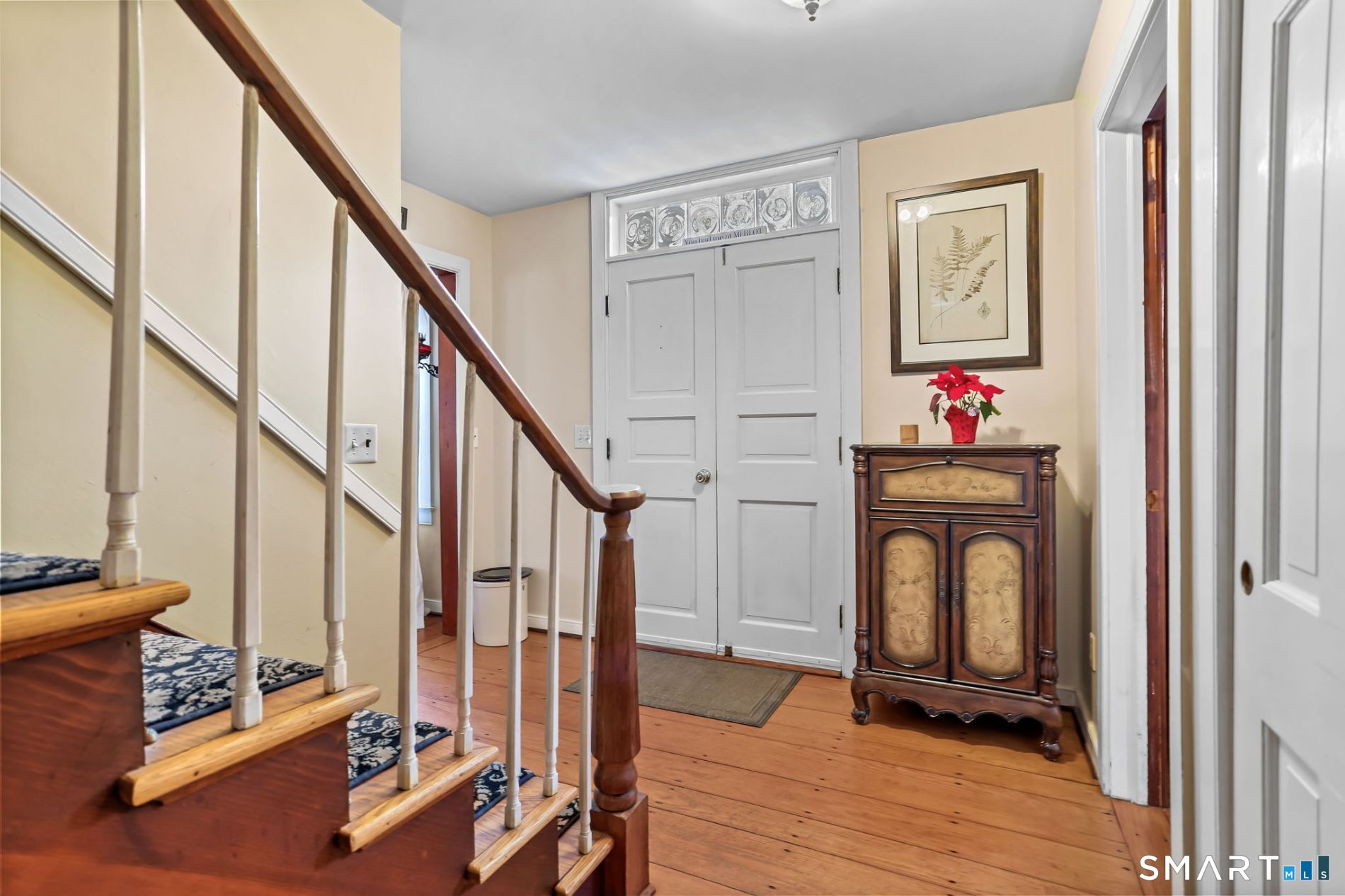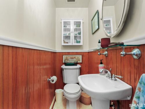Charming Dutch colonial 4-5 bedroom 3.5 bath set on a private cul-de-sac, featuring wide plank pine floors throughout. The spacious farmstyle custom kitchen includes a center island with seating, two sinks, a pantry, fireplace, Miele dishwasher, Viking refrigerator and a double oven. A private main level office accessible from the front door can also serve as guest room. The large living/dining great room offers another fireplace and pine paneling for warmth and character. Many outstanding features exist such as antique bullseye glass over the front double doors. Not included in the square footage are several valuable spaces: a newly carpeted in-law apartment on the ground level (5th with a full bath, cedar closet and private driveway entrance, as well as a finished, newly carpeted game/family room. A four season sunporch off the kitchen and an adjoining covered deck adds to living space. This hidden gem on a 1.6 acre wooded lot showcases professional landscaping and offers privacy, yet easy access to beaches, I-95, Rowayton train station, nearby shopping and walk to schools. Outdoor features include a large covered deck, outdoor shower, a stone patio and a fire pit for great outdoor entertaining. A large barn and shed provide ample storage. There is also parking for multiple vehicles and a garage.