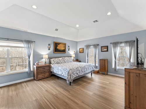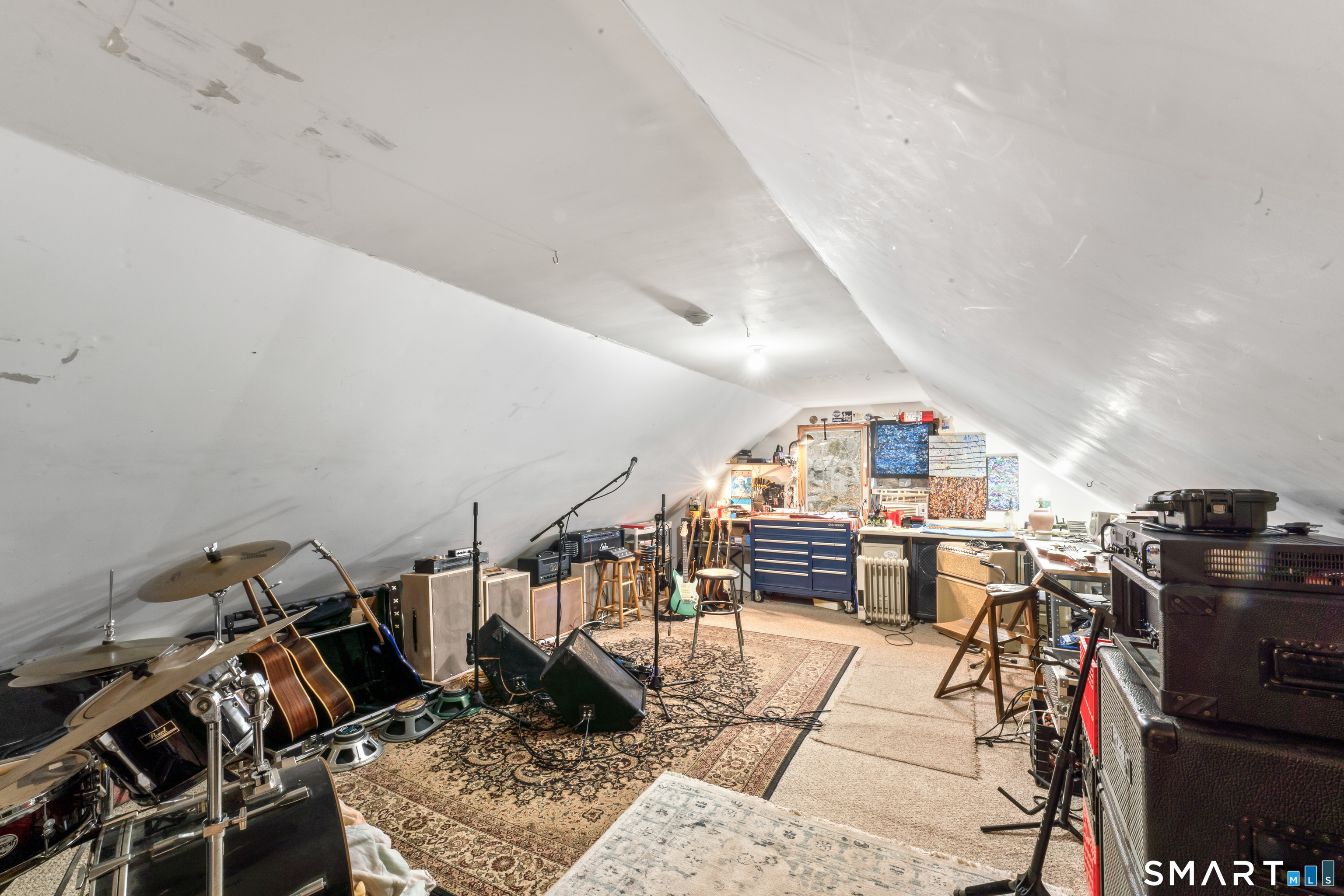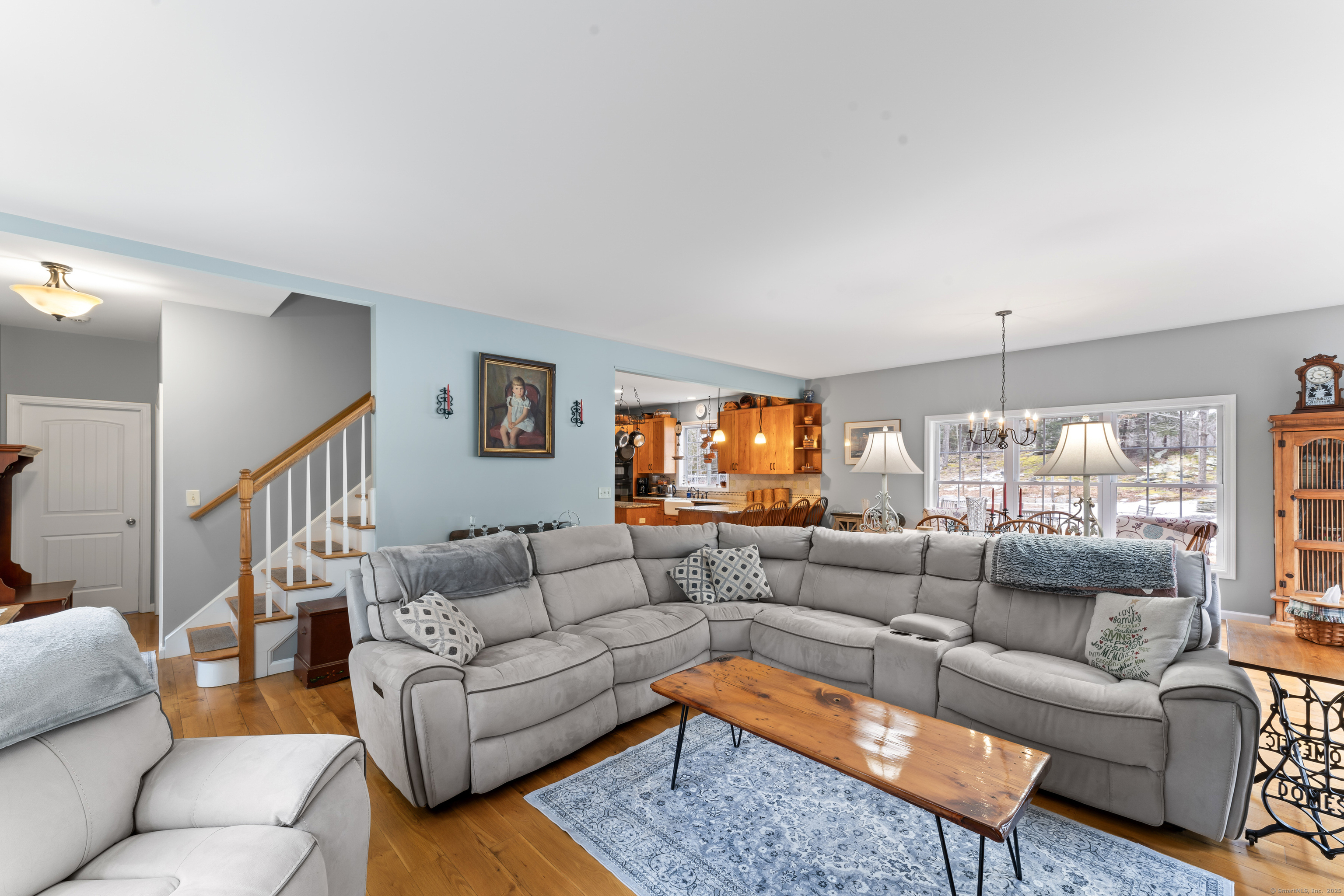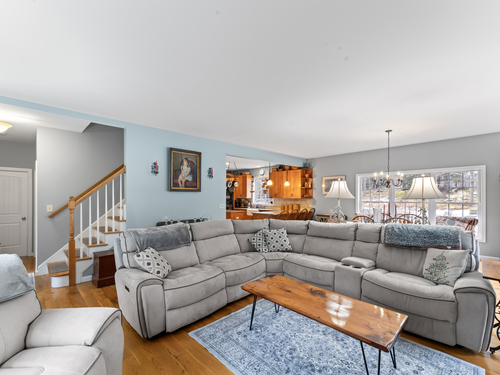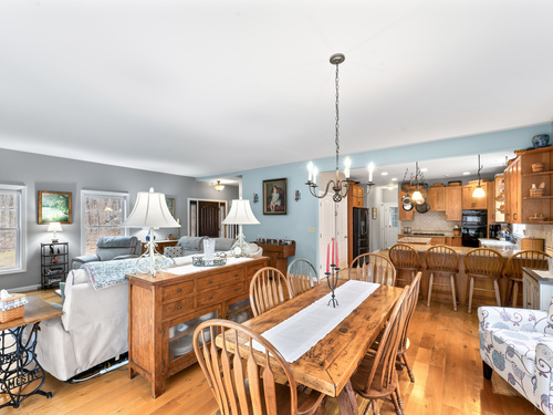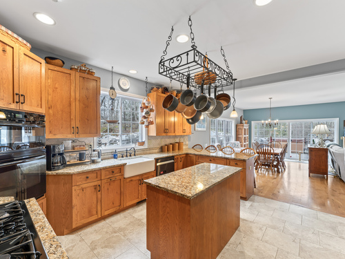 Set well back from the road at the end of a long driveway, this 6-acre property offers exceptional privacy and peaceful surroundings just minutes from town. Welcome to 9 Jordan Hill Rd in Newtown, a custom-built Colonial nestled among nature and designed with flexible living space and future potential in mind. The open-concept layout creates a welcoming flow throughout the main level, ideal for both everyday living and entertaining. The custom kitchen features granite countertops, a breakfast bar, and tailored cabinetry offering generous storage and functionality. Hardwood floors throughout the main level add warmth and timeless appeal. This home offers 4 generously sized bedrooms and 3 full bathrooms, including a convenient main-level bedroom located next to a full bath-perfect for guests, extended family, or a home office. The unfinished basement with 9+ ft ceilings provides outstanding potential for additional living space, whether you envision a playroom, home gym, game room, or theater. The finished third-floor bonus room with brand-new carpet offers even more flexible space for a playroom, media room, or creative studio. Above the garage, you'll find an additional unfinished 26 x 20 space (not included in the current square footage) that's currently used as a music studio and can be transformed into a home office, art studio, or additional living area.