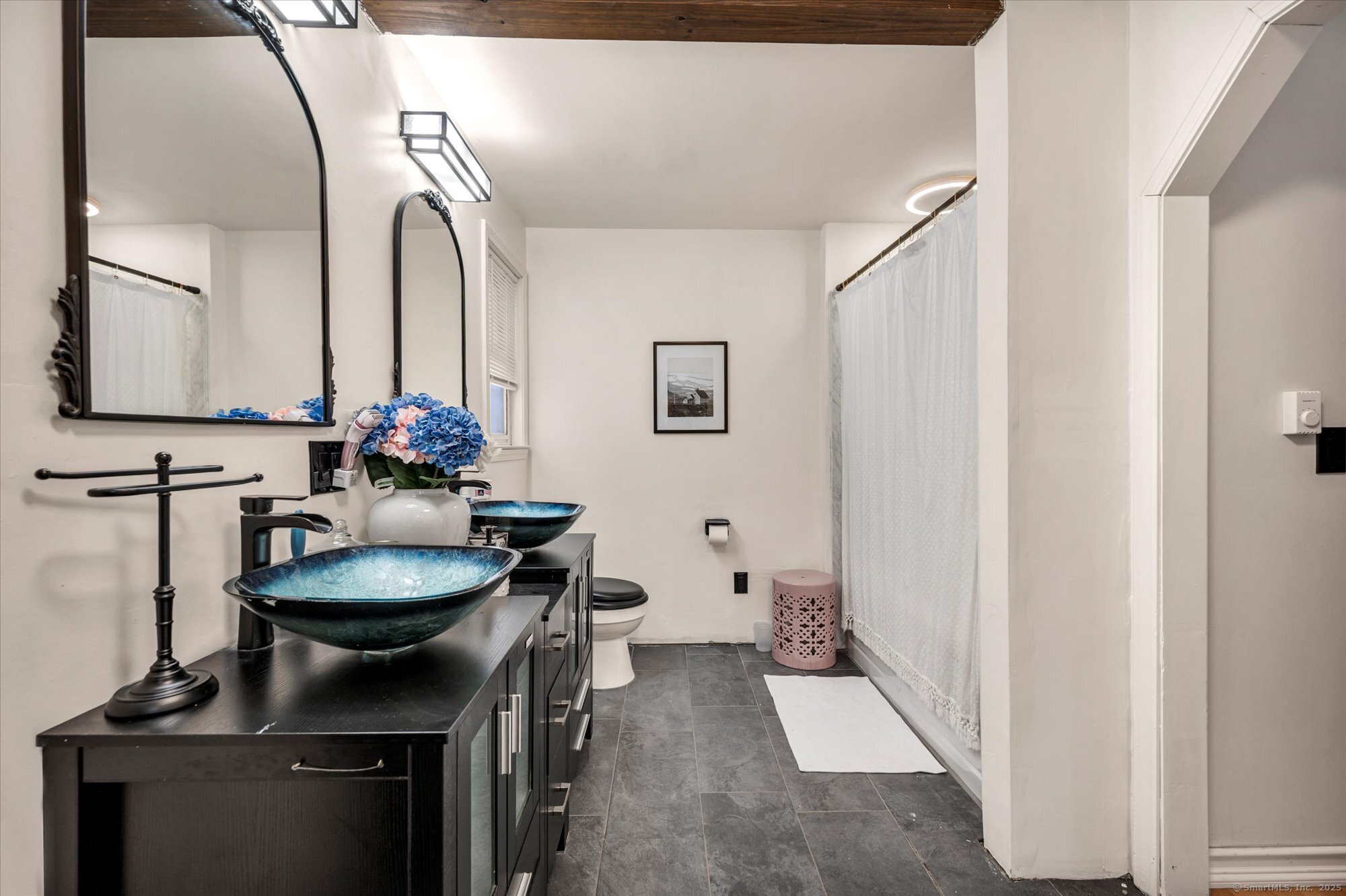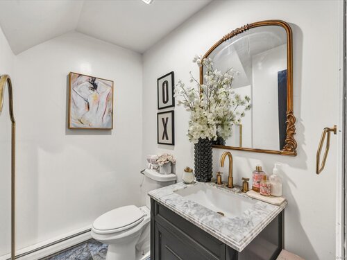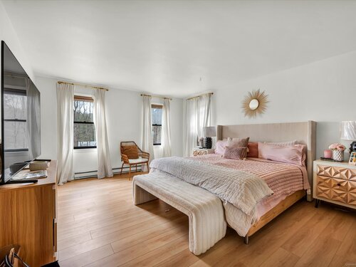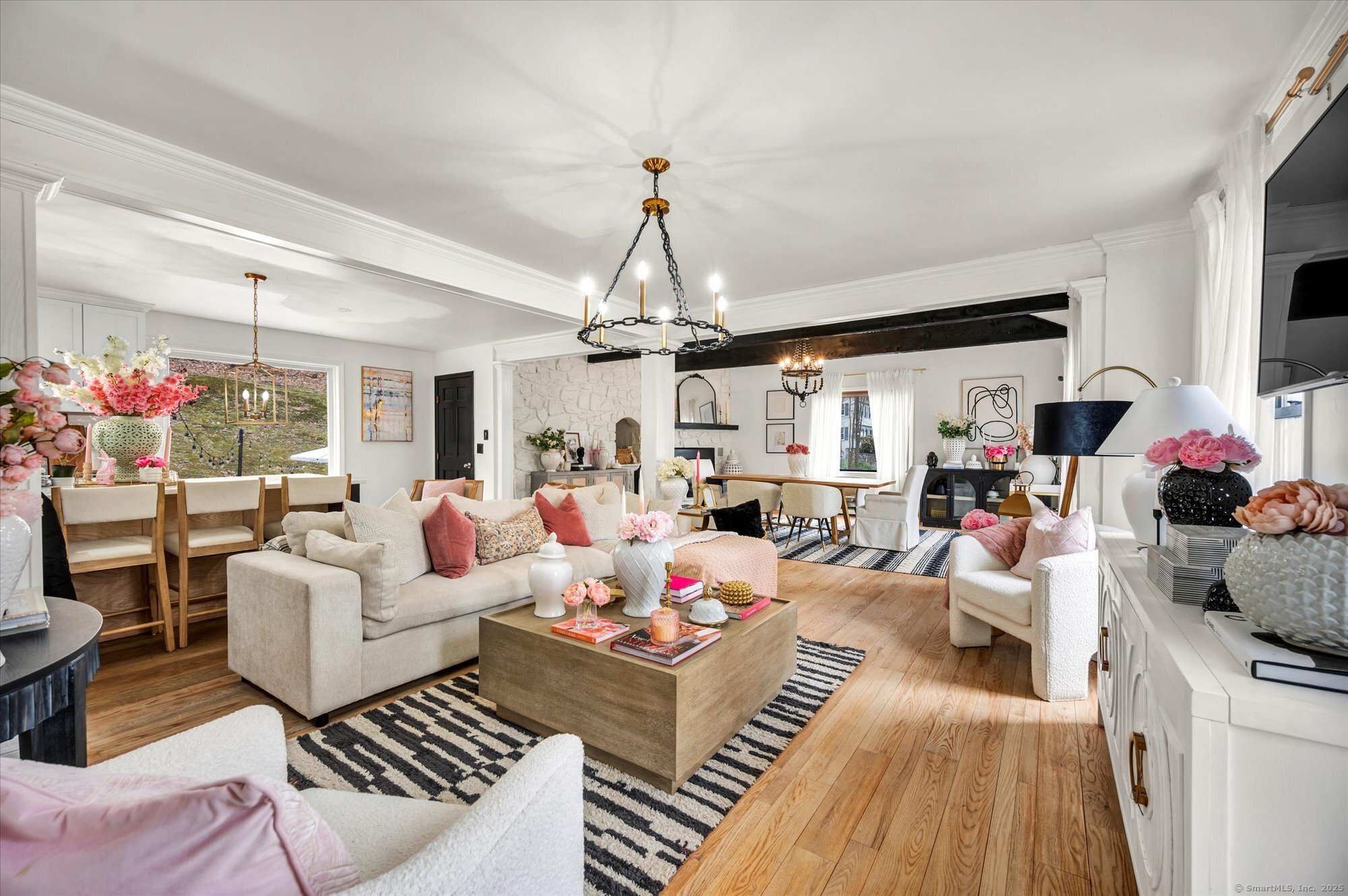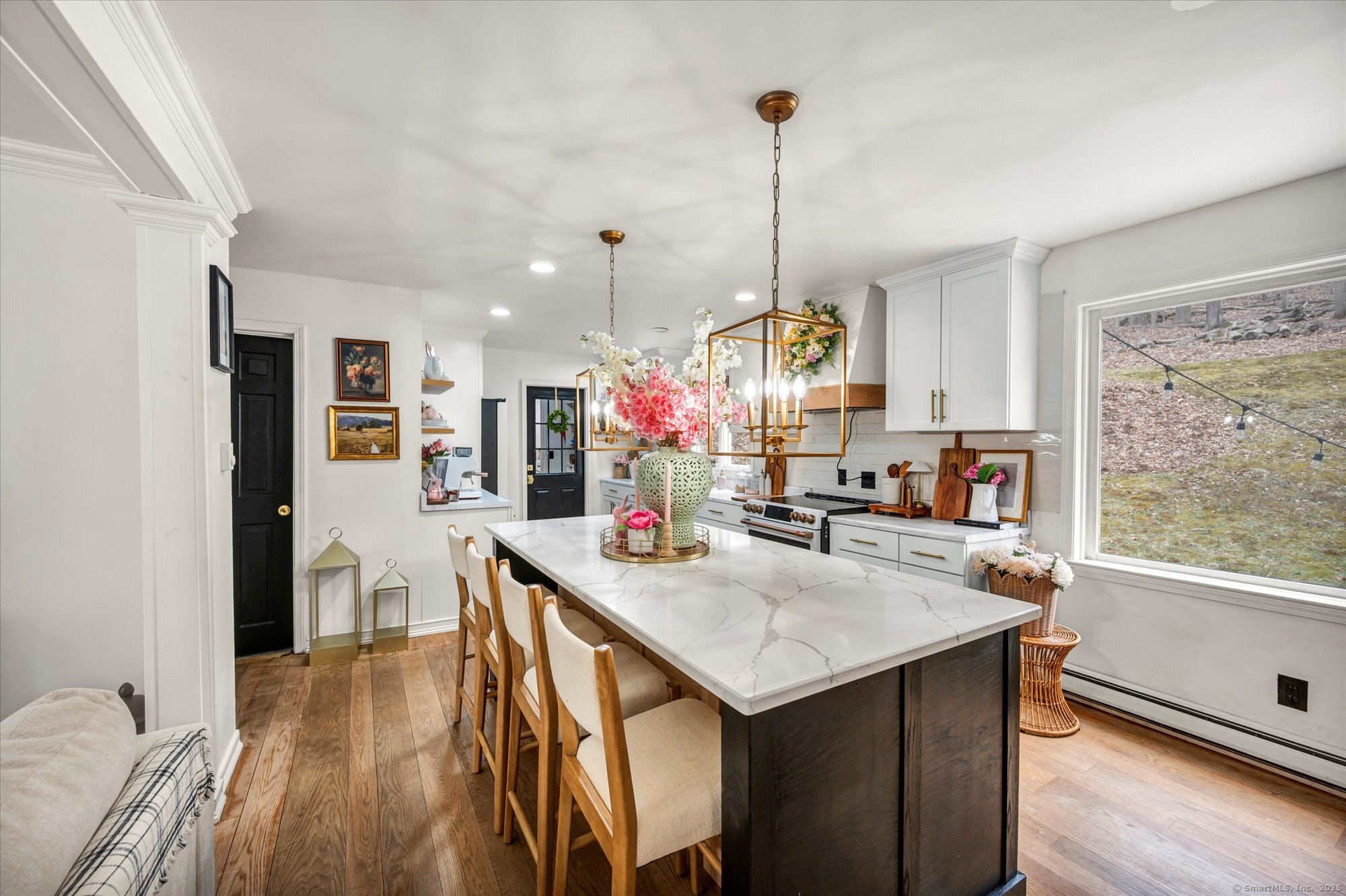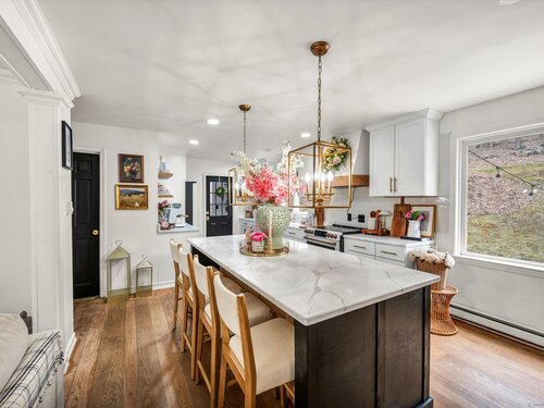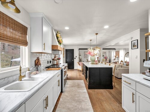 This luxuriously updated Colonial is nestled in the heart of the sprawling, picturesque Sleepy Hollow Estates. Thoughtfully enhanced inside and out, this elegant residence blends timeless charm with high-end modern finishes. From the moment you arrive, the home makes a statement with a brand-new bluestone front walkway and custom stone walls, creating a welcoming entry. The stunning main level has been completely renovated for open-concept living. At the heart of the home is the all-new chef's kitchen, featuring quartz countertops, premium modern appliances, and an intuitive layout. Just off the kitchen is a custom laundry room, offering exceptional convenience. Adjacent to the kitchen, the vaulted-ceiling family room invites you to unwind by the cozy fireplace with wood stove insert. A spacious living room with hardwood floors and an additional fireplace provides flexible use as a formal gathering space or an ideal home office. Upstairs, generously sized bedrooms offer comfortable retreats, and the expansive primary suite is a true sanctuary, complete with a large closet and a spectacular, renovated en-suite bath that feels like a private escape. The finished, heated lower level adds exceptional versatility, ideal for a home gym, guest bedrooms, or home theater. Outside you'll find a professionally designed backyard patio featuring high-end built-in elements that create an inviting outdoor living space. Don't miss this truly special Bethel gem!