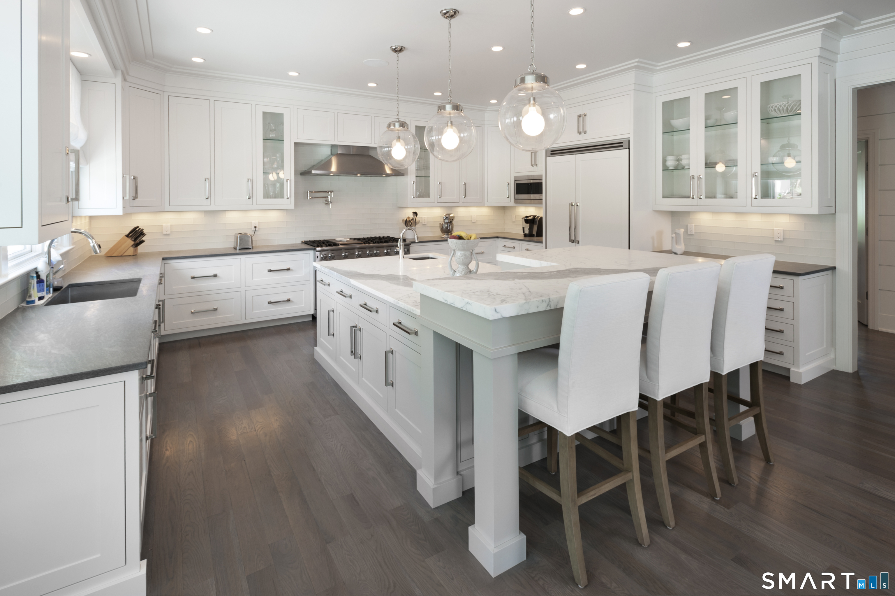 Life at Compo Beach doesn't get better! Set just steps to the sand, 9 Pond Edge Road delivers the rare mix of true beach proximity and elevated, flood-safe peace of mind. With approx. 6,100 SF across four beautifully finished levels, this 6-bedroom, 7-bath home feels both expansive and easy; designed for how you live, gather, and unwind. The great room/dining space is bright, open, and welcoming, with French doors that lead to a backyard built for summer. A stone patio, heated gunite pool, built-in BBQ and lush landscaping create a setting that's equally suited to relaxed mornings, spontaneous pool days, or evenings spent outside with friends. The eat-in kitchen is a standout; well-appointed with luxury appliances, generous storage, and an oversized island that naturally becomes the center of everything. A formal living room and a private office/main-level bed with full bath add flexibility. Upstairs, four en-suite bedrooms include a spacious primary suite with gas fireplace, two walk-in closets, and a calming, spa-like bath. The third floor offers a private guest suite with balcony and skylit bath; perfect for visitors or a quiet escape. The lower level adds another layer of lifestyle with a theater room, rec space, gym, full pool bath, mudroom, and attached 2-car garage. Defined by laid-back luxury, this residence is more than a coveted coastal escape. It is a true home that offers an idyllic backdrop to live, laugh, love and grow in every magnificent season!