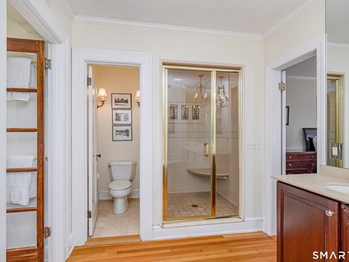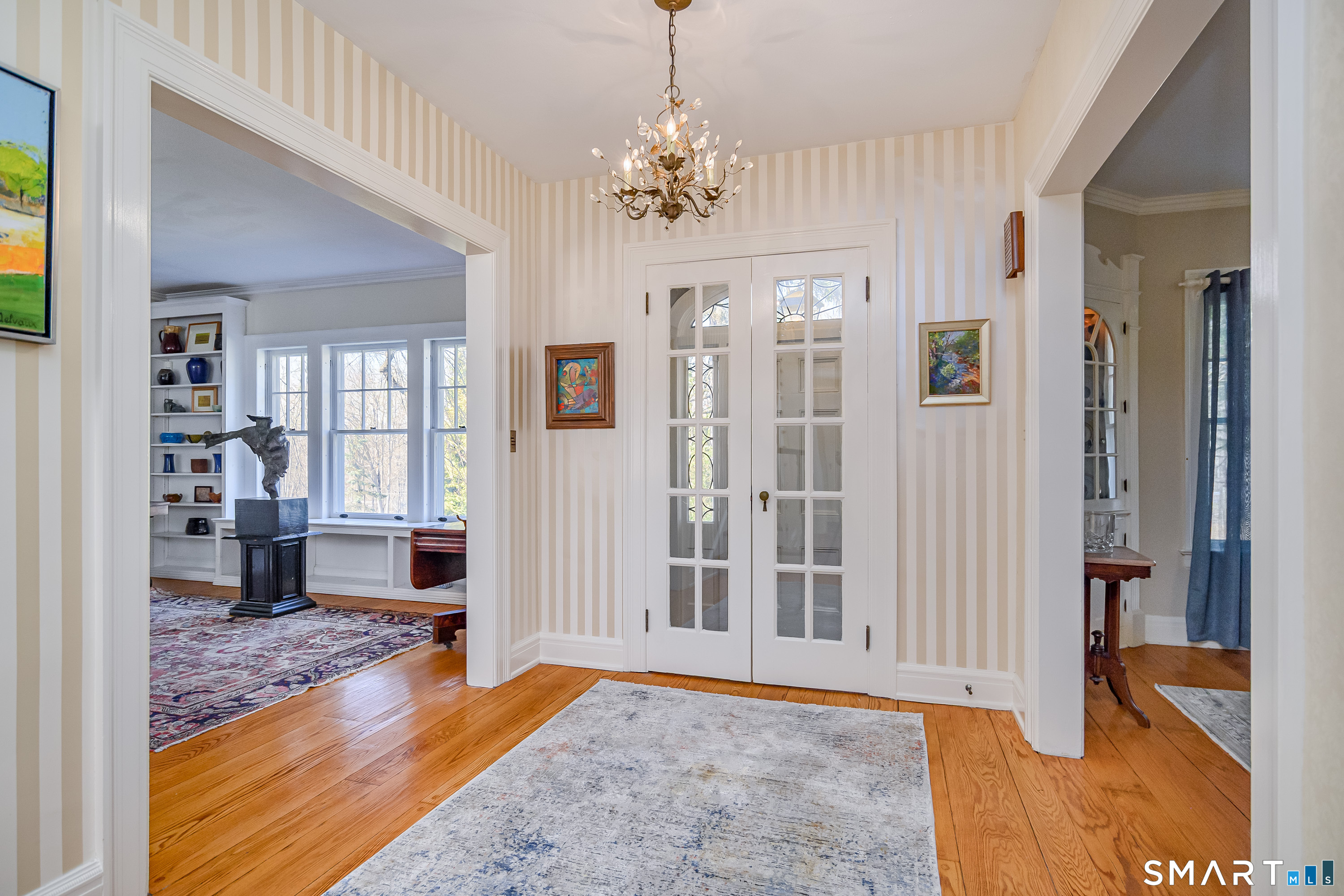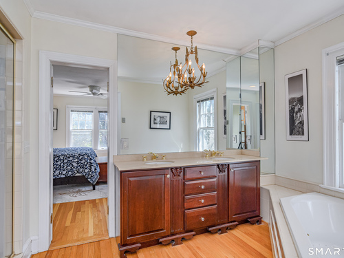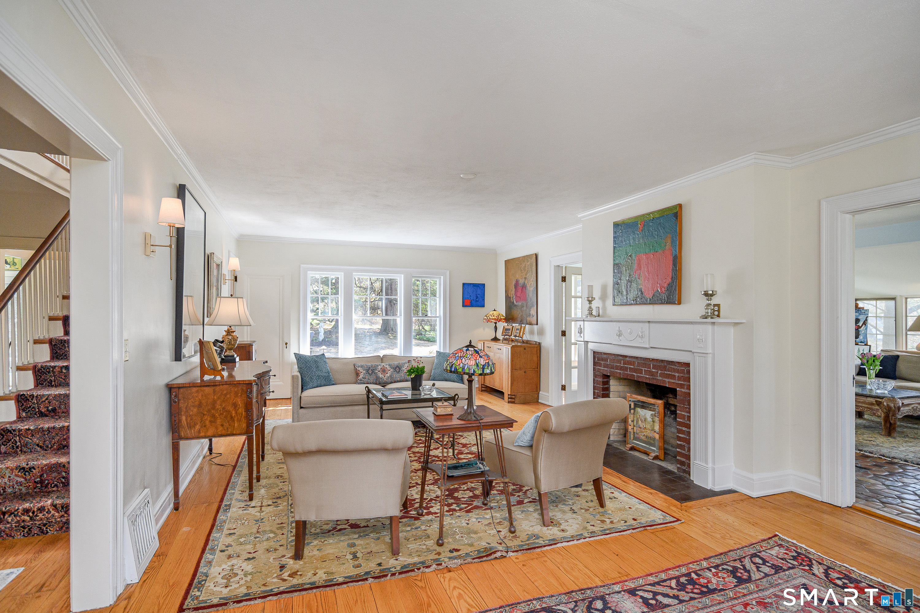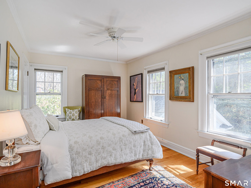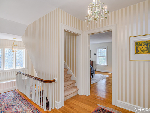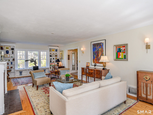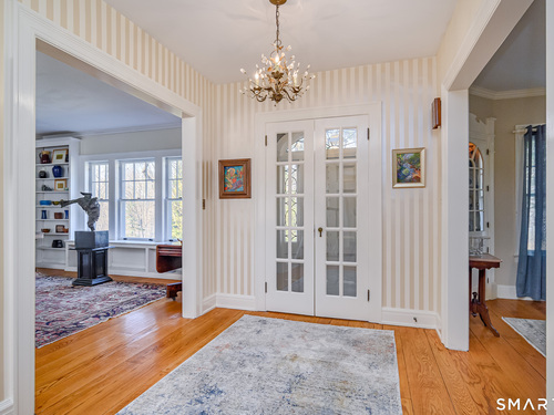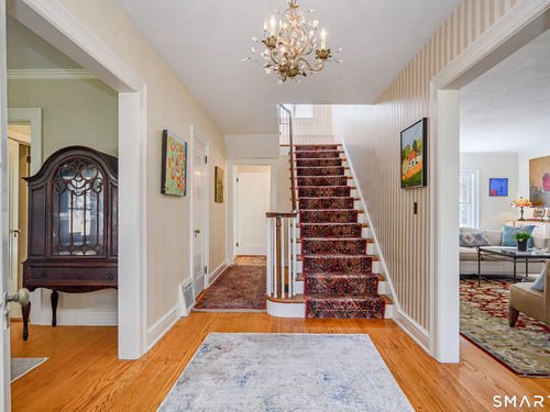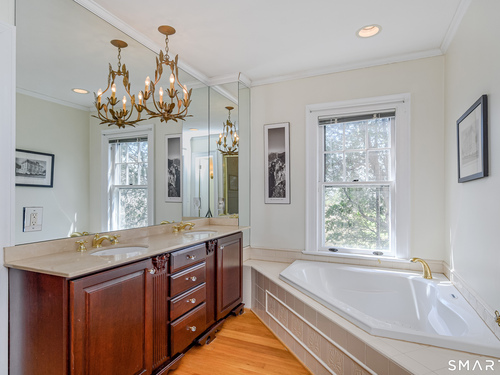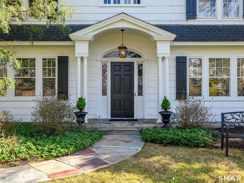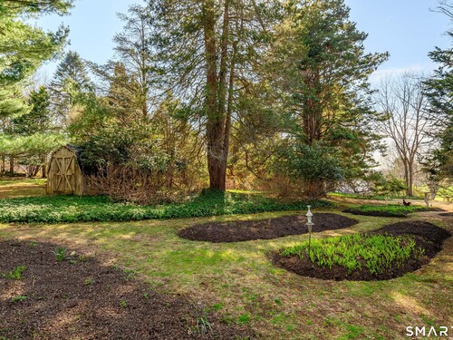This lovely historic center hall colonial nestled in the coveted Taunton Lake area of Newtown features charming period details. Set back from a quiet lane in a beautiful, private setting with sweeping lawns, mature specimen and ornamental trees, plantings, cutting gardens and meandering pathways through secret spaces. A welcoming foyer greets you as you enter this 3BR, 3.5 BA home that boasts a magnificent front-to-back living room featuring windows at each end offering views of the front and back lawns with built-ins and a fireplace along with a large dining room with corner china cabinets. A bright, roomy eat-in kitchen with stainless steel appliances including a 6-burner stove with dual ovens, granite counter tops and a walk-in pantry leads to a sizeable brick patio with a cascading fountain offering sweeping vistas of the tree-covered property. A sun filled den with wood-burning fireplace, and powder room complete the first floor. A grand staircase leads to a landing with a seating bench and large window before encountering the three bedrooms and three bathrooms on the second floor. The spacious primary bath features double sinks and vanity, walk-in shower, Jacuzzi tub, water closet and a generous dressing room. The hall bath is complete with a shower/tub combination, a vanity with ample storage and a large window overlooking the front lawn. A Jack 'n Jill bath between the two secondary bedrooms has a Jacuzzi tub. Also included are two attic spaces one located above