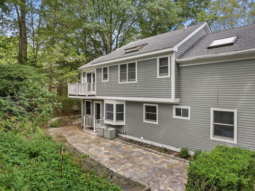 Welcome to 9 Trailside Drive, tucked away in Norwalk's sought-after Wolfpit neighborhood. This 3-bedroom, 2-bath Colonial offers over 2,100 square feet of versatile living space on a private 0.38-acre lot on a dead end street with a cul-de-sac. Step inside and you'll immediately notice the home's thoughtful updates, including a brand-new roof in 2024, a freshly painted wood exterior in August 2025, and a new water heater. The highlight of the home is the primary suite, a true retreat spanning 578 square feet. It features a large walk-in closet, oversized bathroom, and a bonus room that works perfectly as a home office, nursery, or creative studio. The suite also includes a private balcony with elevated views and the peace that comes with being set up on the hill. The finished lower level adds even more flexibility, with space that can serve as a fourth bedroom, in-law suite, or recreation area. Step outside and discover the stunning backyard patio, crafted entirely from cemented-in rock, an ideal setting for entertaining or relaxing in your private outdoor space. With its cul-de-sac location, spacious design, and a blend of privacy and convenience, this home is built for both comfort and versatility.