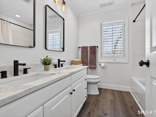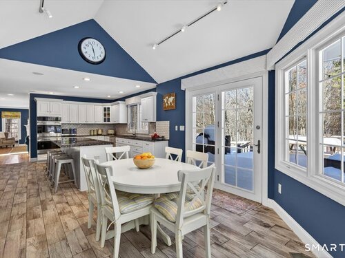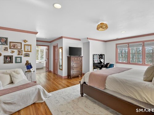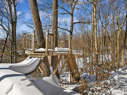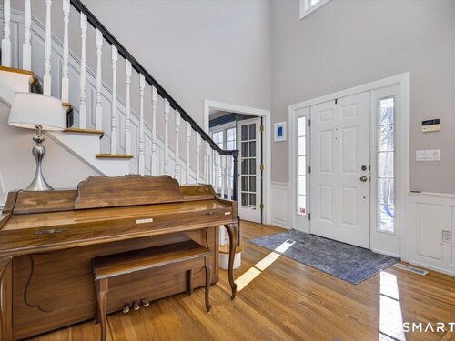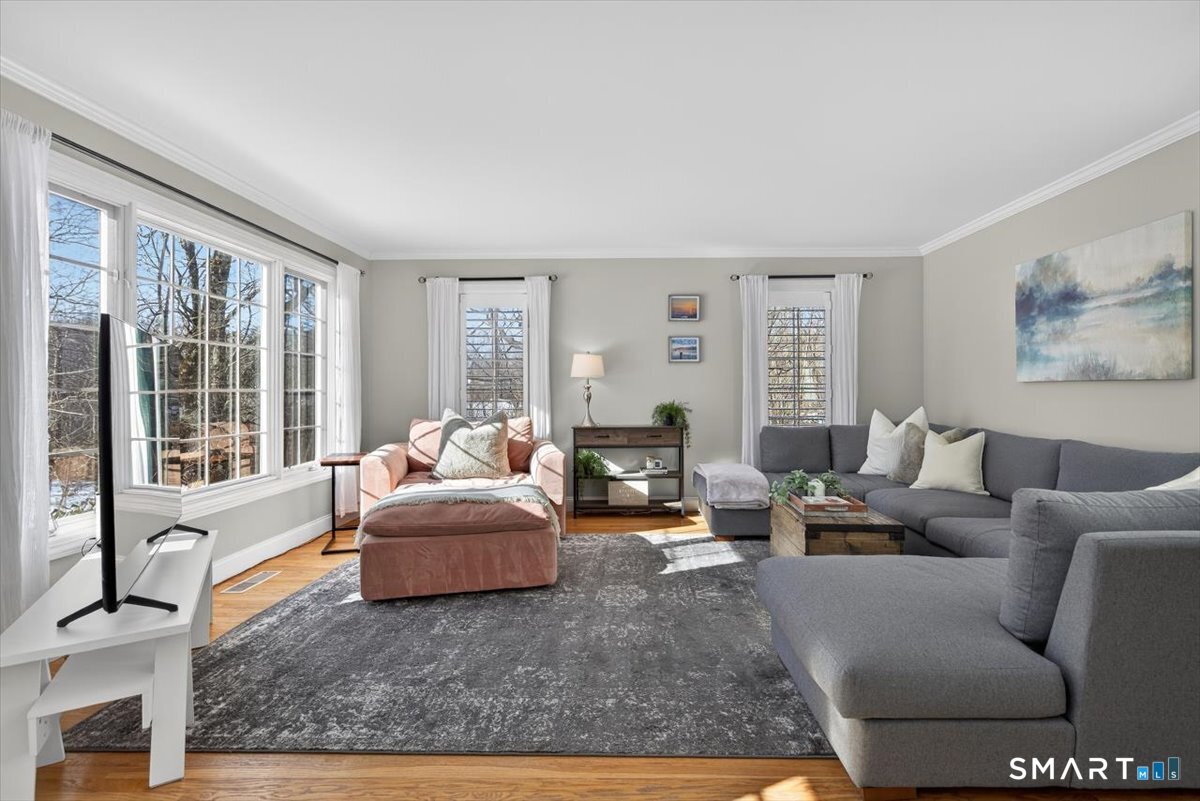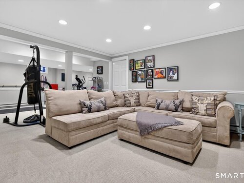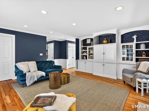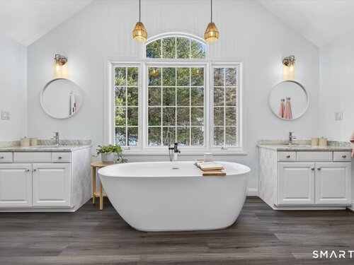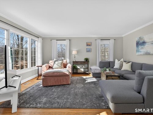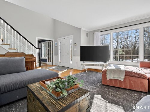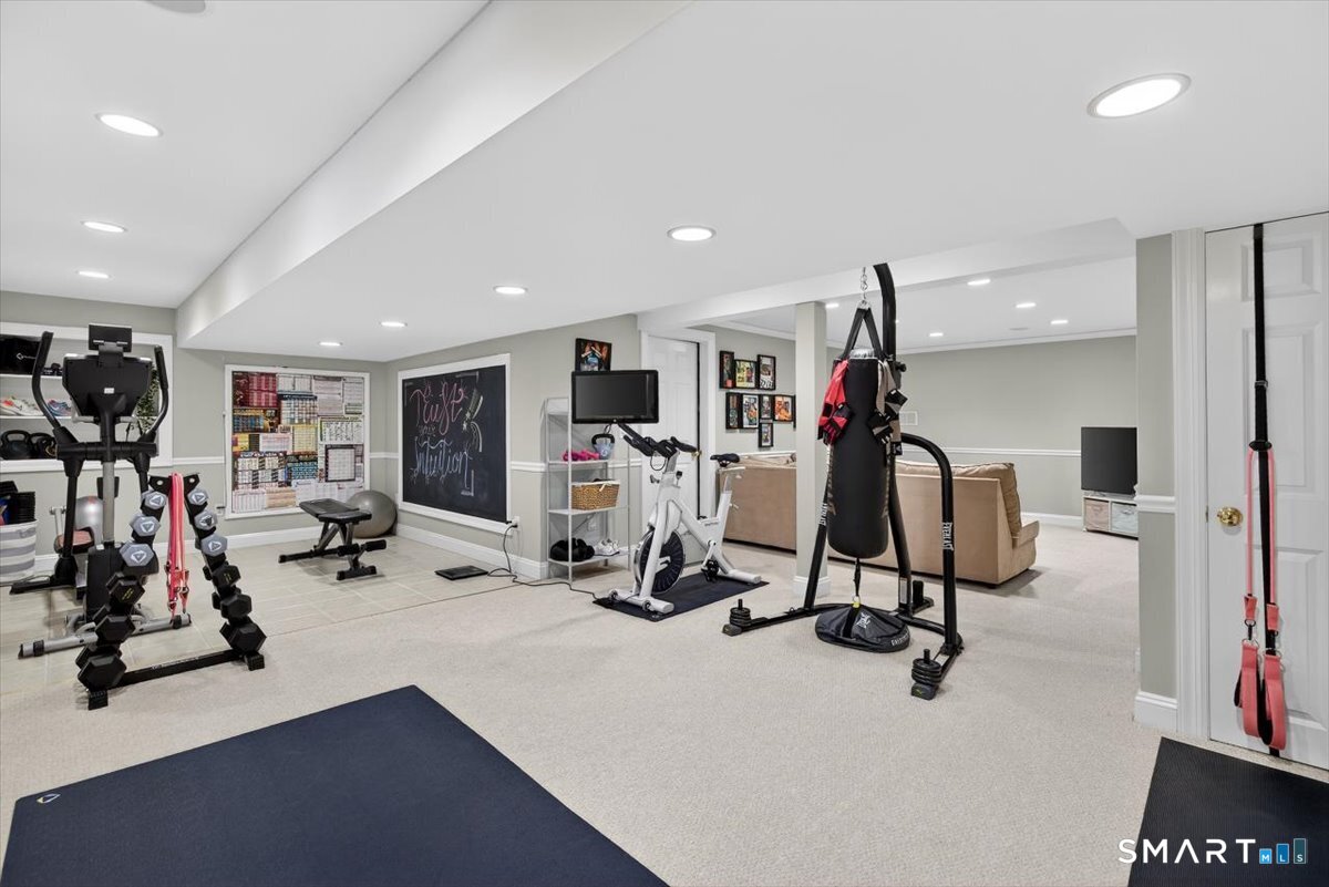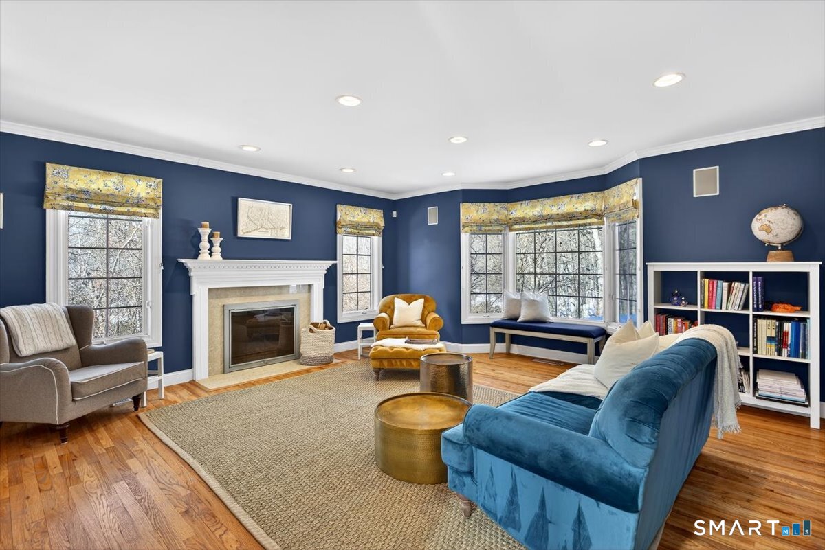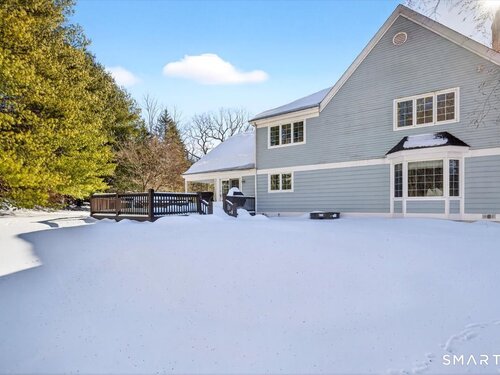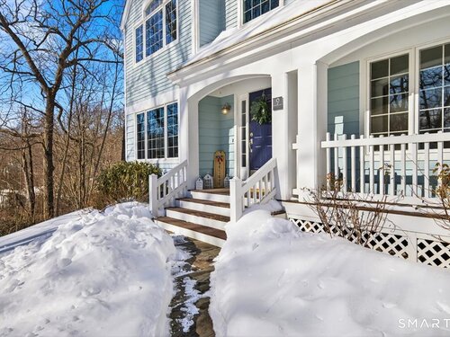 Quintessential cul-de-sac living in the heart of sought-after Weston small town suburbia with top rated schools. This stately center hall Colonial sits gracefully atop a hill, offering privacy, elevated views, and a peaceful wooded setting complete with a charming treehouse tucked into the surrounding woods. Inside, the home offers the flow today's buyers seek, featuring beautifully updated bathrooms including a newly renovated primary bath, a sun filled kitchen with vaulted ceiling breakfast area wrapped in windows, and seamless transitions from one inviting space to the next, along with a convenient mudroom for everyday living. The spacious primary suite is a true retreat with soaking tub, separate shower, dual vanities, and abundant natural light. The expansive finished lower level provides a large open area ideal for relaxing, working out, or play, along with a separate space offering potential for a fifth bedroom or home office. Numerous recent improvements add peace of mind, including a new roof, updated water heater system, new water softener system, new oil tank, newer furnace, and central air, making this a home that delivers comfort, flexibility, and timeless appeal in an exceptional neighborhood setting.