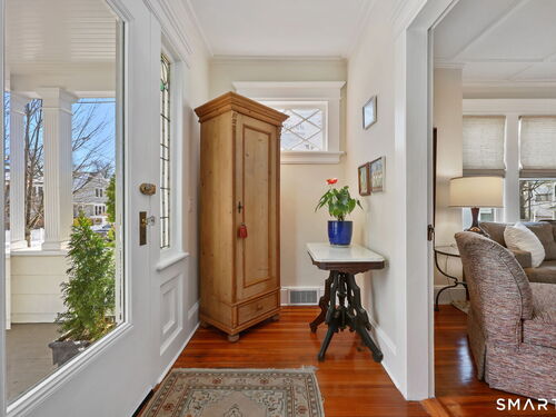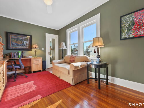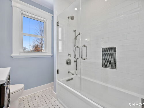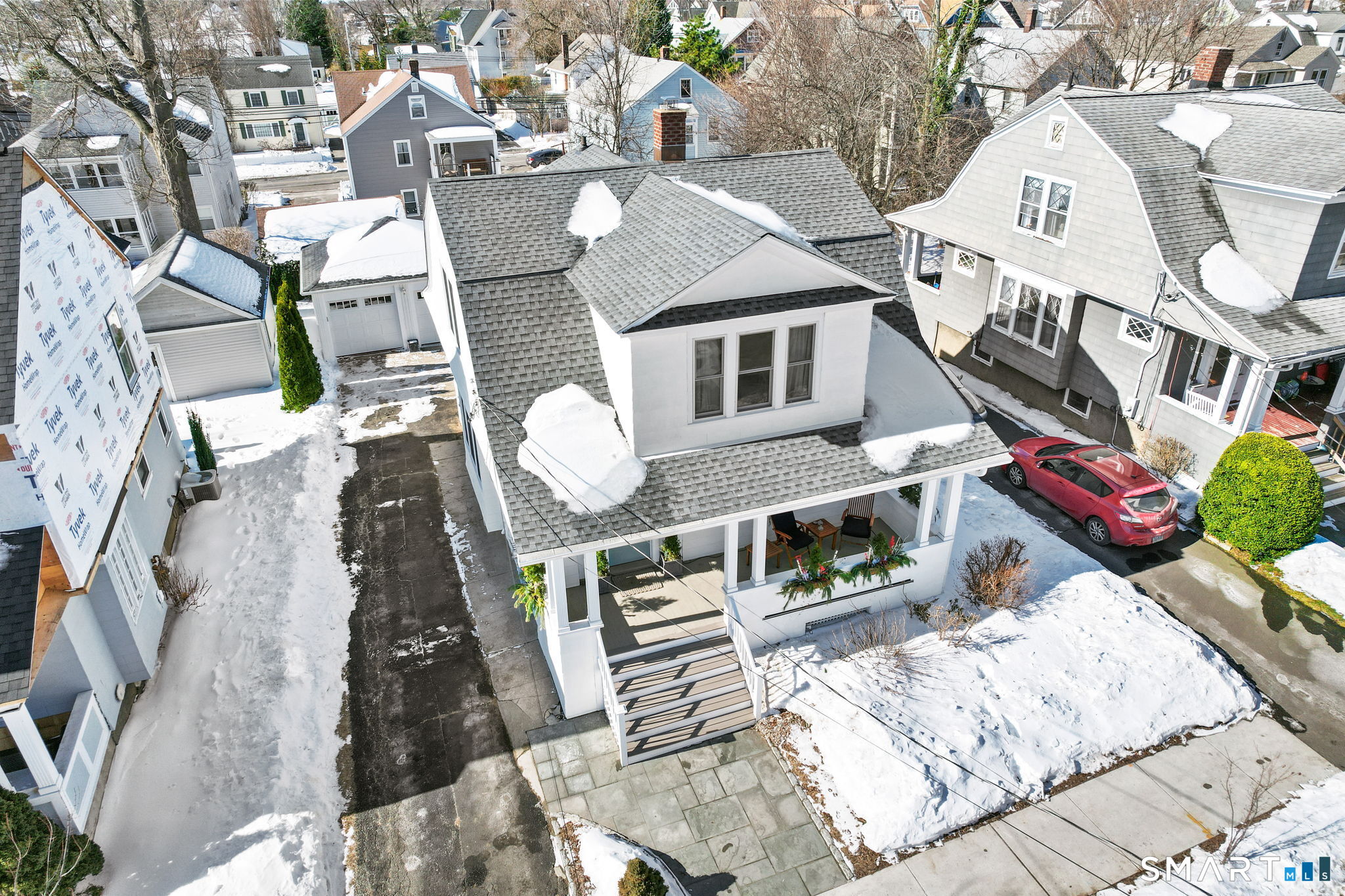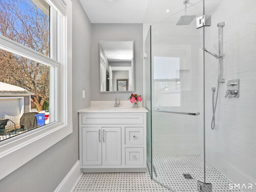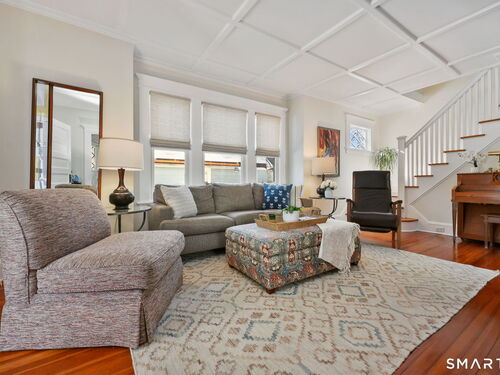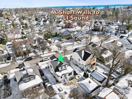 Tucked away on a quiet, tree-lined street in coastal Black Rock, this timeless 1915 bungalow blends classic charm & period details w/ modern updates. Perfectly located just steps from the train, quaint shops, local restaurants & live music venues. Enjoy morning strolls to Harborview Market or sunny afternoons by St. Mary's by the Sea. Inside, nearly 9-foot ceilings & oversized windows fill the home w/ natural light. A welcoming foyer opens to a spacious living & dining room featuring a cozy window seat-ideal for relaxing or entertaining. The renovated kitchen showcases white cabinetry, marble countertops, stainless steel appliances & ample room for an island or breakfast nook. The newly added 1st floor bedroom (or home office) features a vaulted ceiling & direct access to a brand new full bath w/ walk-in shower. Upstairs, you'll find three generously sized bedrooms, each w/ walk-in closets featuring custom storage systems. The designer hall bath offers both a soaking tub & a frameless glass shower set on elegant marble flooring. The primary BR easily accommodates a king-sized bed. A full unfinished lower level, recently repointed, is bright, clean, & ready for your personal touch. Recent upgrades include: New roof (2024), New garage doors & electrical service, New bluestone landing & sidewalk, New front & back stairways,New interior & exterior painting, New furnace, hot water heater, 200-amp service (2019). Come discover why Black Rock is being called the new Brooklyn of CT.