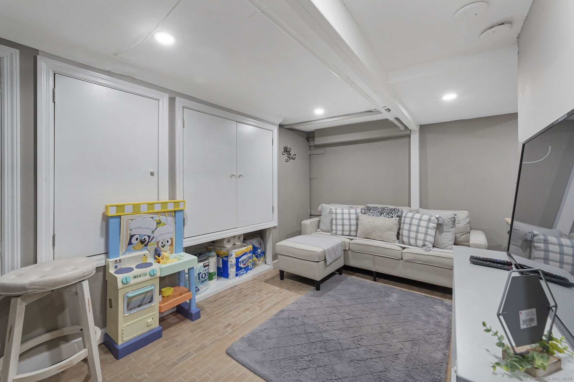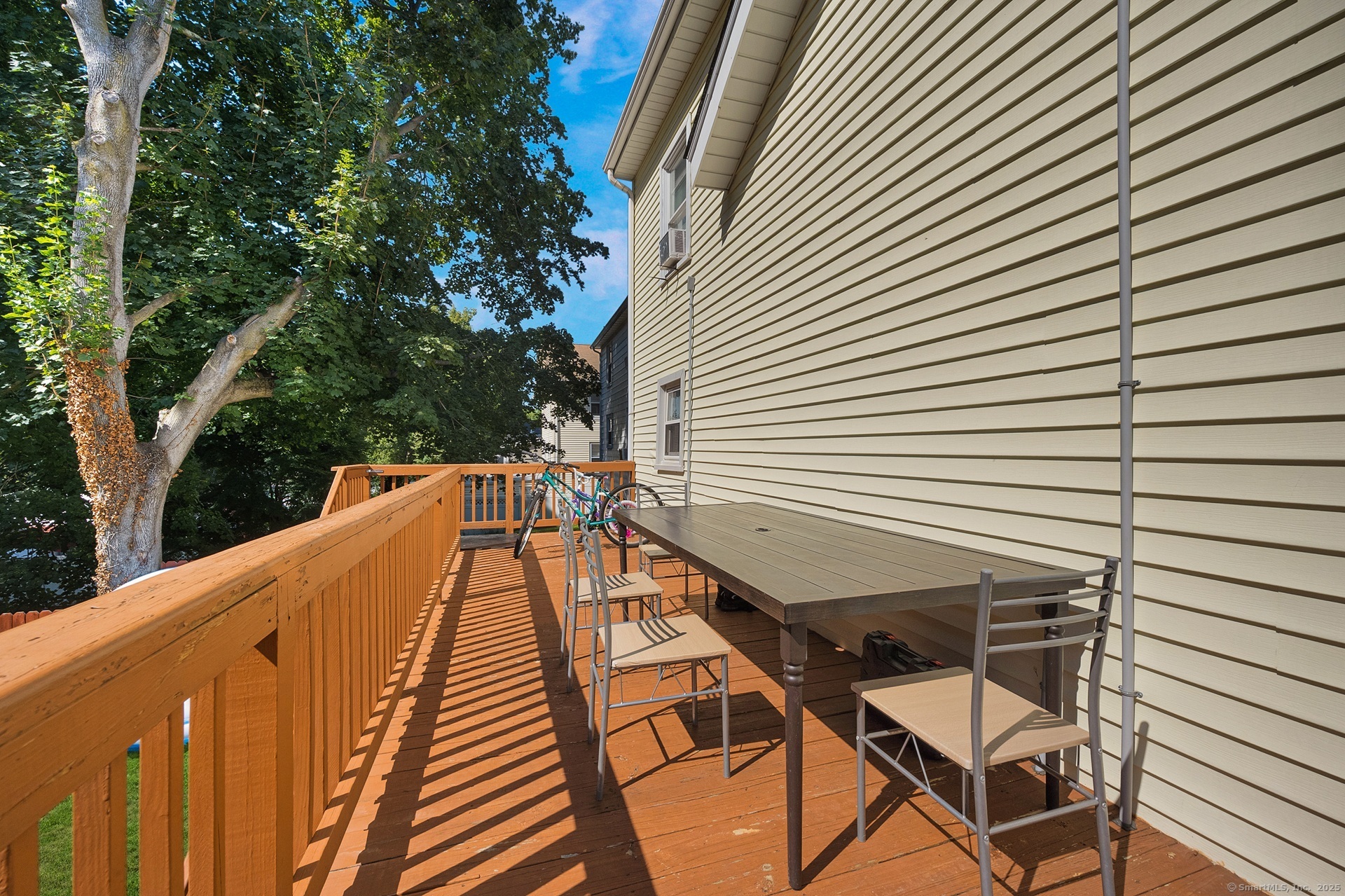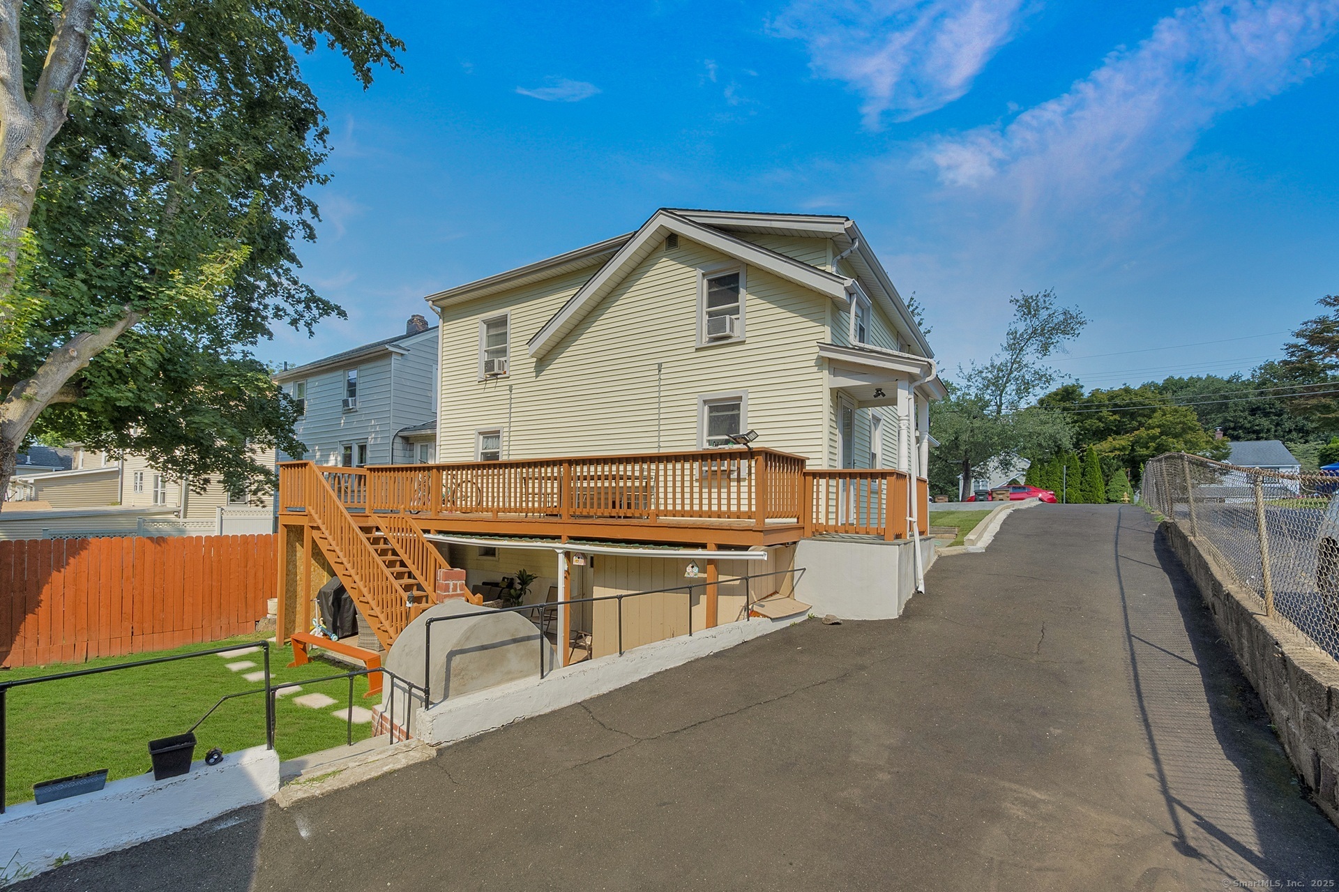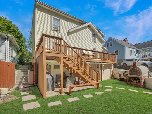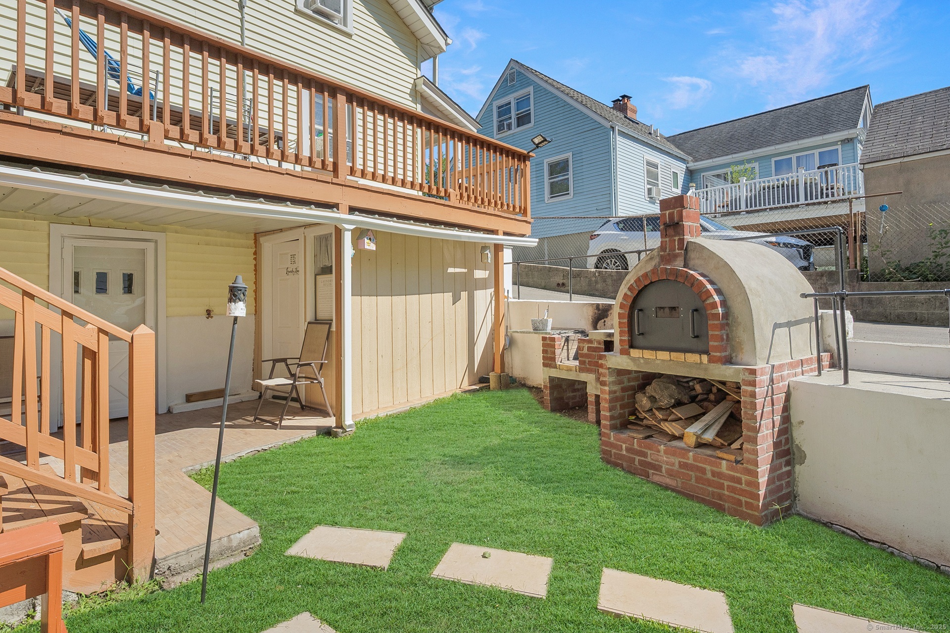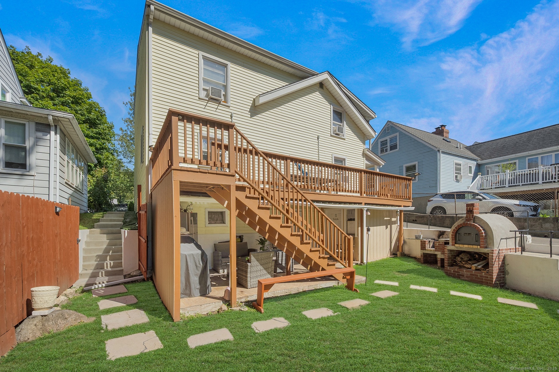 Welcome to this updated Colonial in the neighborhood of Glenbrook! Featuring three bedrooms, multiple baths, and flexible bonus rooms, this home offers a layout designed for both comfort and versatility. The main level includes a dining room that opens to a bright kitchen with quartz countertops and stainless-steel appliances, a separate living room, and a family room. A convenient half bath completes the first floor. Upstairs, you'll find three bedrooms and a full bathroom, including a primary bedroom with a walk-in closet and plenty of additional storage space. The lower level has been improved to create a versatile entertainment area with a kitchenette, full bath, and laundry room, ideal for gatherings, hobbies, or work-from-home needs. Outdoor living is a highlight here: enjoy the two-level deck, new brick oven and grill, and a professionally landscaped backyard designed for entertaining or relaxation. A detached building offers multiple rooms on the upper level and an open, flexible space on the lower level, perfect for use as a studio, office, gym, or creative retreat. Ideally located in Glenbrook, right on the Stamford/Darien border, this home provides convenient access to downtown Stamford, schools, shopping, and transit. A property full of possibilities, whether you're looking for everyday comfort or room to grow.