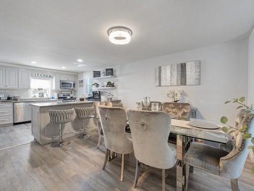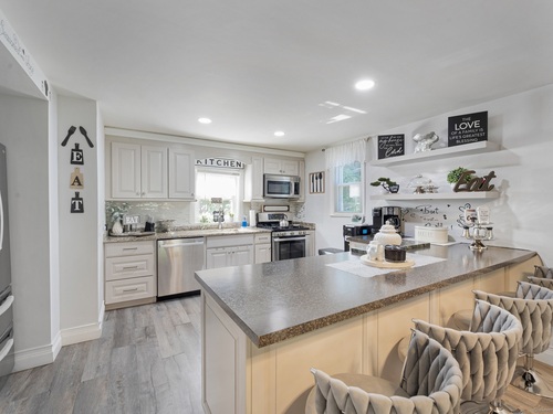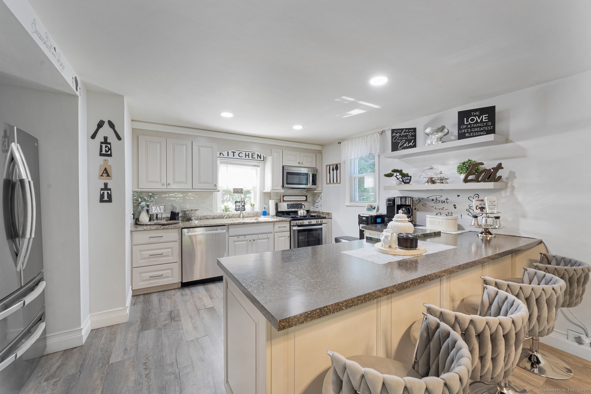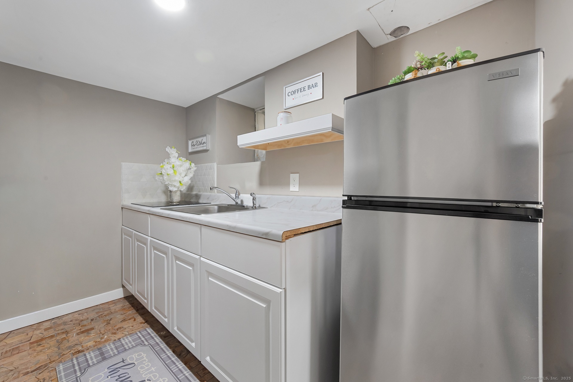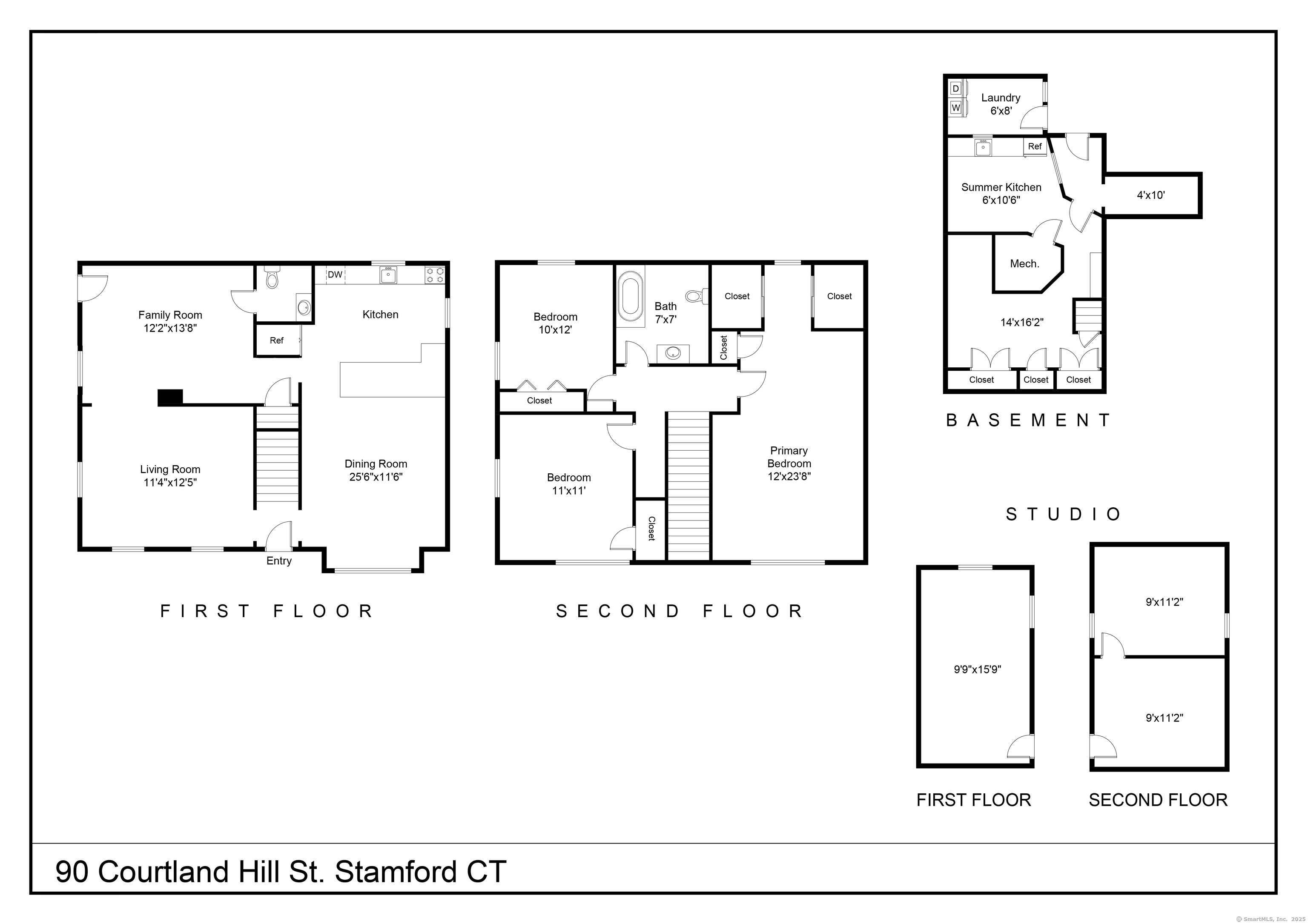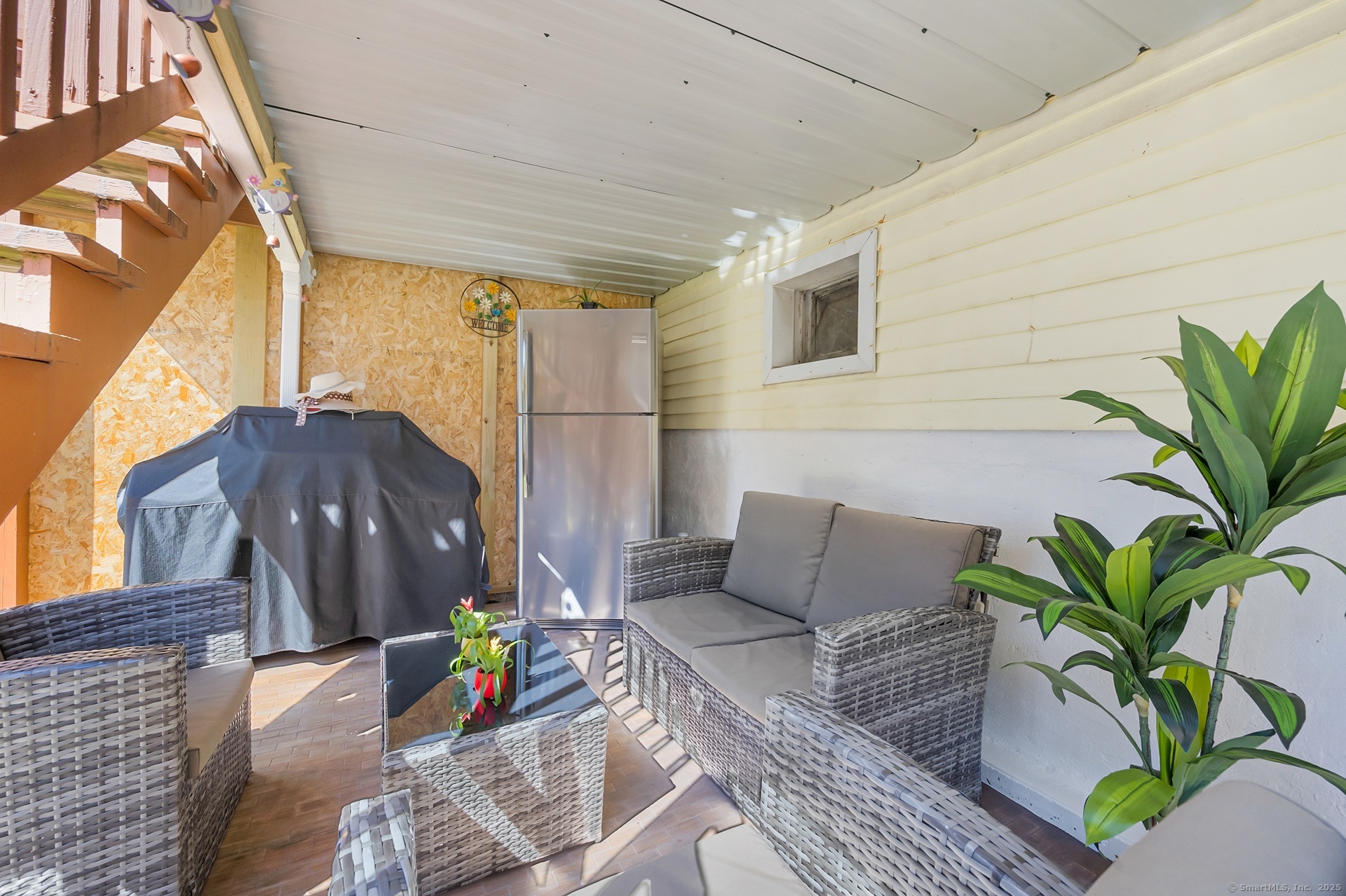 Welcome to this updated Colonial in the neighborhood of Glenbrook! Featuring three bedrooms, multiple baths, and flexible bonus rooms, this home offers a layout designed for both comfort and versatility. The main level includes a dining room that opens to a bright kitchen with quartz countertops and stainless-steel appliances, a separate living room, and a family room. A convenient half bath completes the first floor. Upstairs, you'll find three bedrooms and a full bathroom, including a primary bedroom with a walk-in closet and plenty of additional storage space. The lower level has been improved to create a versatile entertainment area with a kitchenette, full bath, and laundry room, ideal for gatherings, hobbies, or work-from-home needs. Outdoor living is a highlight here: enjoy the two-level deck, new brick oven and grill, and a professionally landscaped backyard designed for entertaining or relaxation. A detached building offers multiple rooms on the upper level and an open, flexible space on the lower level, perfect for use as a studio, office, gym, or creative retreat. Ideally located in Glenbrook, right on the Stamford/Darien border, this home provides convenient access to downtown Stamford, schools, shopping, and transit. A property full of possibilities, whether you're looking for everyday comfort or room to grow.