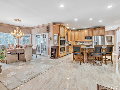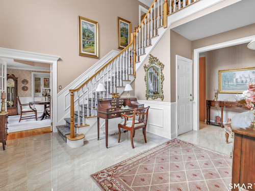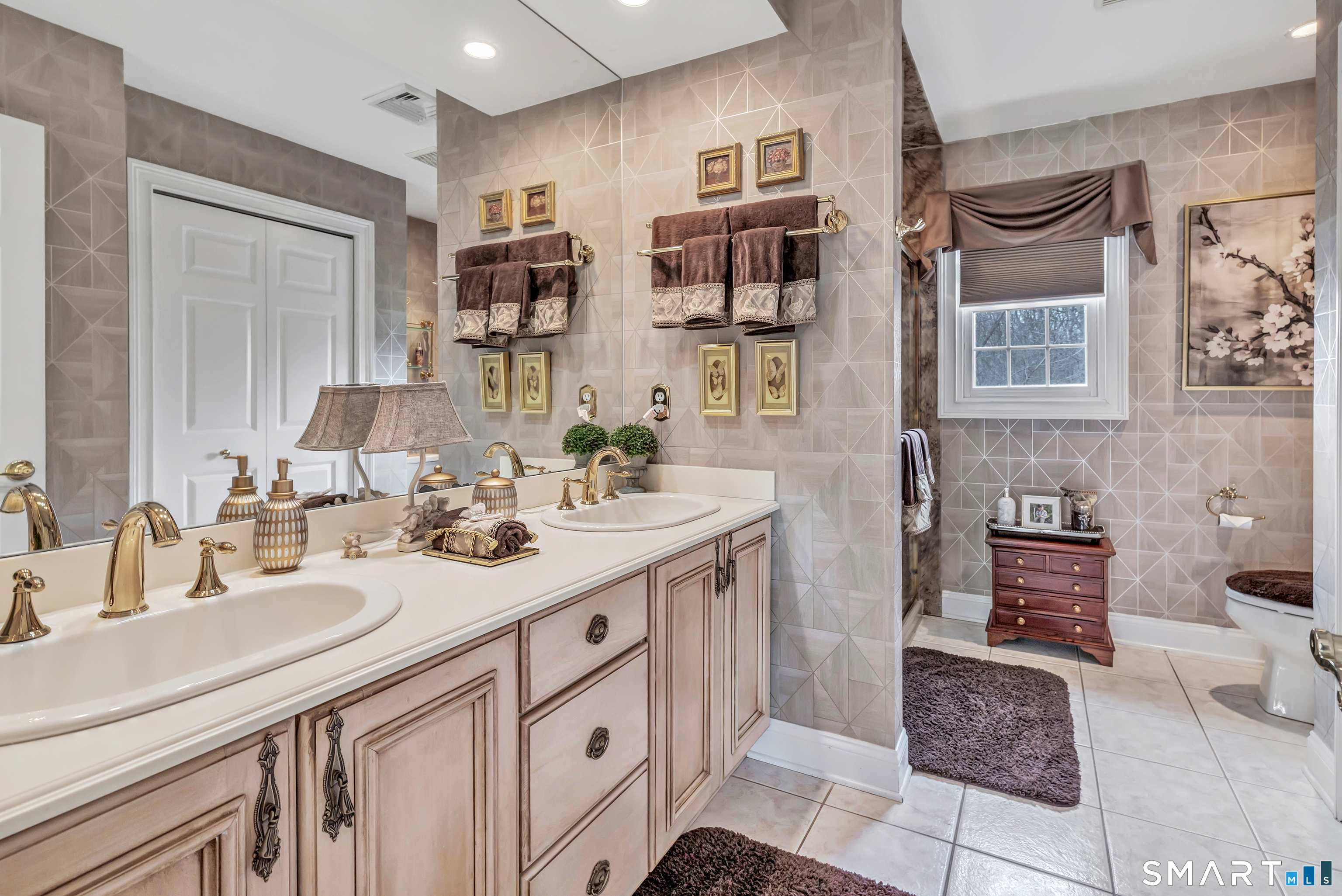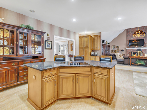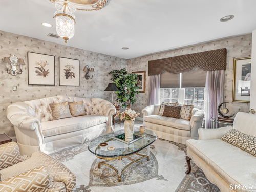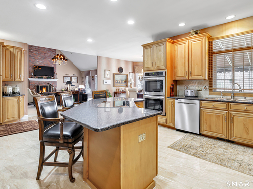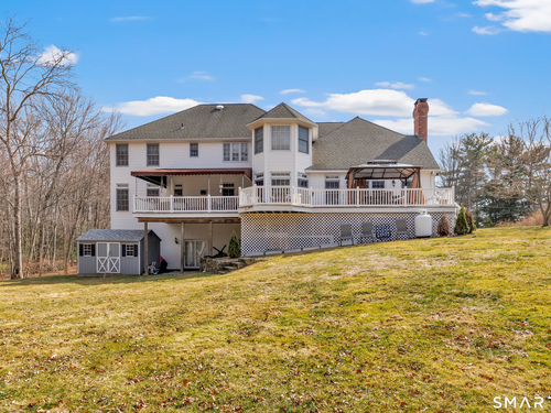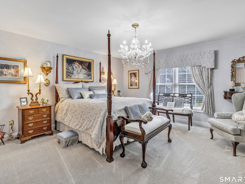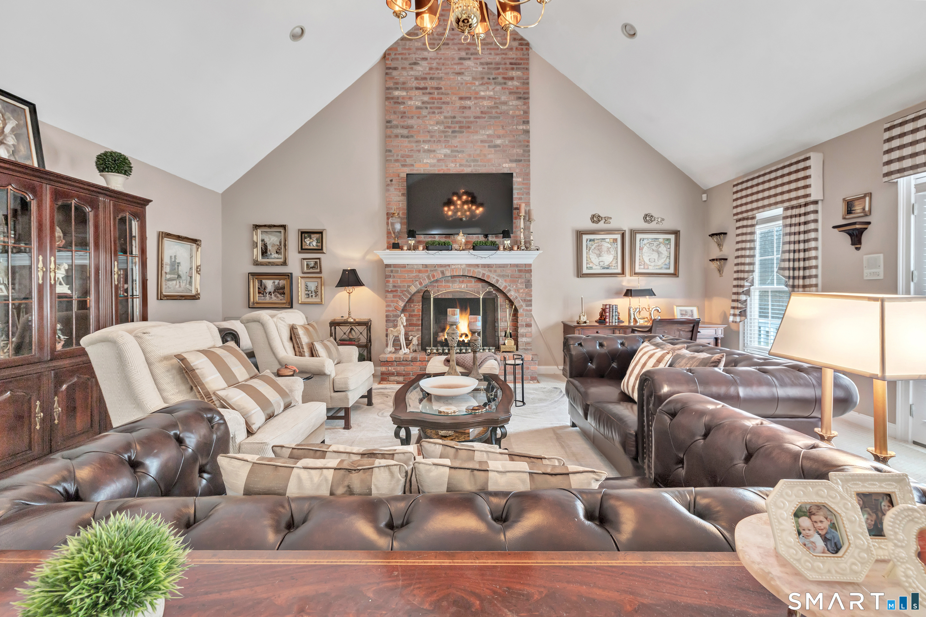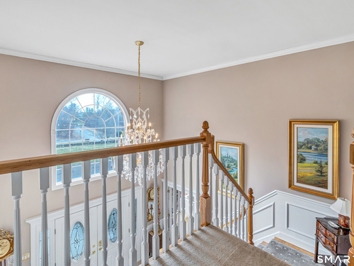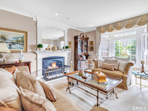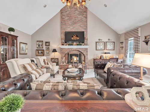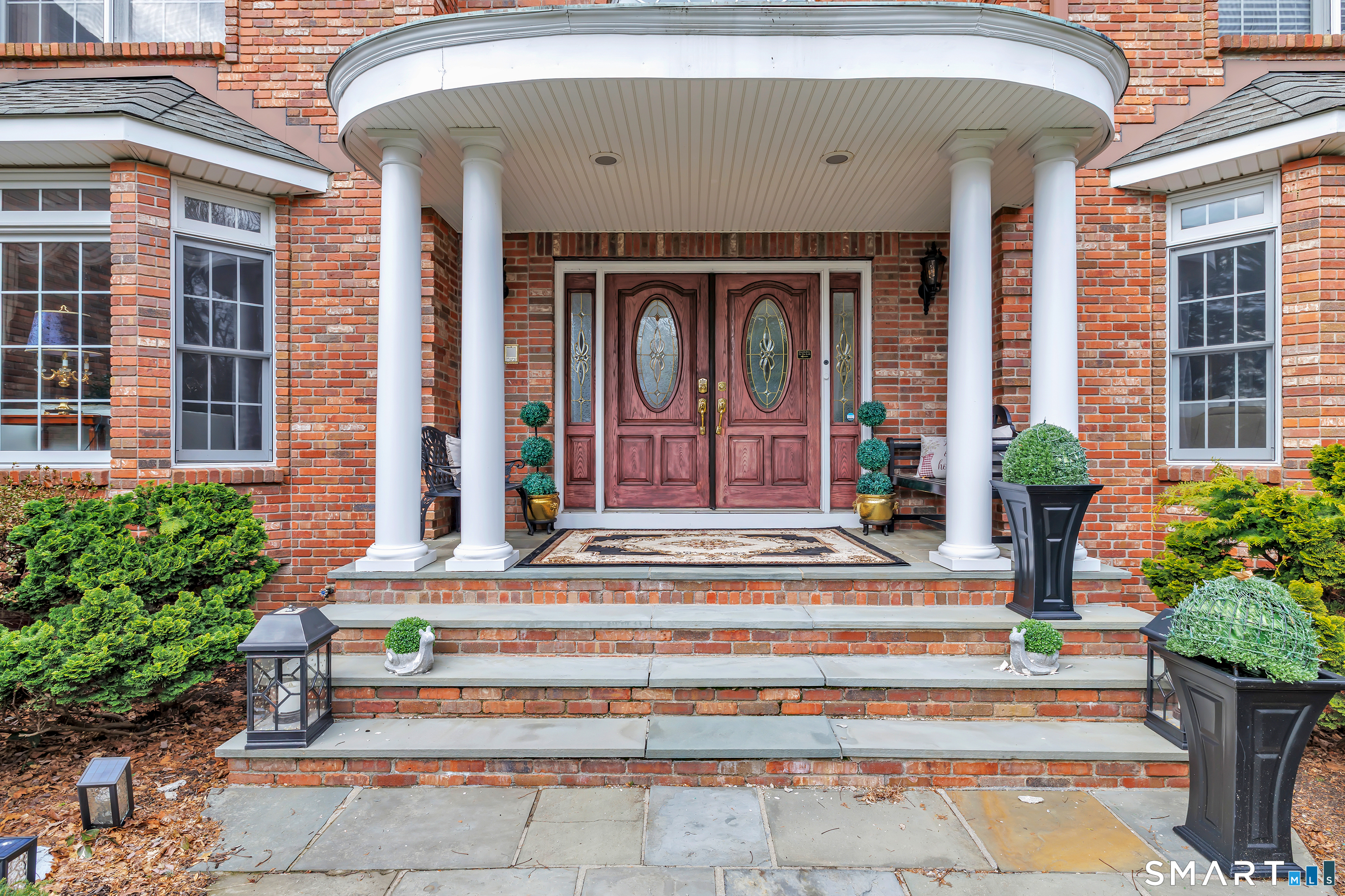 Brick center hall Colonial set on 1.13 acres in the Huntington section of Shelton, positioned off the road for added privacy. This 4-bedroom, 4.5-bath home offers 4,856 sq ft with a functional layout and generously sized rooms throughout. The main level includes a large kitchen with granite counters, stainless steel appliances, center island, and breakfast nook, opening to a spacious family room with cathedral ceilings and fireplace. Formal living and dining rooms provide additional gathering space. A main-level bedroom with full bath offers flexibility for guests or extended living. Upstairs, the primary suite features cathedral ceilings, multiple closets, a sitting area with wet bar, and a private bath with separate jacuzzi room. Three additional bedrooms complete the upper level. The lower level is partially finished with a full bath and adds an additional 1156 SQFT, including a possible in-law setup. Exterior features include a large rear deck overlooking a level, private yard, along with a 3-car garage and stone walls. Conveniently located near Huntington Center, golf, shopping, dining, and commuter routes.