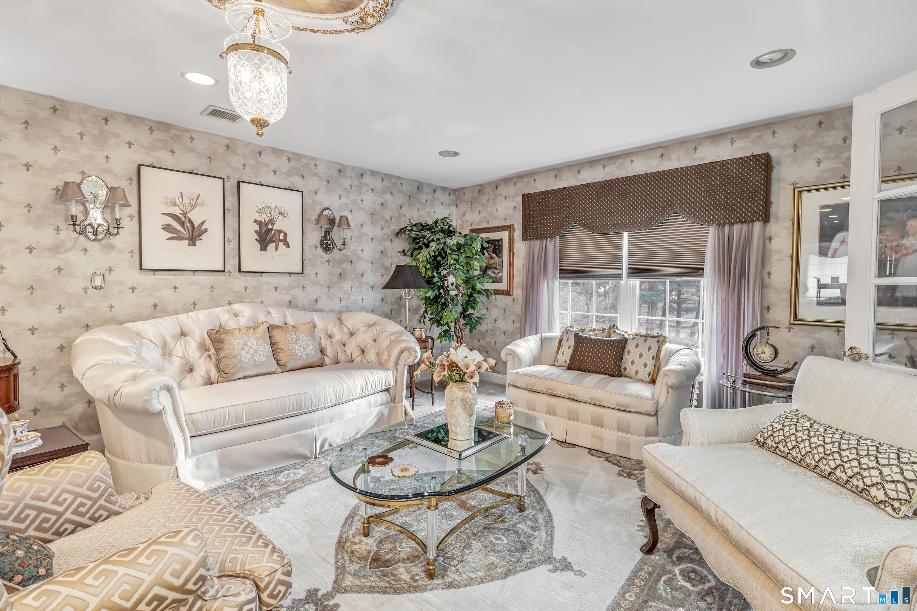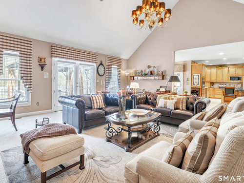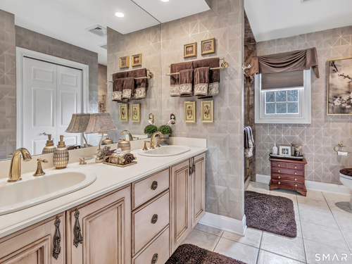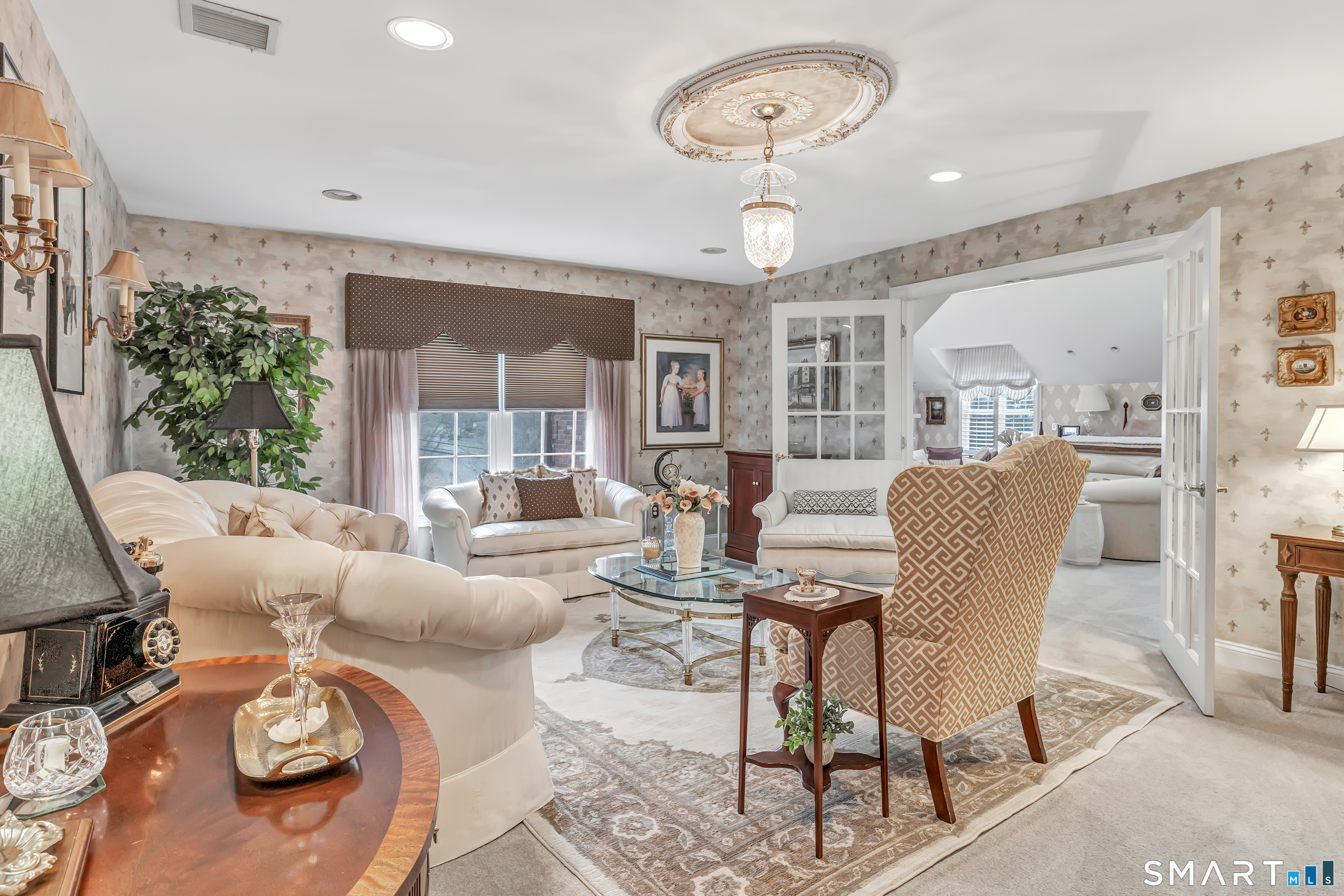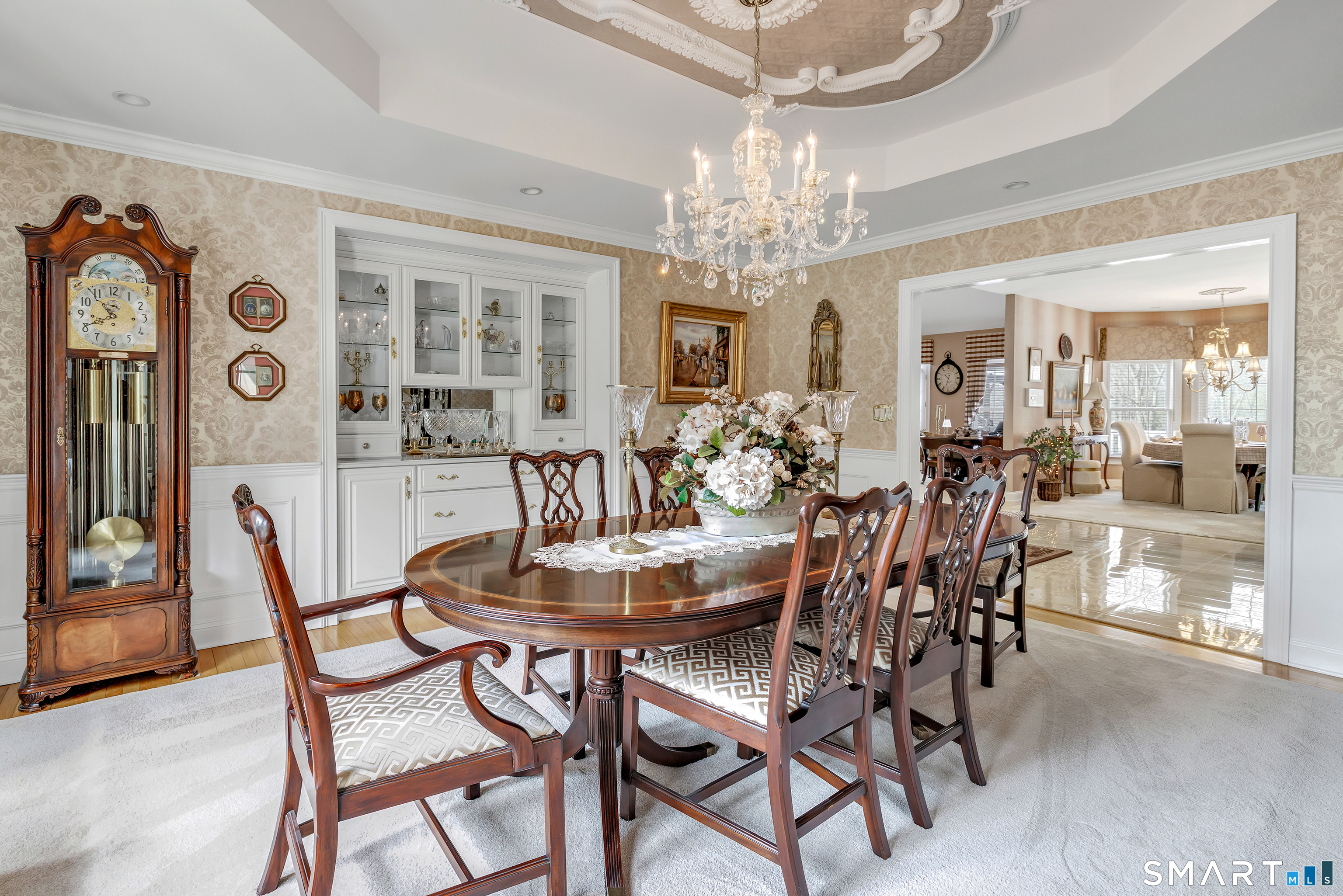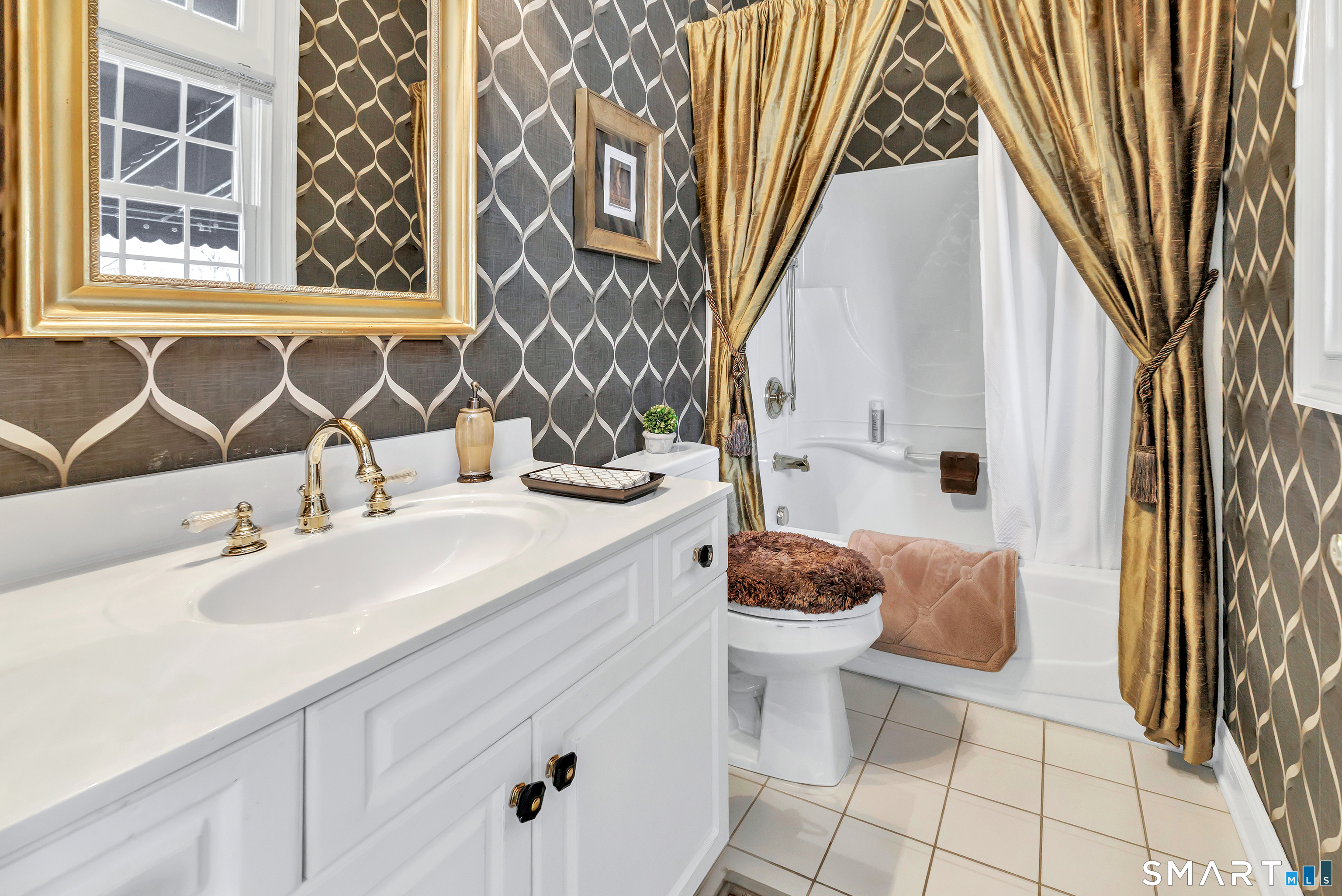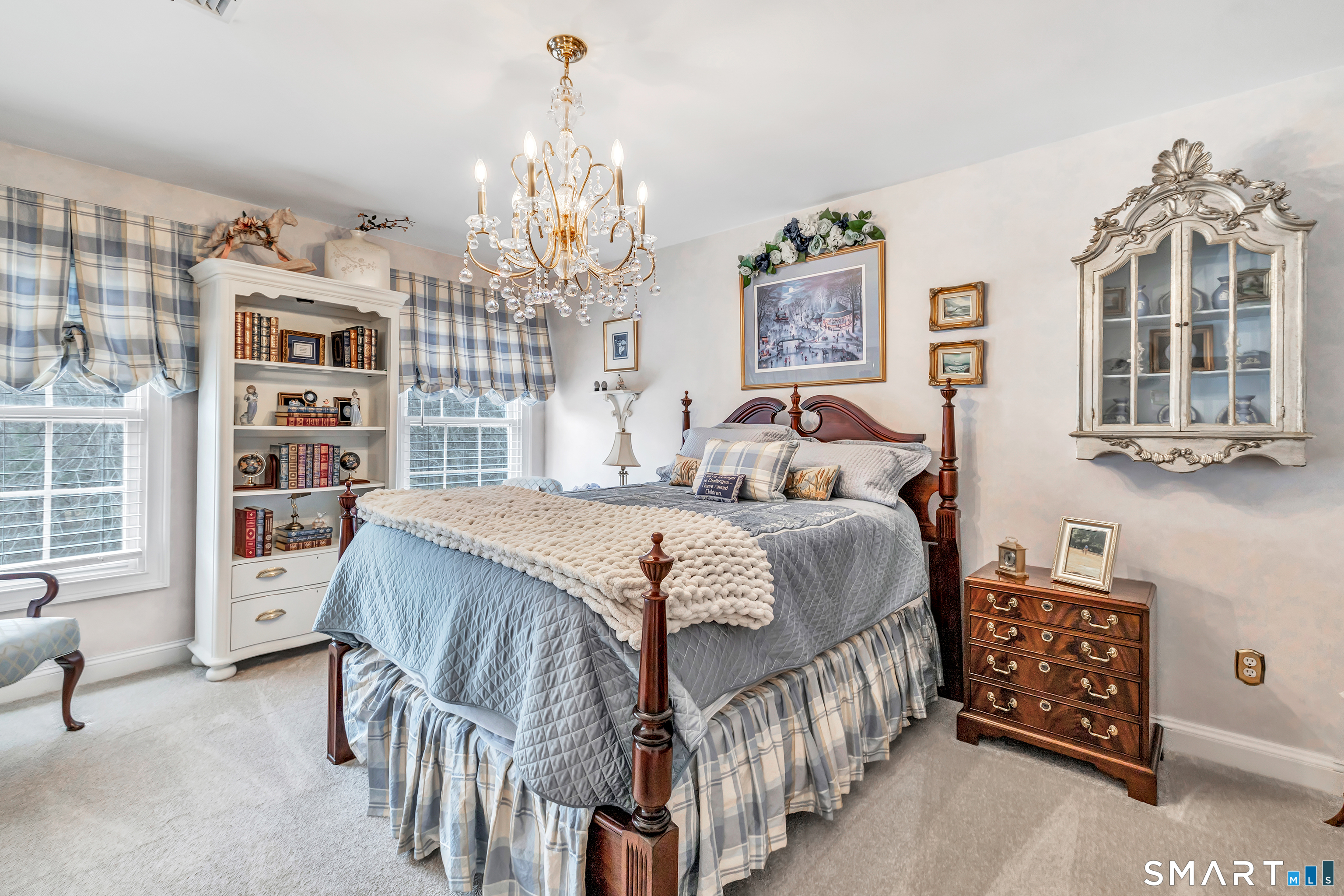 Brick center hall Colonial set on 1.13 acres in the Huntington section of Shelton, positioned off the road for added privacy. This 4-bedroom, 4.5-bath home offers 4,856 sq ft with a functional layout and generously sized rooms throughout. The main level includes a large kitchen with granite counters, stainless steel appliances, center island, and breakfast nook, opening to a spacious family room with cathedral ceilings and fireplace. Formal living and dining rooms provide additional gathering space. A main-level bedroom with full bath offers flexibility for guests or extended living. Upstairs, the primary suite features cathedral ceilings, multiple closets, a sitting area with wet bar, and a private bath with separate jacuzzi room. Three additional bedrooms complete the upper level. The lower level is partially finished with a full bath and adds an additional 1156 SQFT, including a possible in-law setup. Exterior features include a large rear deck overlooking a level, private yard, along with a 3-car garage and stone walls. Conveniently located near Huntington Center, golf, shopping, dining, and commuter routes.