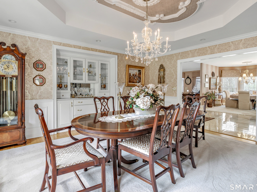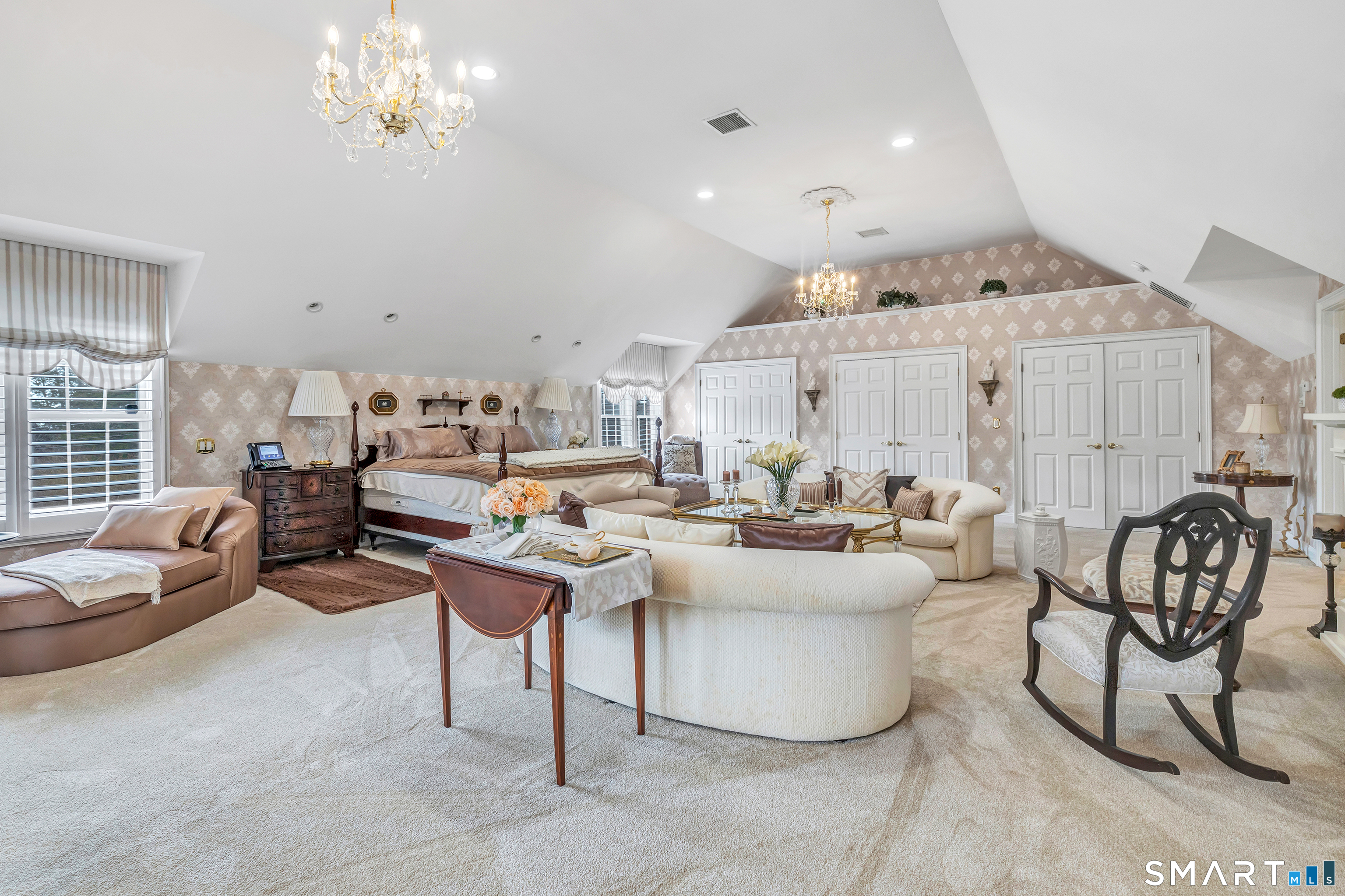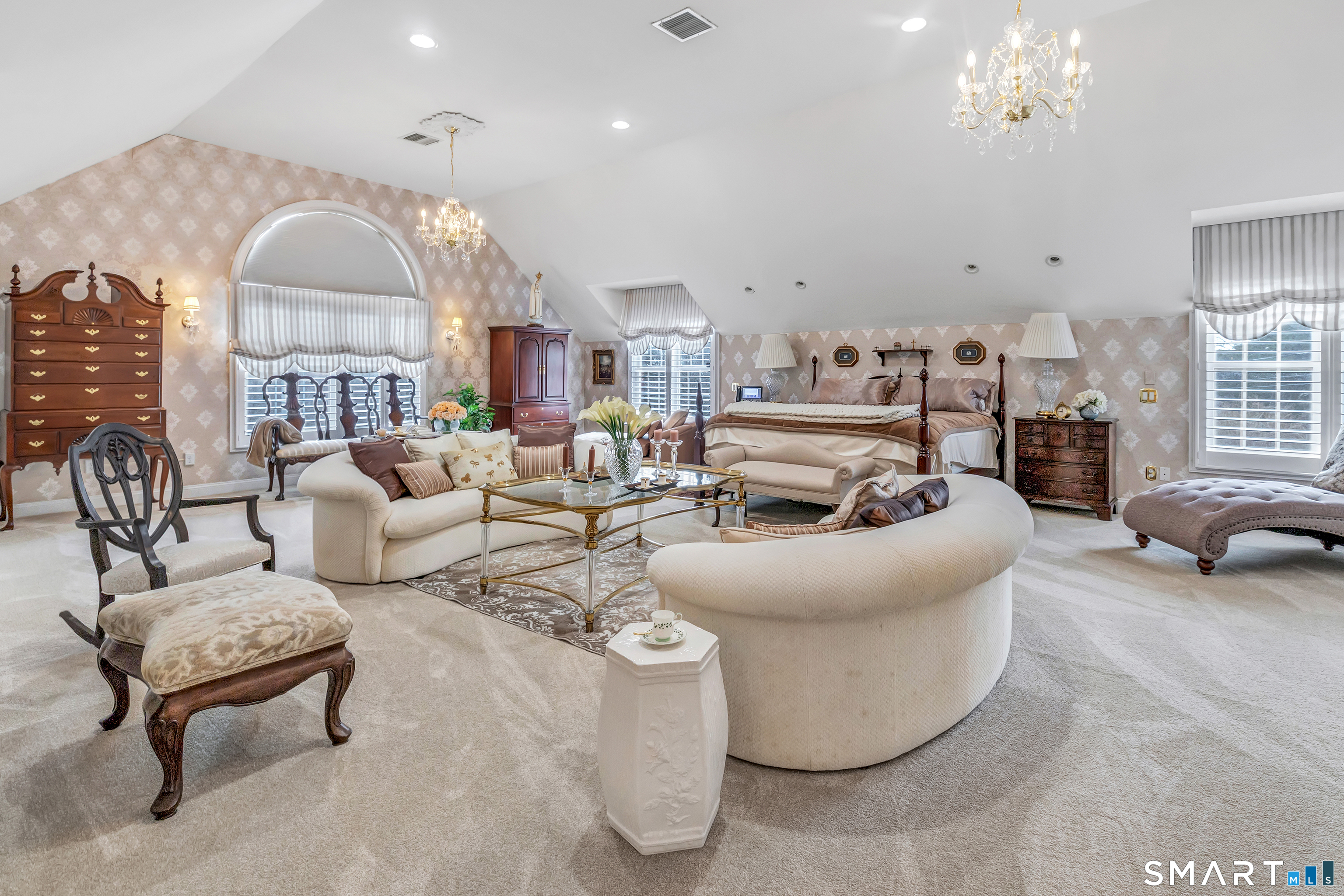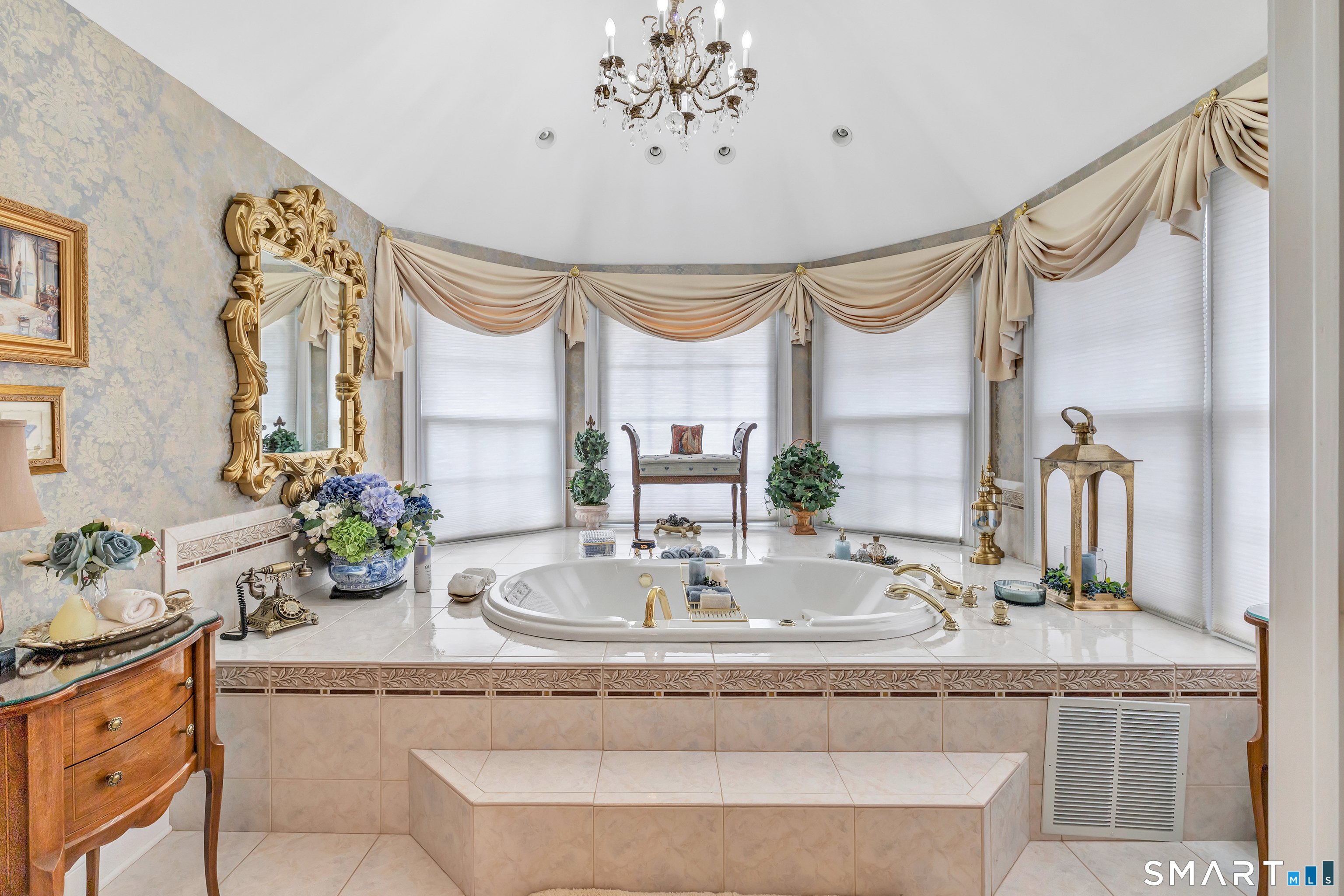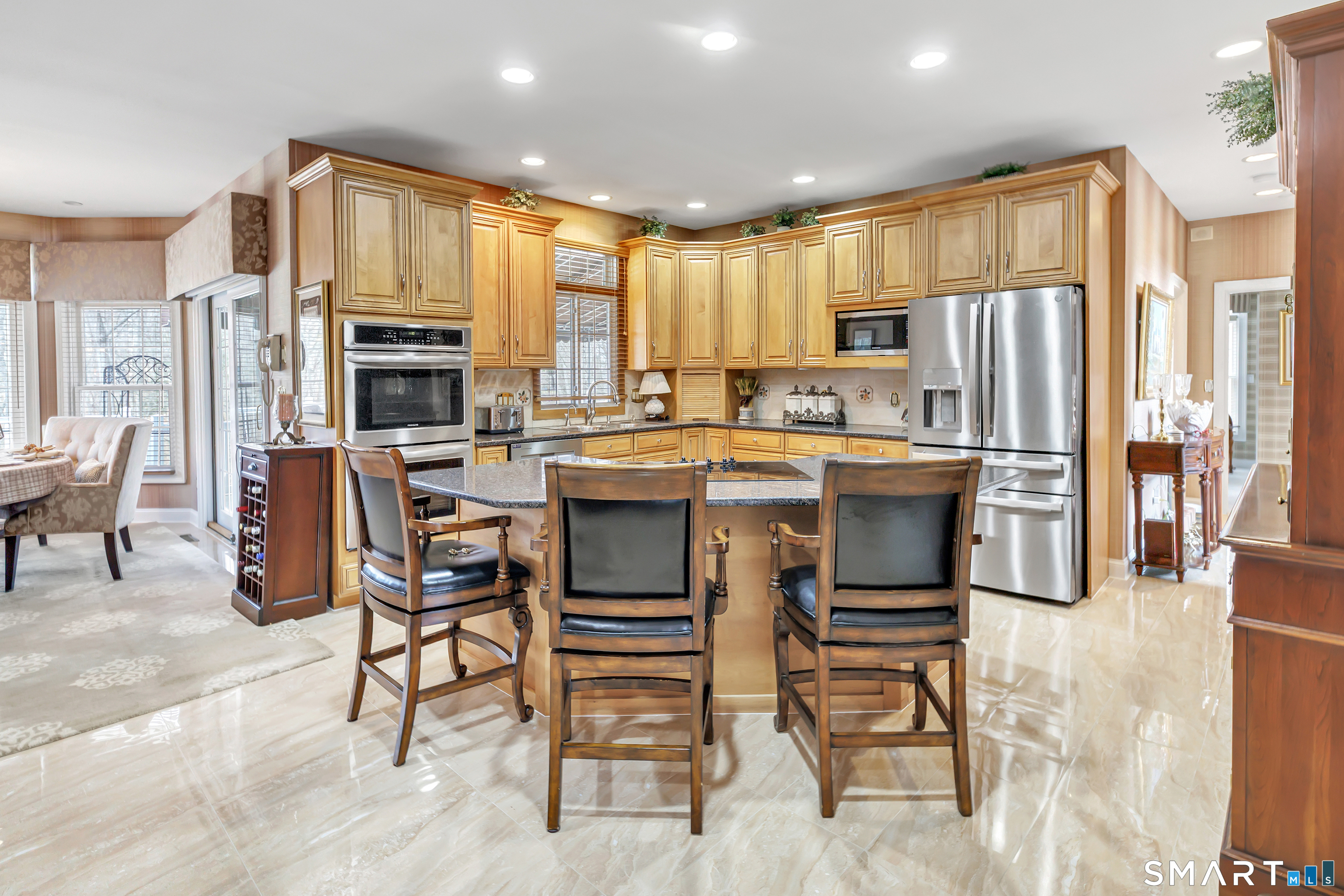 Brick center hall Colonial set on 1.13 acres in the Huntington section of Shelton, positioned off the road for added privacy. This 4-bedroom, 4.5-bath home offers 4,856 sq ft with a functional layout and generously sized rooms throughout. The main level includes a large kitchen with granite counters, stainless steel appliances, center island, and breakfast nook, opening to a spacious family room with cathedral ceilings and fireplace. Formal living and dining rooms provide additional gathering space. A main-level bedroom with full bath offers flexibility for guests or extended living. Upstairs, the primary suite features cathedral ceilings, multiple closets, a sitting area with wet bar, and a private bath with separate jacuzzi room. Three additional bedrooms complete the upper level. The lower level is partially finished with a full bath and adds an additional 1156 SQFT, including a possible in-law setup. Exterior features include a large rear deck overlooking a level, private yard, along with a 3-car garage and stone walls. Conveniently located near Huntington Center, golf, shopping, dining, and commuter routes.