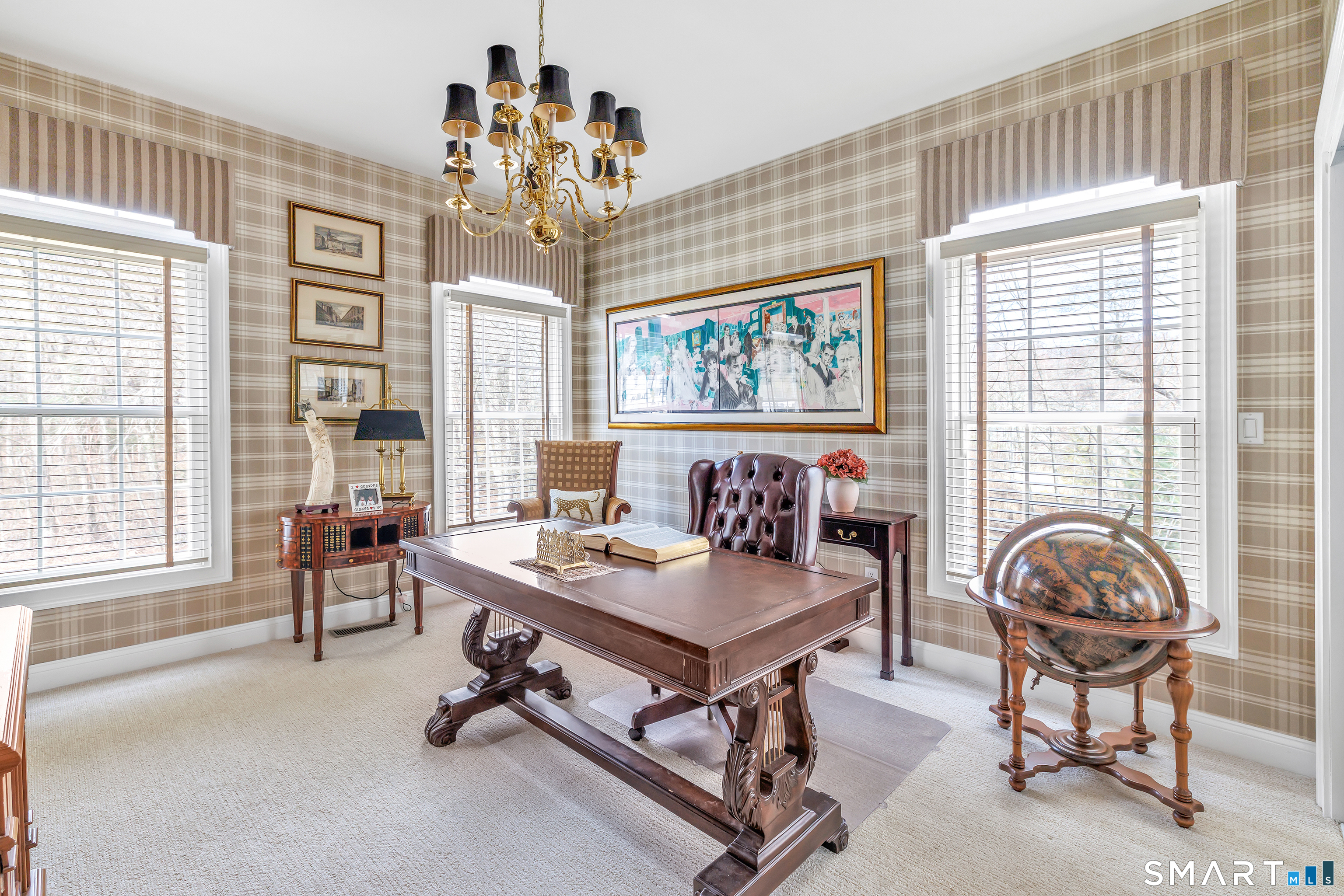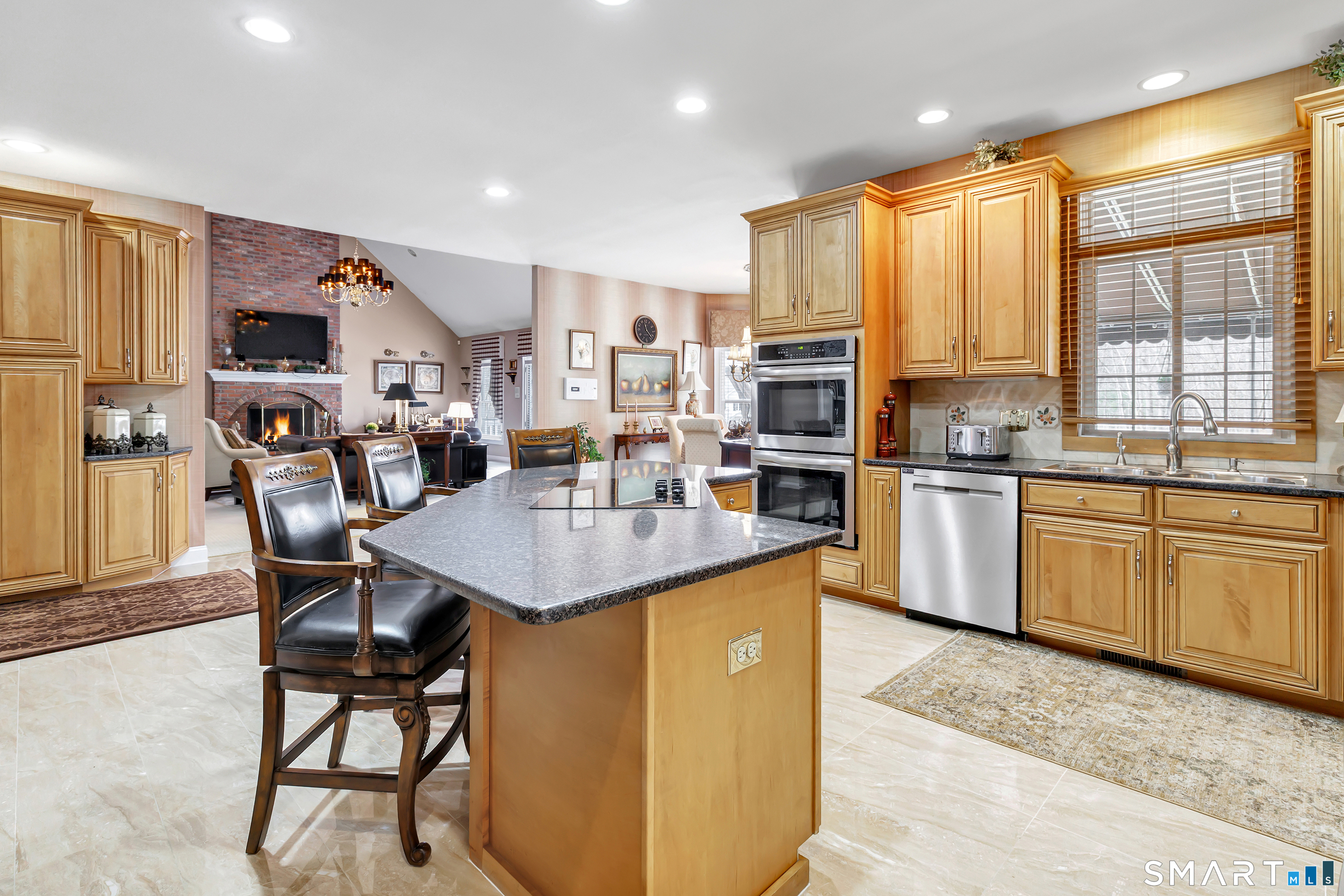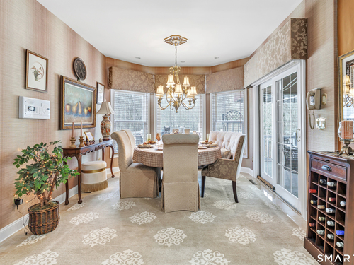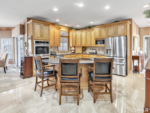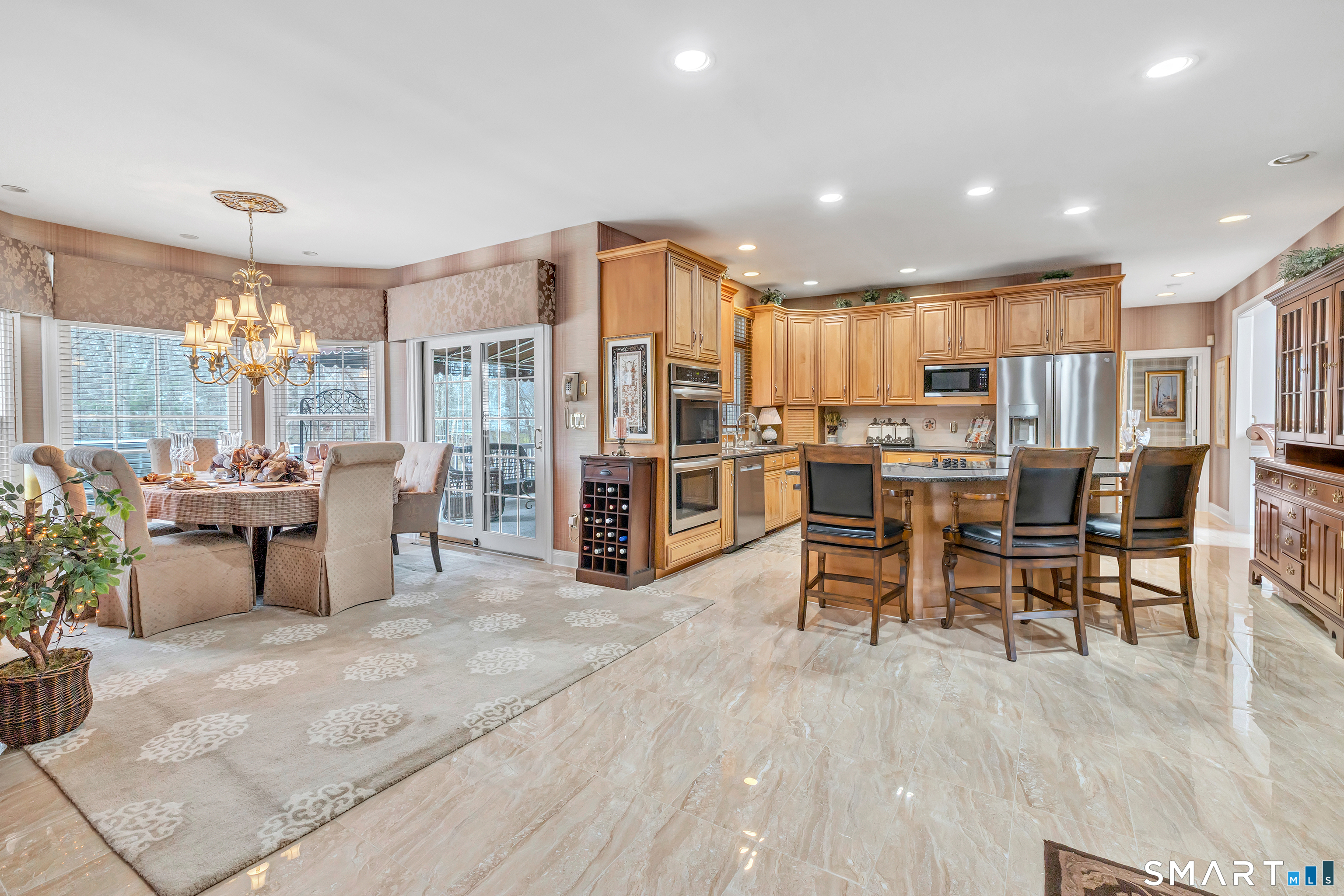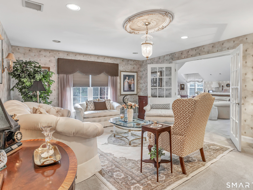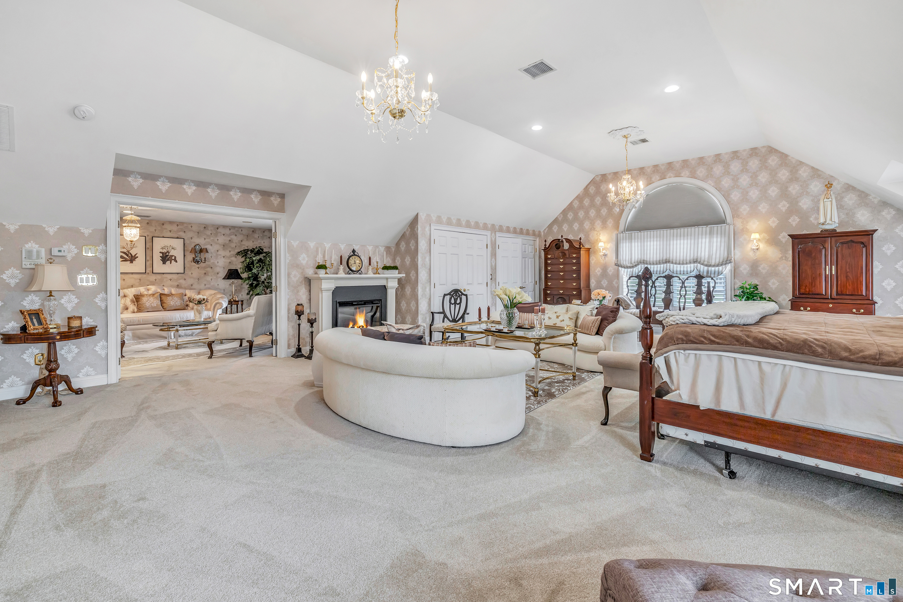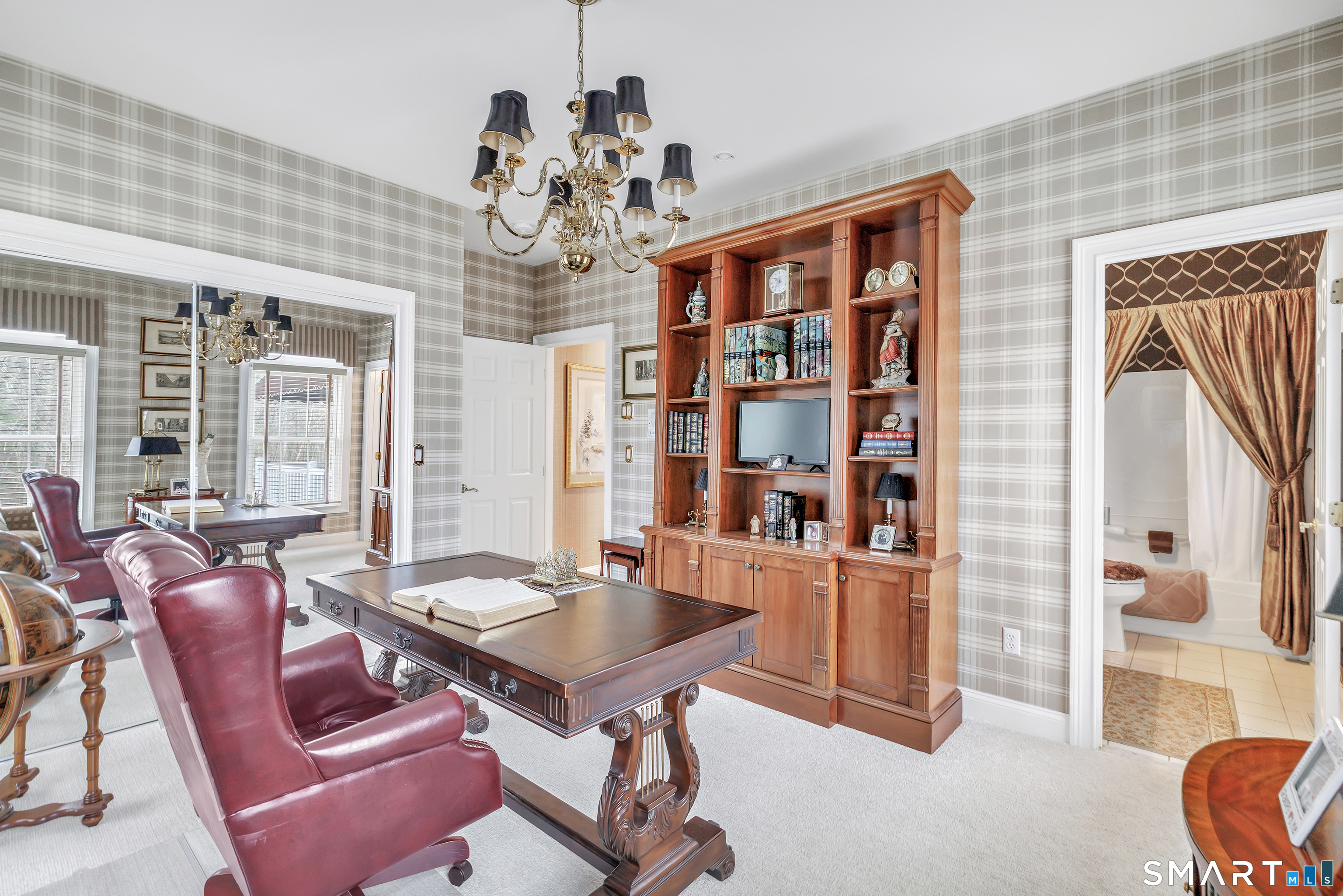 Brick center hall Colonial set on 1.13 acres in the Huntington section of Shelton, positioned off the road for added privacy. This 4-bedroom, 4.5-bath home offers 4,856 sq ft with a functional layout and generously sized rooms throughout. The main level includes a large kitchen with granite counters, stainless steel appliances, center island, and breakfast nook, opening to a spacious family room with cathedral ceilings and fireplace. Formal living and dining rooms provide additional gathering space. A main-level bedroom with full bath offers flexibility for guests or extended living. Upstairs, the primary suite features cathedral ceilings, multiple closets, a sitting area with wet bar, and a private bath with separate jacuzzi room. Three additional bedrooms complete the upper level. The lower level is partially finished with a full bath and adds an additional 1156 SQFT, including a possible in-law setup. Exterior features include a large rear deck overlooking a level, private yard, along with a 3-car garage and stone walls. Conveniently located near Huntington Center, golf, shopping, dining, and commuter routes.