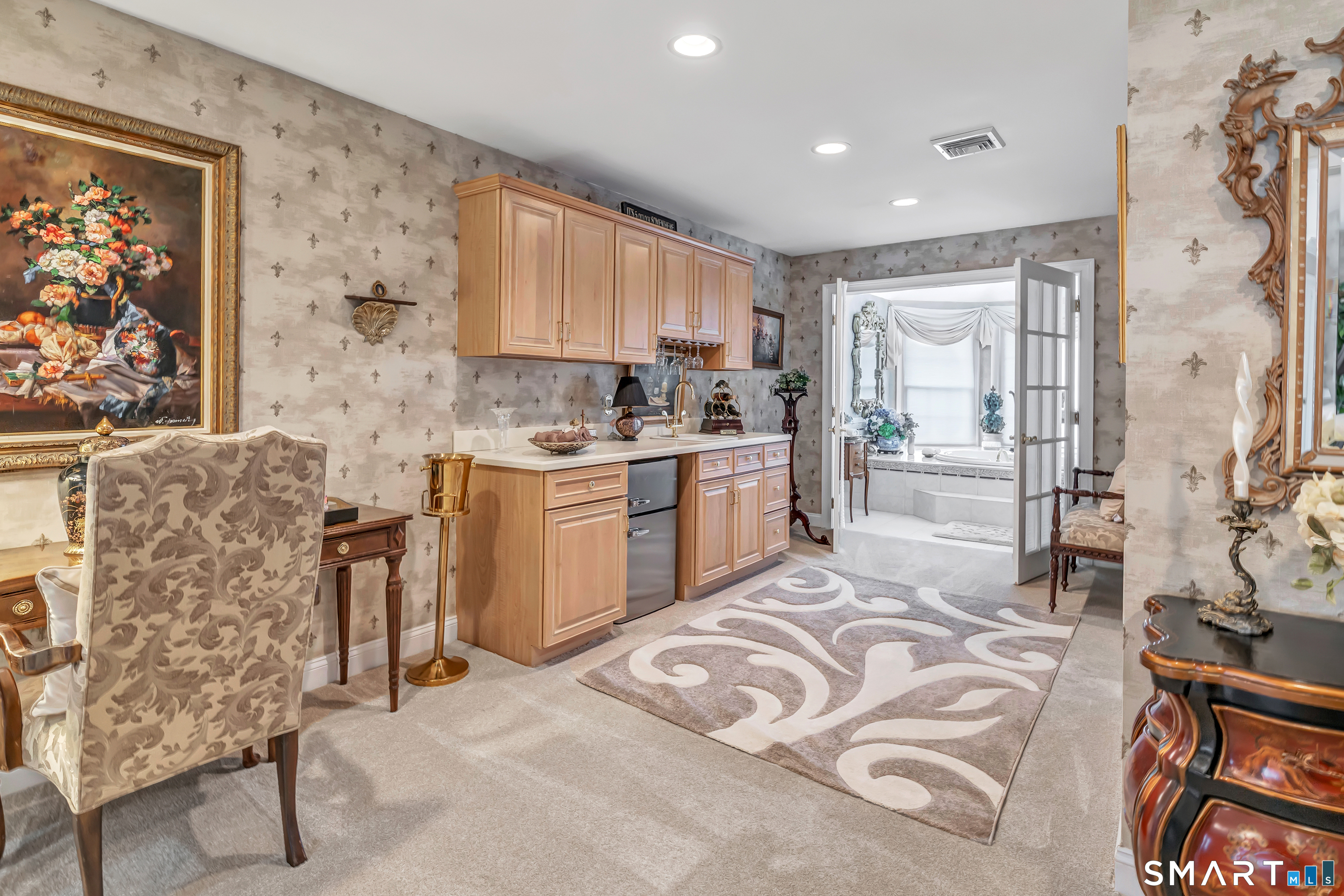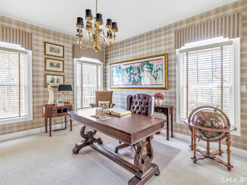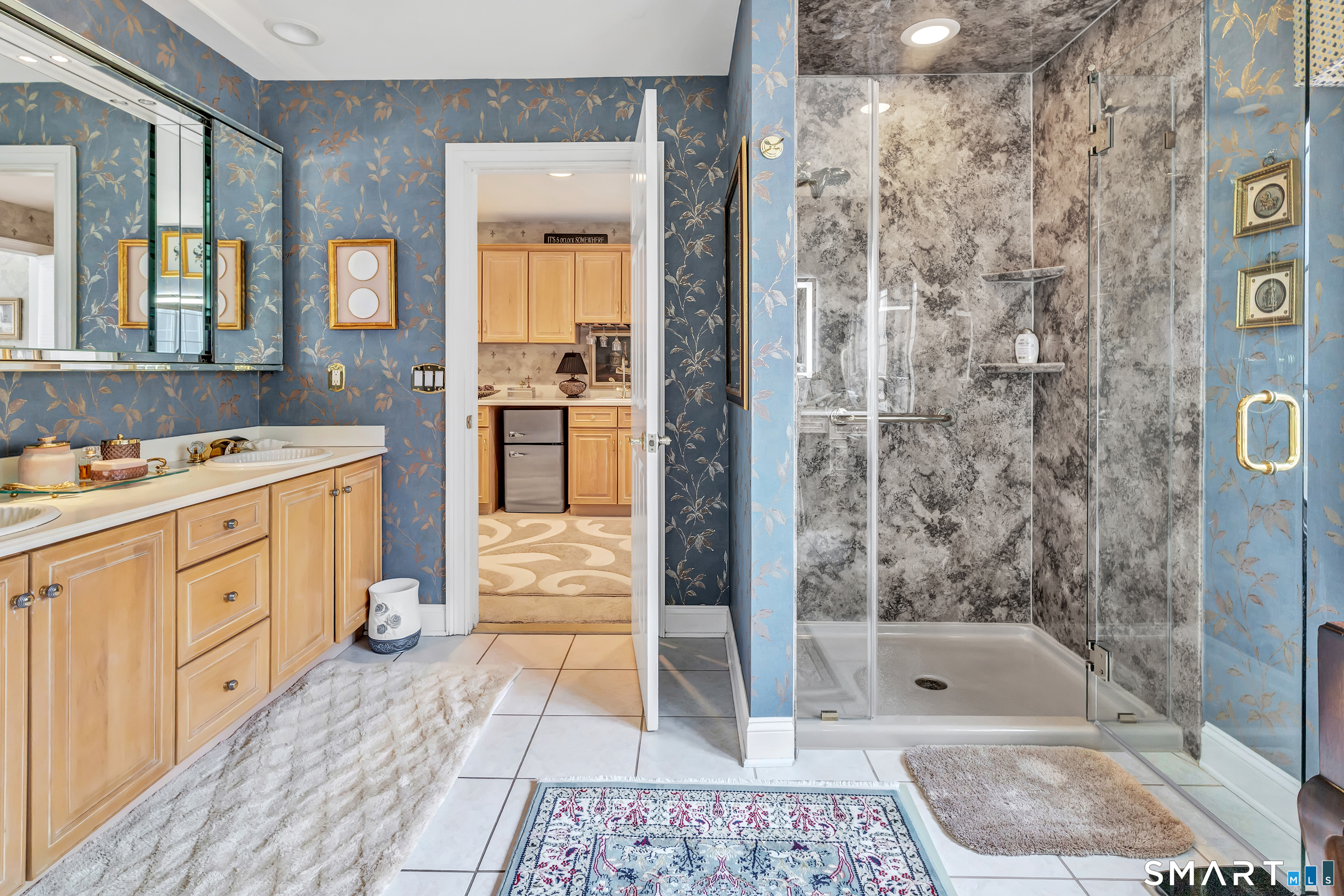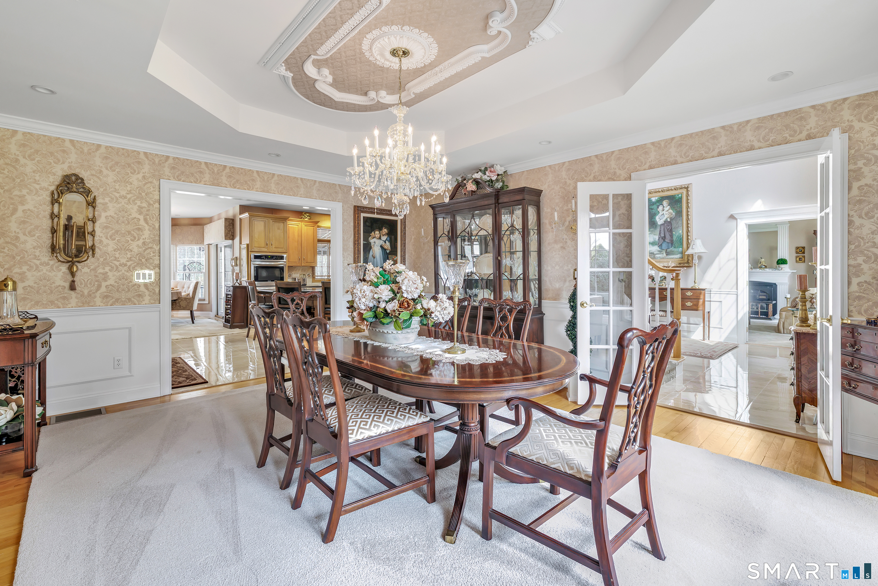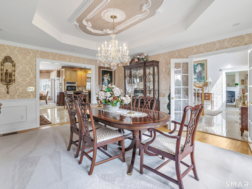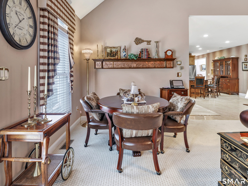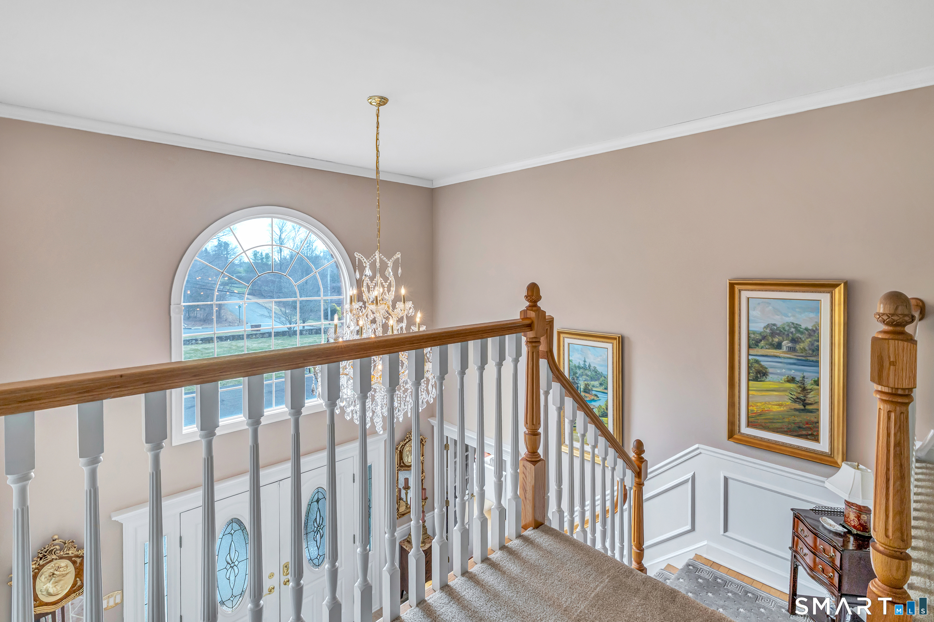 Brick center hall Colonial set on 1.13 acres in the Huntington section of Shelton, positioned off the road for added privacy. This 4-bedroom, 4.5-bath home offers 4,856 sq ft with a functional layout and generously sized rooms throughout. The main level includes a large kitchen with granite counters, stainless steel appliances, center island, and breakfast nook, opening to a spacious family room with cathedral ceilings and fireplace. Formal living and dining rooms provide additional gathering space. A main-level bedroom with full bath offers flexibility for guests or extended living. Upstairs, the primary suite features cathedral ceilings, multiple closets, a sitting area with wet bar, and a private bath with separate jacuzzi room. Three additional bedrooms complete the upper level. The lower level is partially finished with a full bath and adds an additional 1156 SQFT, including a possible in-law setup. Exterior features include a large rear deck overlooking a level, private yard, along with a 3-car garage and stone walls. Conveniently located near Huntington Center, golf, shopping, dining, and commuter routes.
