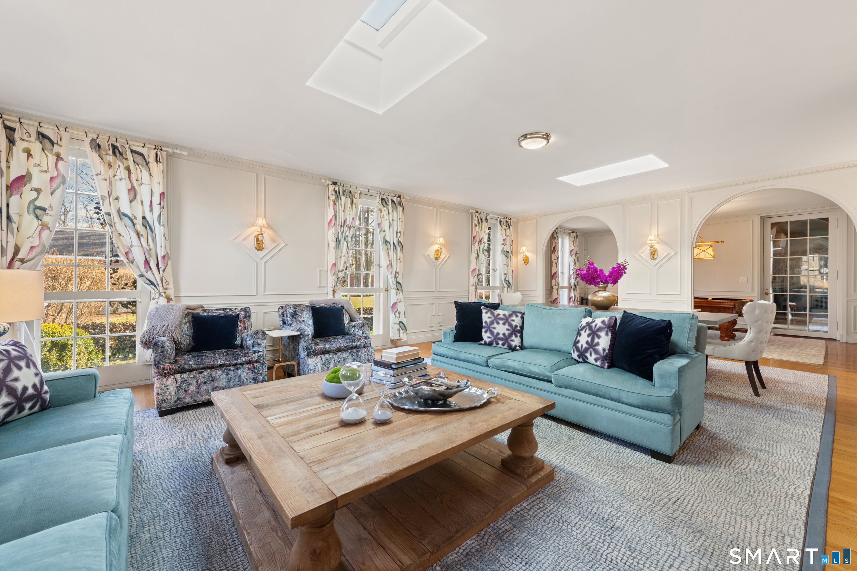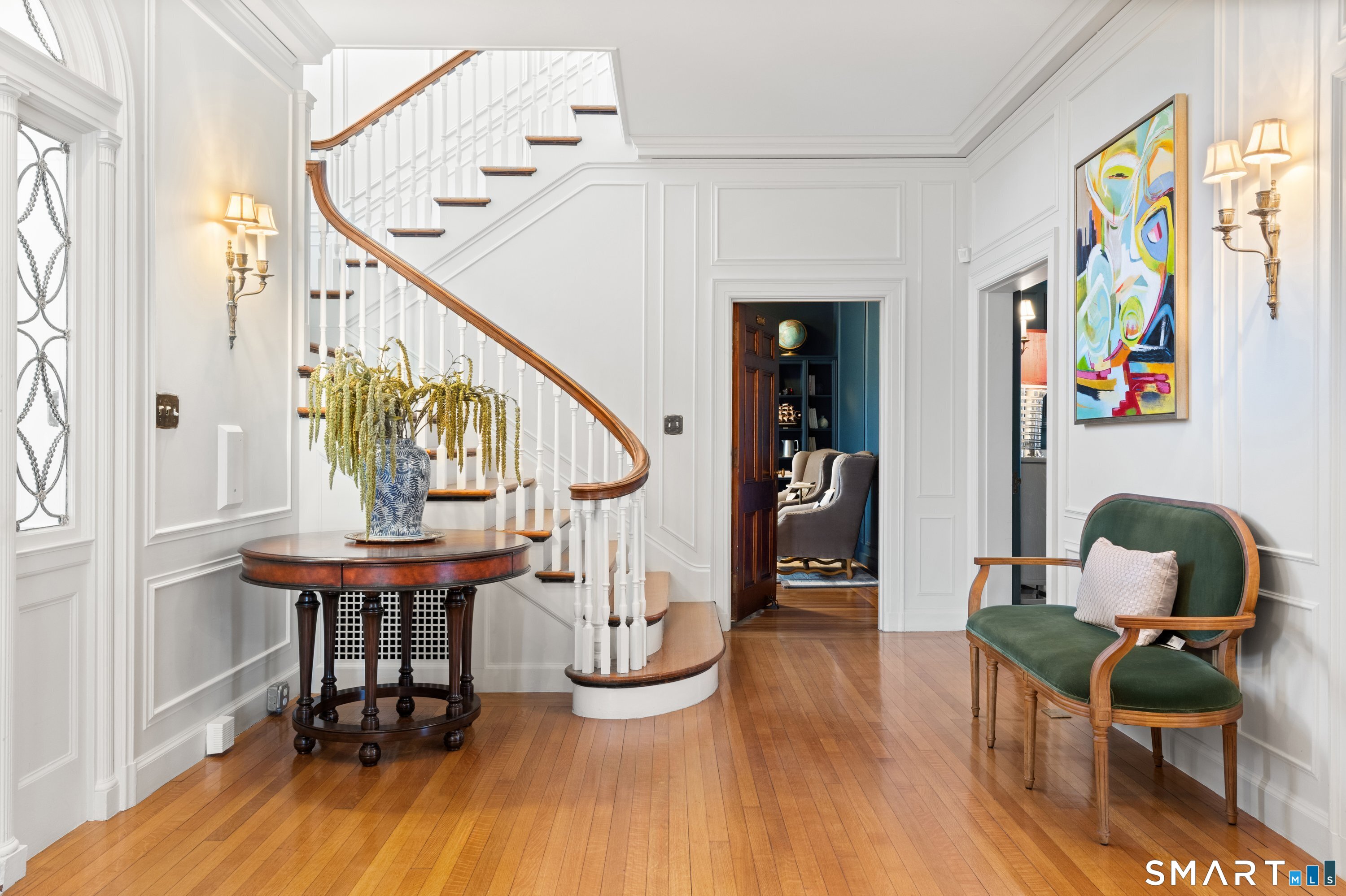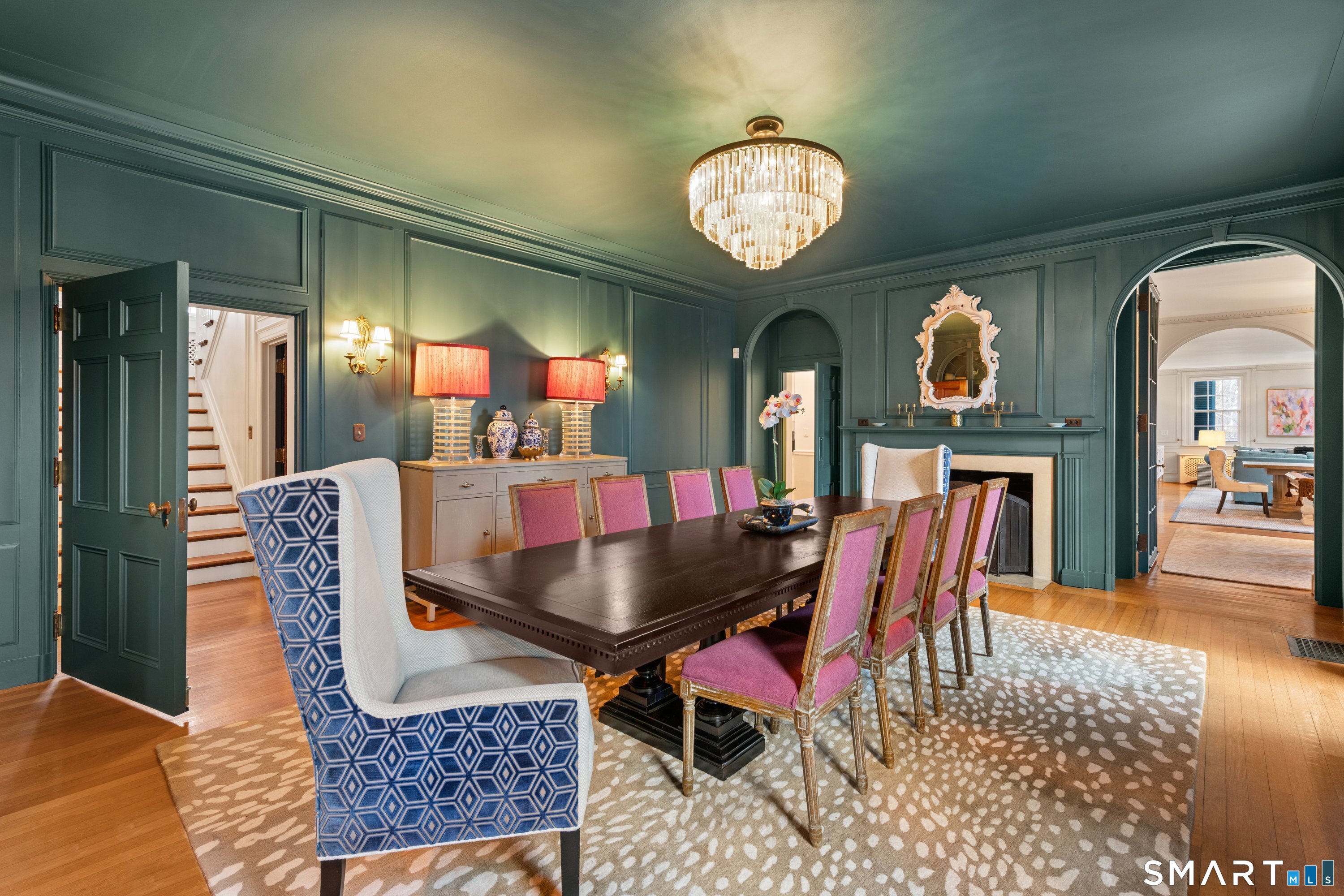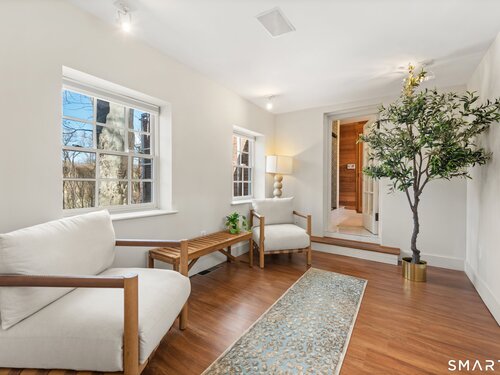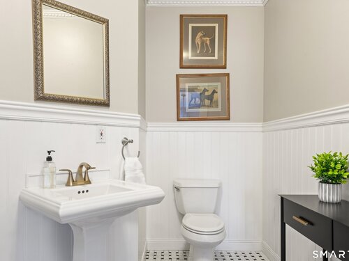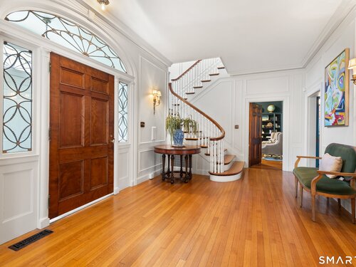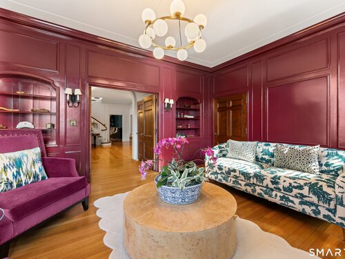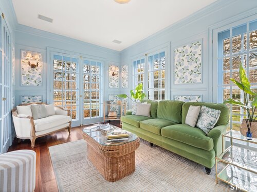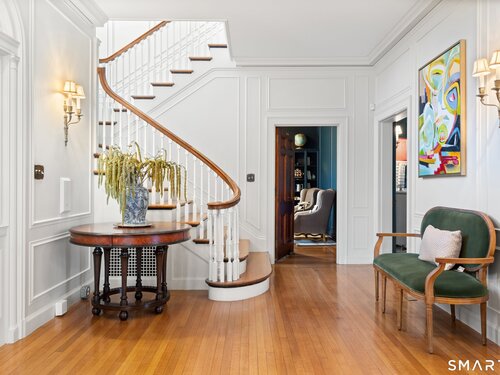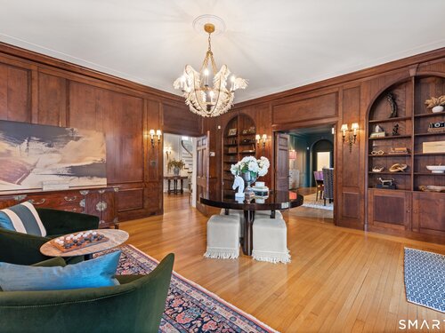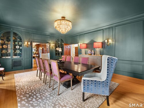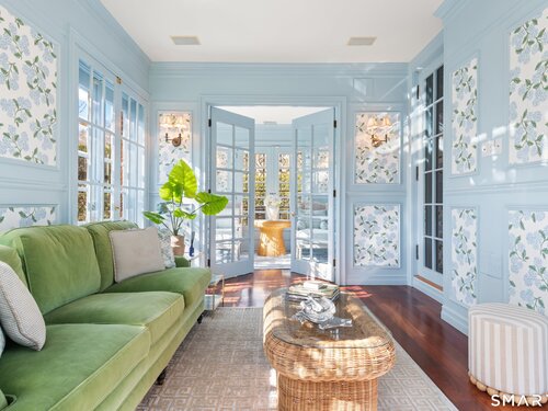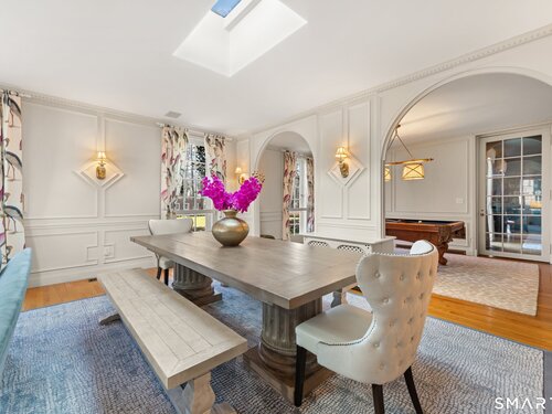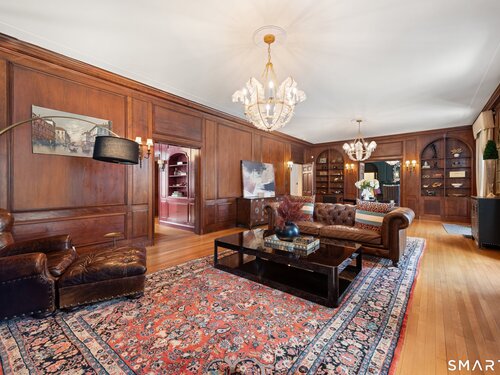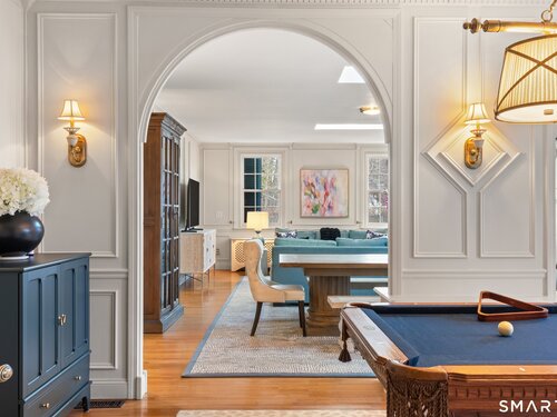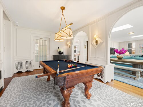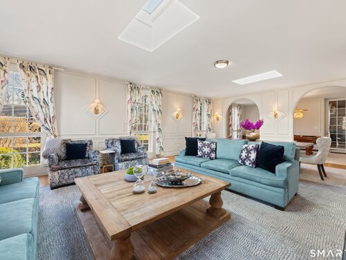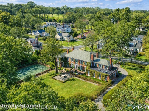 Iconic Georgian Manor. A rare offering of architectural significance, this distinguished 1922 Georgian Colonial is set on 1.88 acres of level, park-like grounds in a desirable Fairfield enclave. Encompassing over 10,000 square feet, this 6-bedroom estate seamlessly blends historic grandeur with elevated, modern living. A stately presence is immediately felt through classic Georgian symmetry, framed by elegant columns and enhanced by exquisite millwork, intricate moldings, and timeless architectural detailing throughout. Inside, a series of beautifully scaled rooms unfold, each more impressive than the next, including a refined library, private office, sun-drenched solarium, and multiple formal and informal living spaces anchored by seven fireplaces, creating warmth and character at every turn. At the heart of the home, a true chef's kitchen is designed for both everyday living and elevated entertaining, seamlessly connecting to expansive interior and exterior gathering spaces. The grounds are nothing short of resort-caliber, featuring an oversized pool, tennis court, and sweeping lawns that create a sense of total privacy and escape. A fully equipped guest house with gym and sauna offers exceptional flexibility, ideal for extended stays, a wellness retreat, or a private art or music studio. Offered fully furnished, the home is further elevated by beautifully curated furnishings that complement its architectural character and refined aesthetic, creating a seamless