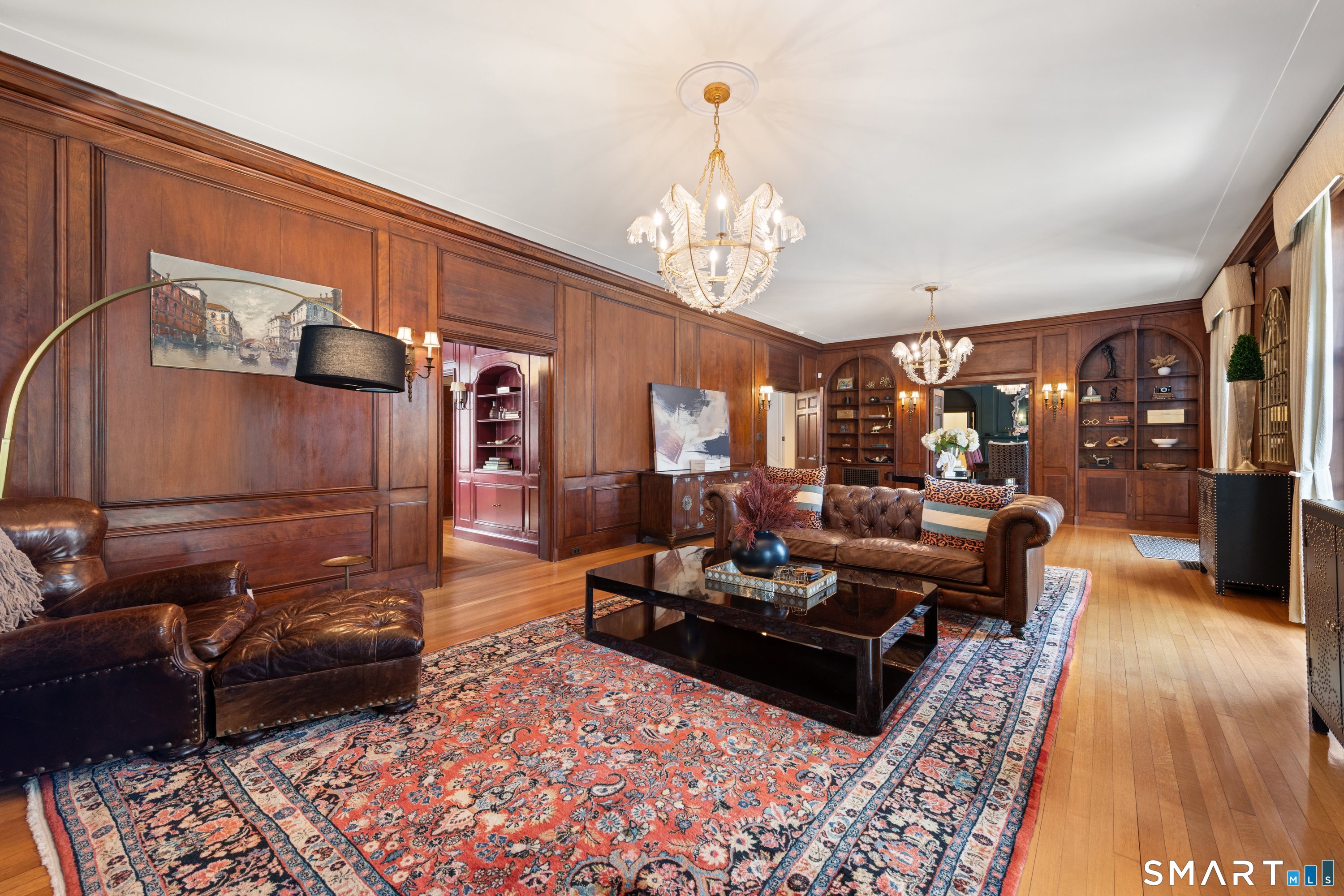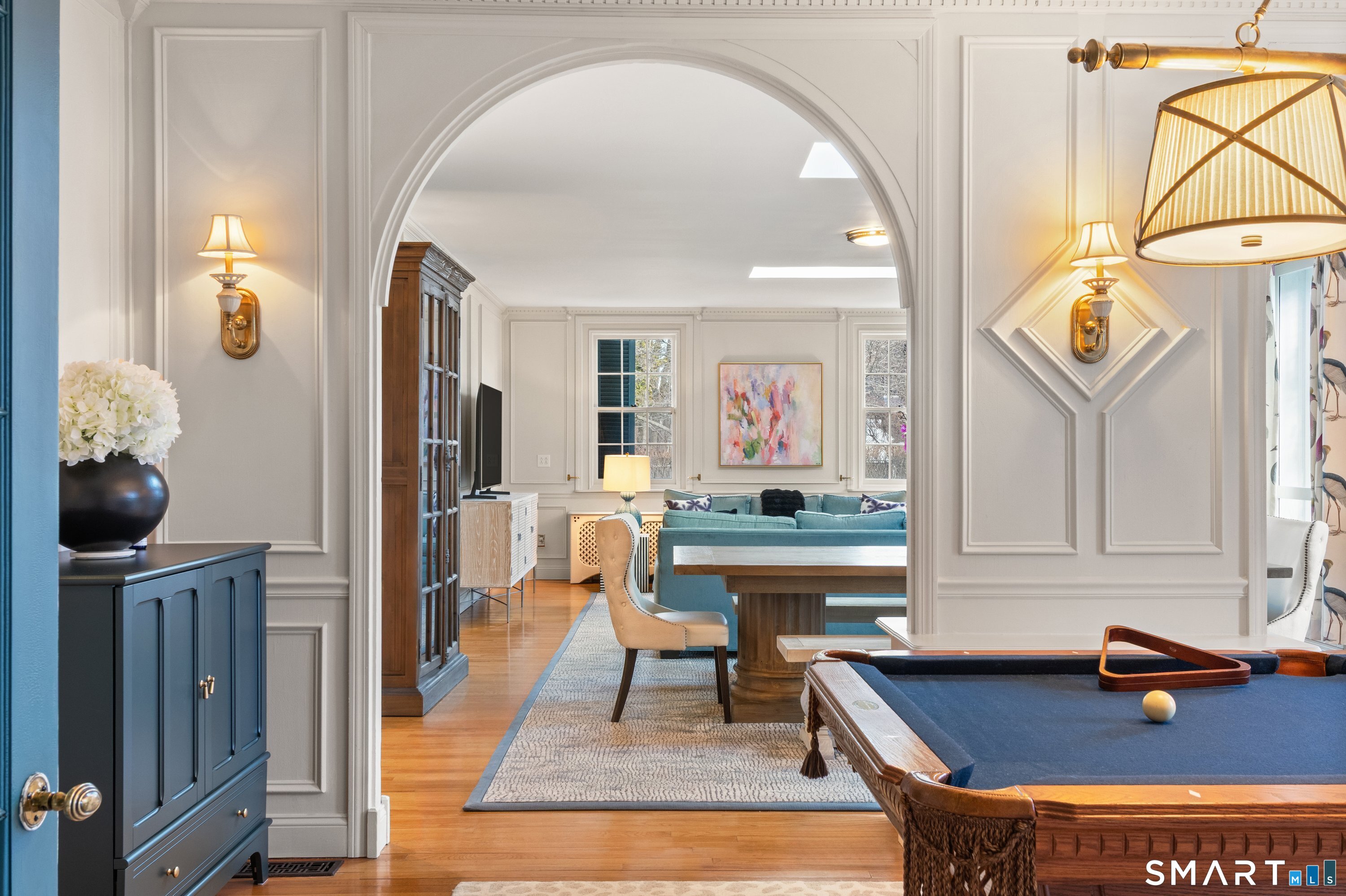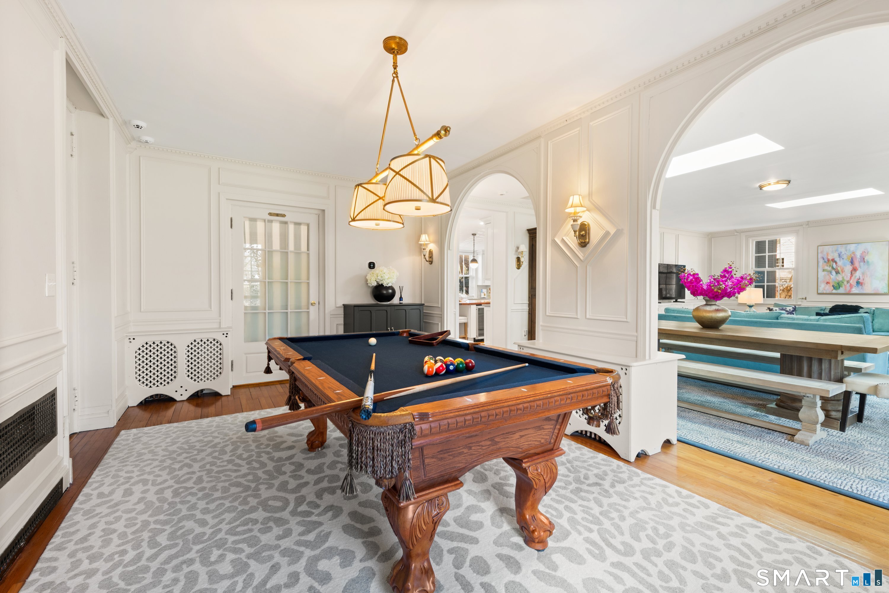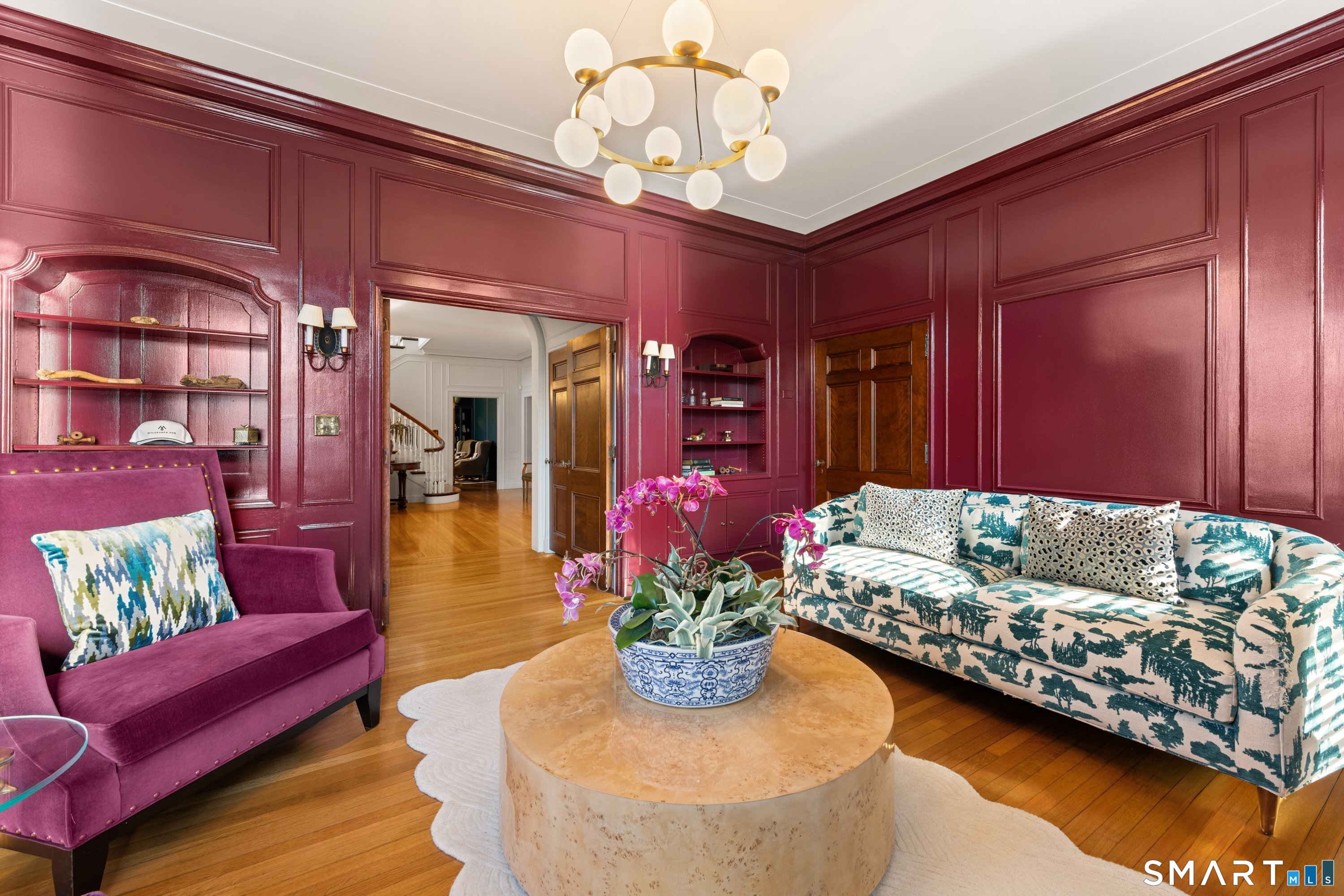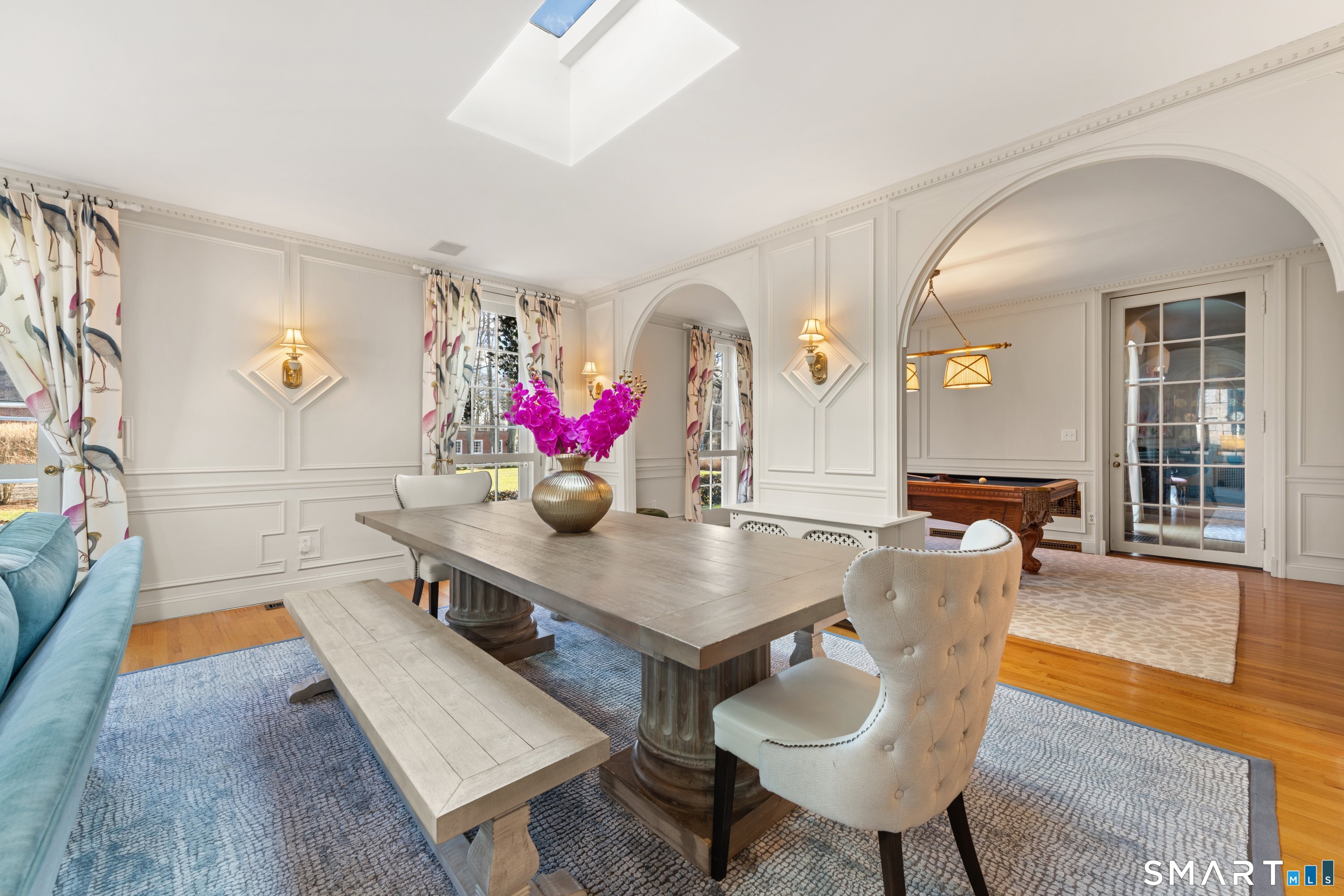 Iconic Georgian Manor. A rare offering of architectural significance, this distinguished 1922 Georgian Colonial is set on 1.88 acres of level, park-like grounds in a desirable Fairfield enclave. Encompassing over 10,000 square feet, this 6-bedroom estate seamlessly blends historic grandeur with elevated, modern living. A stately presence is immediately felt through classic Georgian symmetry, framed by elegant columns and enhanced by exquisite millwork, intricate moldings, and timeless architectural detailing throughout. Inside, a series of beautifully scaled rooms unfold, each more impressive than the next, including a refined library, private office, sun-drenched solarium, and multiple formal and informal living spaces anchored by seven fireplaces, creating warmth and character at every turn. At the heart of the home, a true chef's kitchen is designed for both everyday living and elevated entertaining, seamlessly connecting to expansive interior and exterior gathering spaces. The grounds are nothing short of resort-caliber, featuring an oversized pool, tennis court, and sweeping lawns that create a sense of total privacy and escape. A fully equipped guest house with gym and sauna offers exceptional flexibility, ideal for extended stays, a wellness retreat, or a private art or music studio. Offered fully furnished, the home is further elevated by beautifully curated furnishings that complement its architectural character and refined aesthetic, creating a seamless