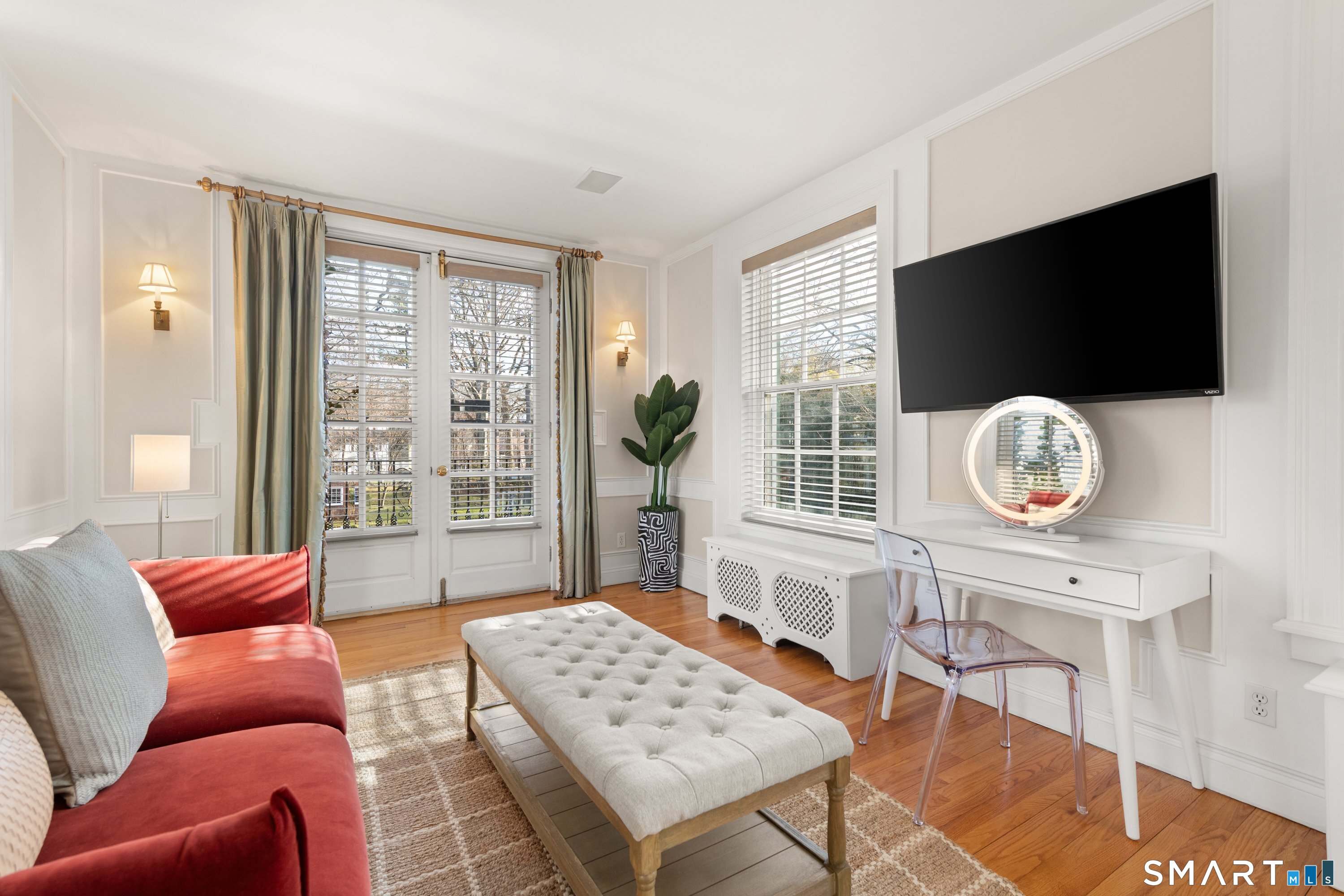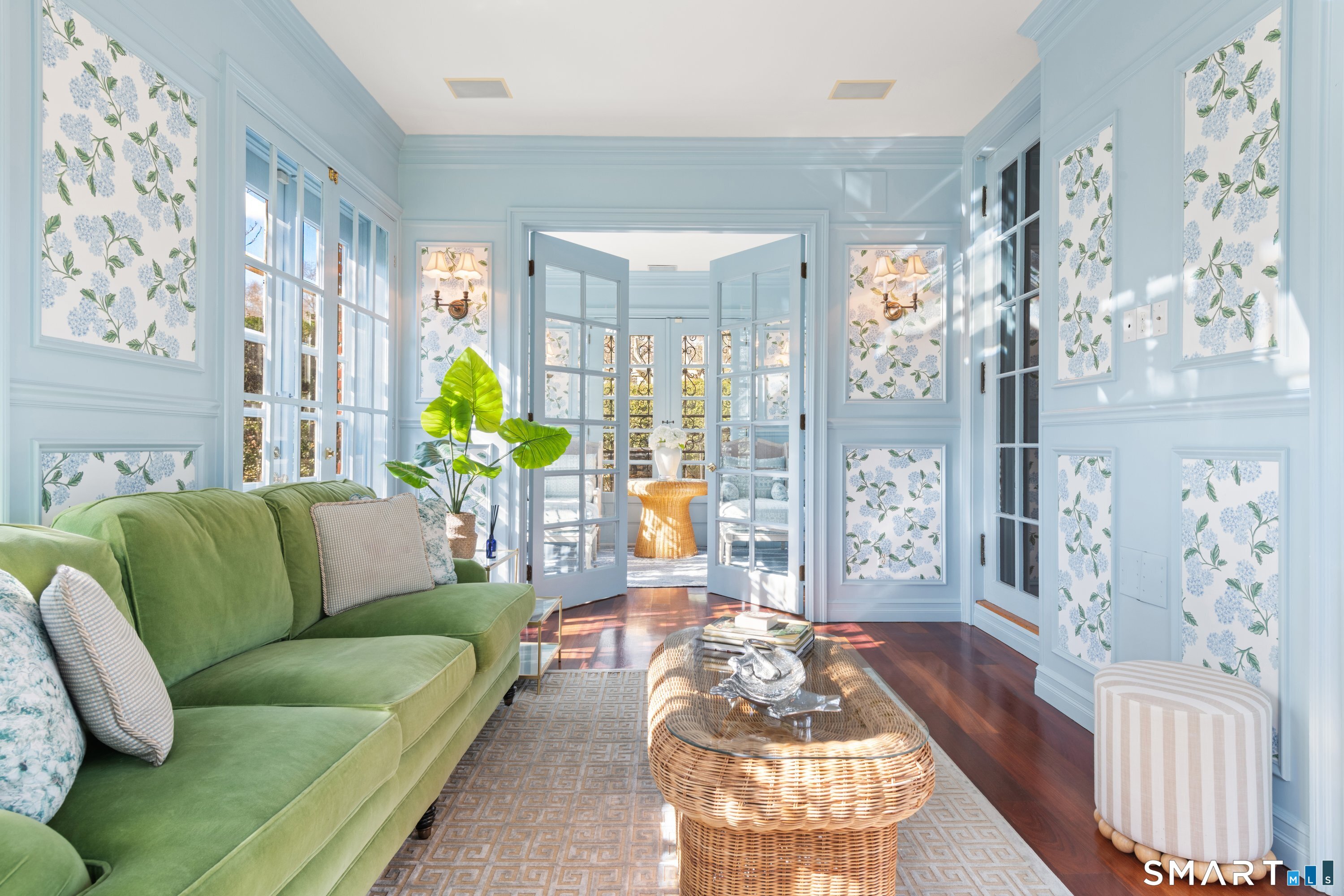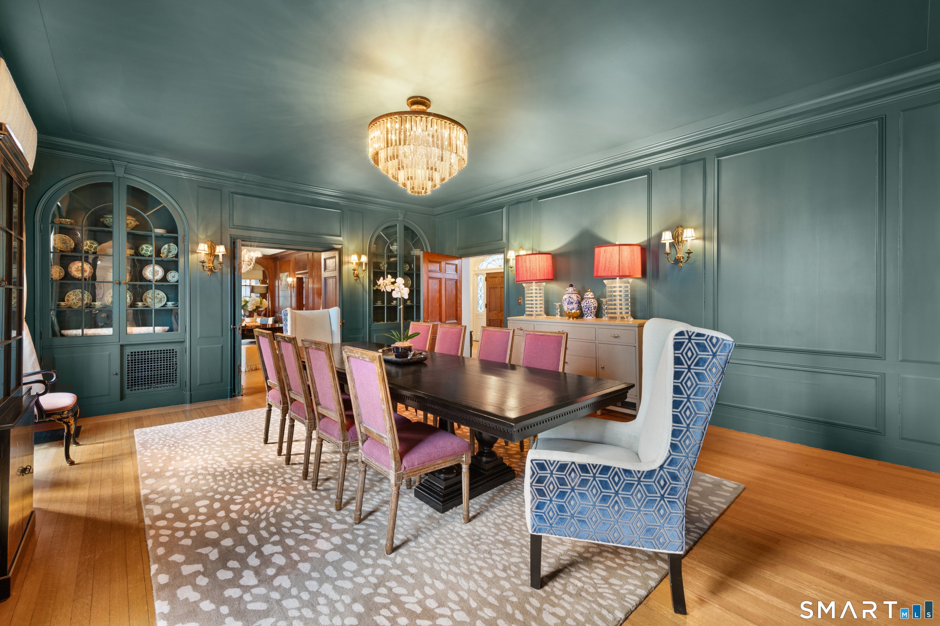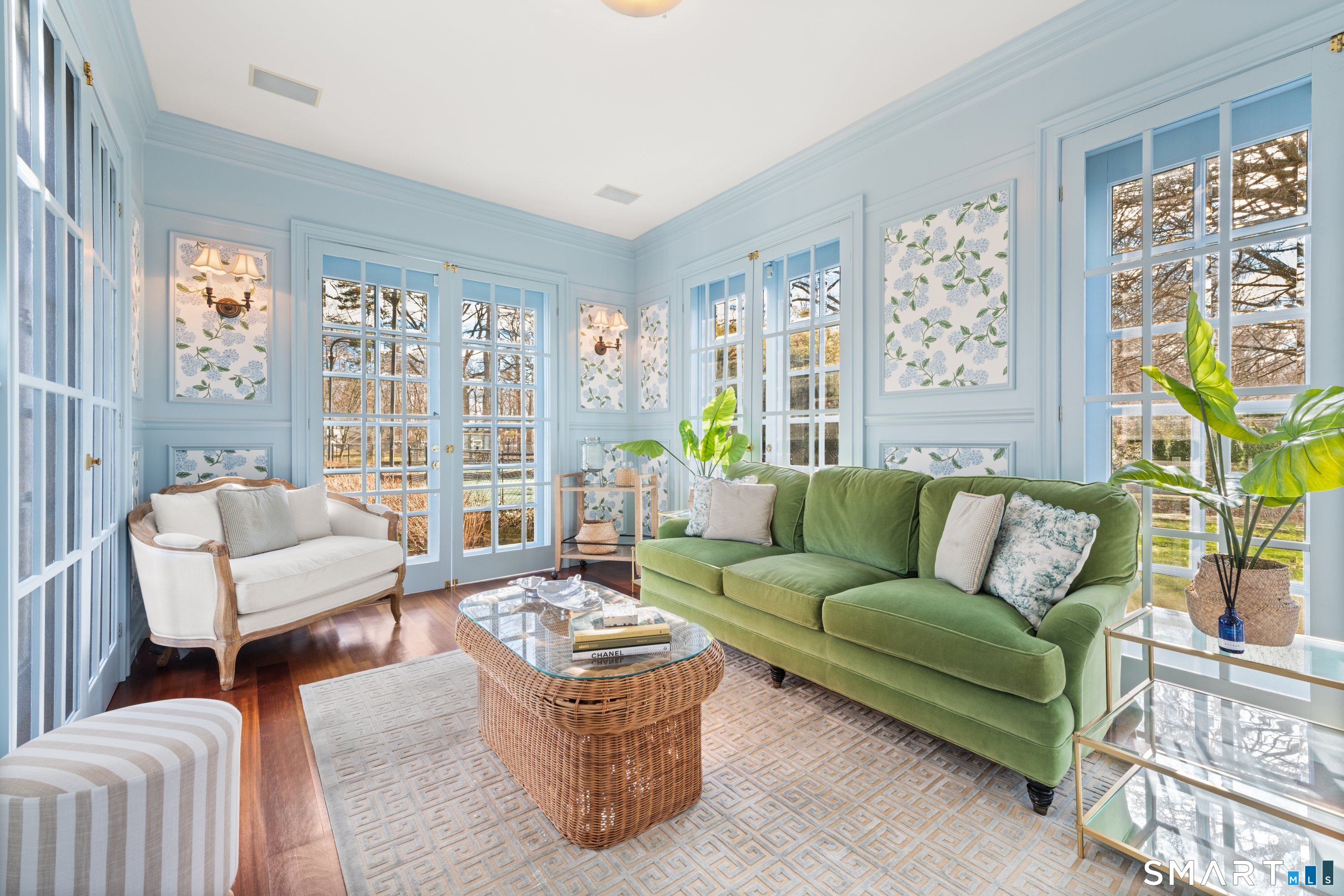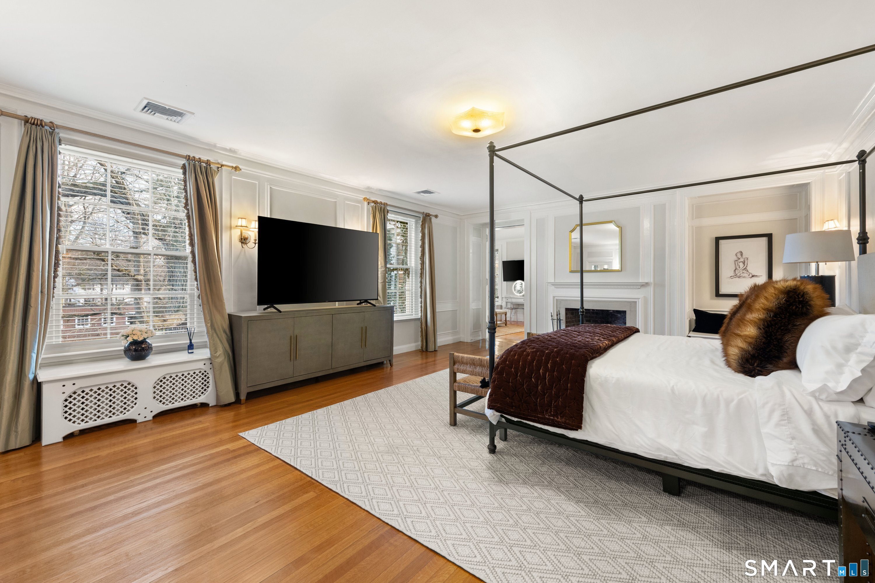 Iconic Georgian Manor. A rare offering of architectural significance, this distinguished 1922 Georgian Colonial is set on 1.88 acres of level, park-like grounds in a desirable Fairfield enclave. Encompassing over 10,000 square feet, this 6-bedroom estate seamlessly blends historic grandeur with elevated, modern living. A stately presence is immediately felt through classic Georgian symmetry, framed by elegant columns and enhanced by exquisite millwork, intricate moldings, and timeless architectural detailing throughout. Inside, a series of beautifully scaled rooms unfold, each more impressive than the next, including a refined library, private office, sun-drenched solarium, and multiple formal and informal living spaces anchored by seven fireplaces, creating warmth and character at every turn. At the heart of the home, a true chef's kitchen is designed for both everyday living and elevated entertaining, seamlessly connecting to expansive interior and exterior gathering spaces. The grounds are nothing short of resort-caliber, featuring an oversized pool, tennis court, and sweeping lawns that create a sense of total privacy and escape. A fully equipped guest house with gym and sauna offers exceptional flexibility, ideal for extended stays, a wellness retreat, or a private art or music studio. Offered fully furnished, the home is further elevated by beautifully curated furnishings that complement its architectural character and refined aesthetic, creating a seamless