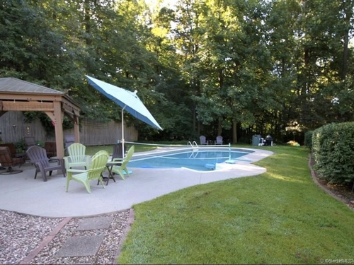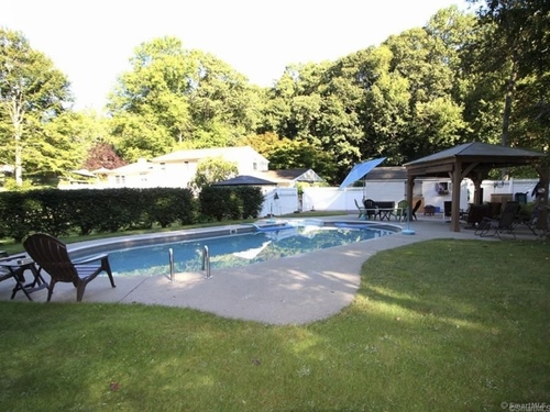 Please submit highest and best offer by Tuesday 11/11 at 5PM. Beautiful 4-Bedroom Home on a Quiet Corner Lot with In-Ground Pool and Gazebo. 91 Harvester Rd truly checks all the boxes! Nestled on a peaceful road, this commuter's dream sits on a spacious corner lot and features an inviting in-ground pool complete with a charming gazebo perfect for summer entertaining. Step inside to a bright and airy open floor plan accented by gleaming hardwood floors and an abundance of natural light. The living room offers a cozy gas fireplace, ideal for relaxing on chilly winter evenings.The kitchen features Stainless Steel appliances, Granite countertops and ample storage and sliders that open to an expansive deck overlooking the backyard- a perfect space for gatherings and outdoor dining. Upstairs, you'll find four comfortable bedrooms and two full bathrooms, including a recently renovated hall bath you won't want to miss. The finished lower level provides an abundance of additional living space great for a rec room, home gym, or media room. This level also includes a convenient half bath and laundry area, along with direct access to the garage, backyard, and driveway. With its thoughtful layout, modern updates, and beautiful outdoor amenities, this home offers the perfect blend of comfort, style, and functionality. Upgrades include:40 Gallon water heater 2018 Oil fired Boiler 2021 Cooktop replaced 2021 Added insulation to both attics and crawl space 2021 Hall Bath renovation 2021.