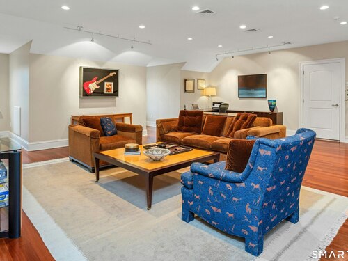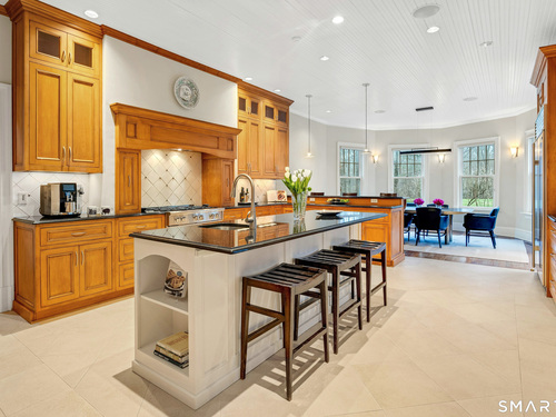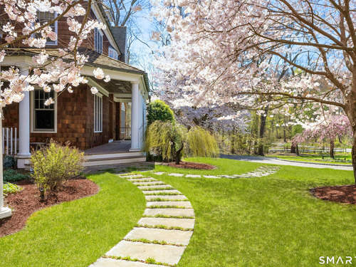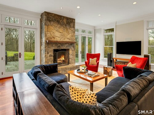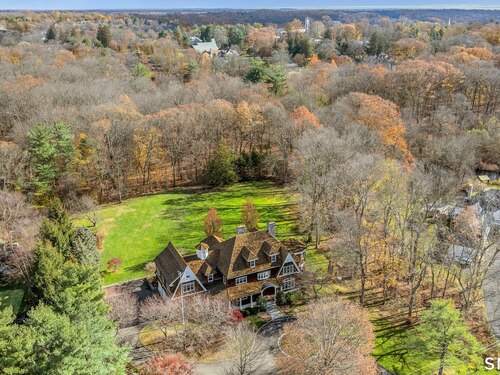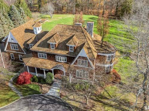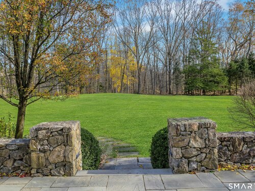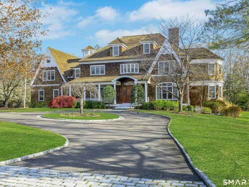 Welcome to 91 Sunset Hill Road--a rare opportunity to own a sophisticated Nantucket-style home set on more than two acres of park-like grounds in an exceptional location. The approach to the home is beautifully framed by flowering cherry trees, creating a picturesque entrance that opens to an expansive backyard bordering the New Canaan Nature Center preserve, offering privacy and tranquil surroundings. Thoughtfully designed, the home's architectural details convey a sense of quiet luxury throughout. This six-bedroom, 8,720-square-foot residence features arched doorways, 10 foot ceilings, exquisite craftsmanship and custom millwork, oversized windows, and hand-selected stone fireplaces. The home strikes a perfect balance between warmth and elegance, with inviting spaces enhanced by refined sophistication. Four finished floors offer abundant light-filled living areas, including a gracious living room and dining room, as well as a mahogany-paneled library with a coffered ceiling. The gourmet eat-in kitchen, along with the adjacent family room, opens through French doors to a bluestone terrace with an outdoor fireplace--seamlessly blending indoor and outdoor living. One of the home's highlights is a serene primary suite featuring a fireplace, sitting room, and dressing room. The third floor offers a great room or ideal home office/workspace with a half bath. The lower level welcomes you with an impressive 1,800-bottle wine room, rec/playroom, gym, craft or