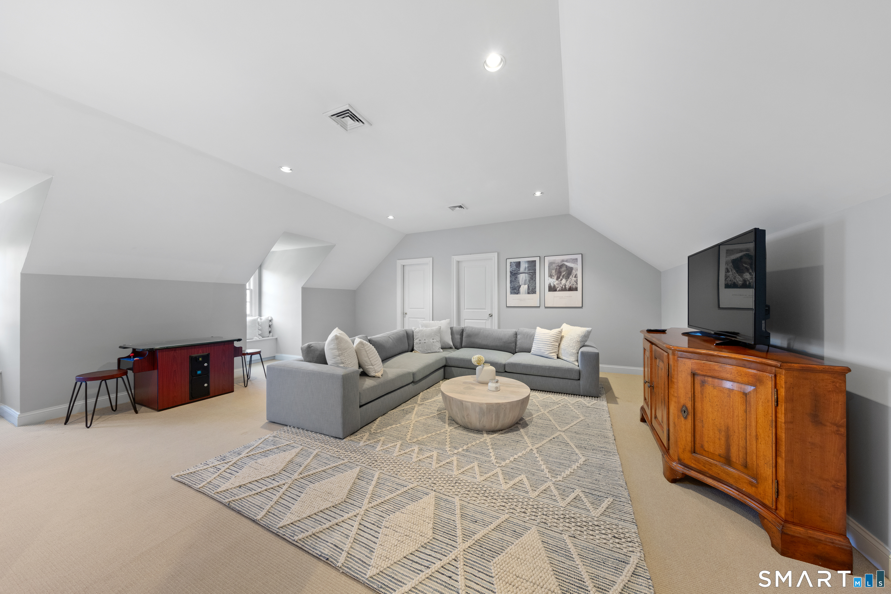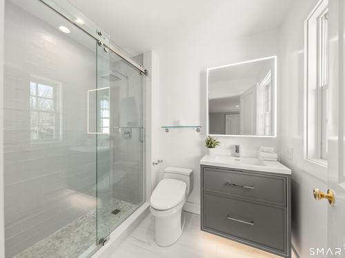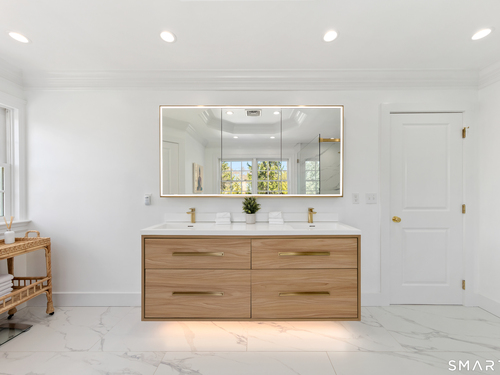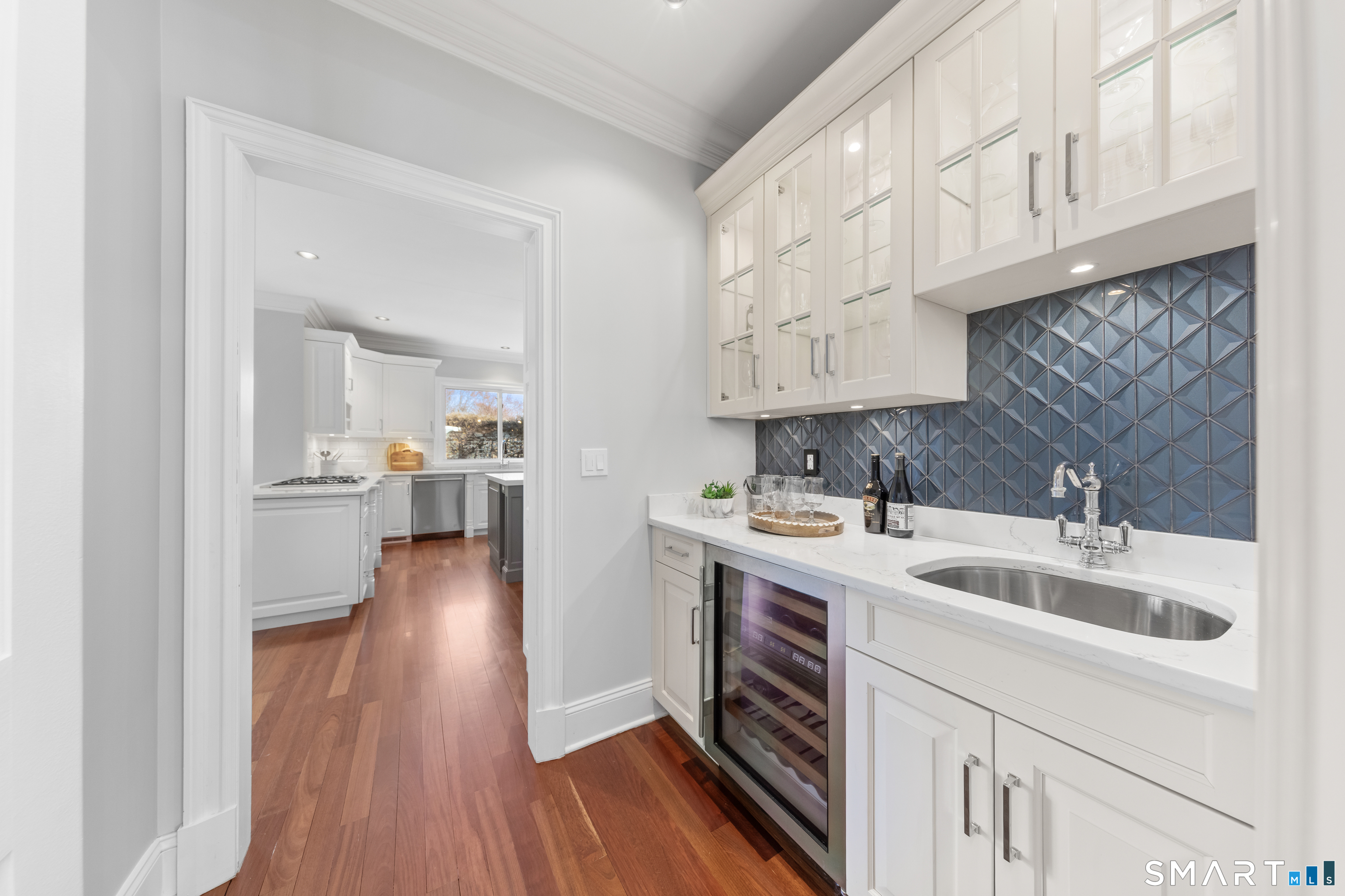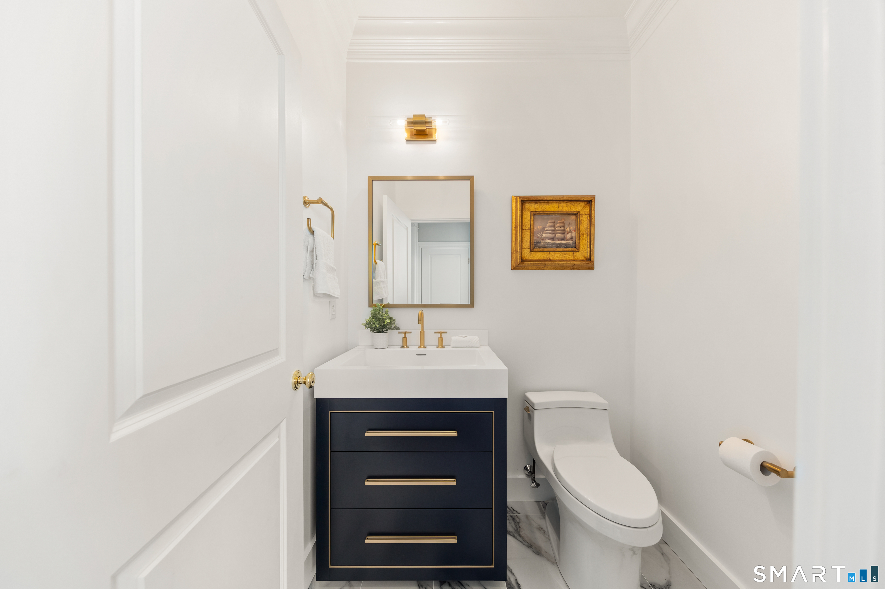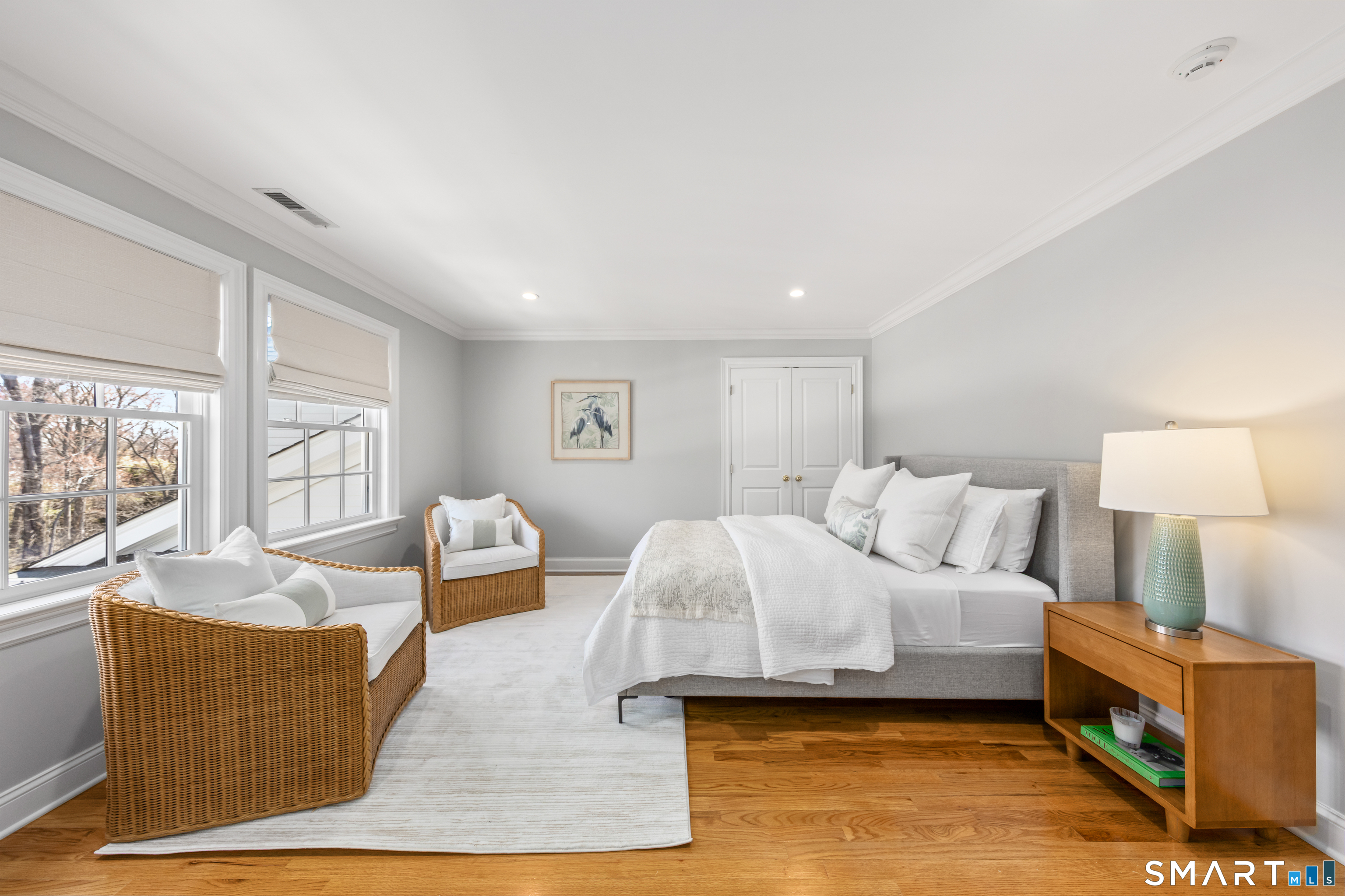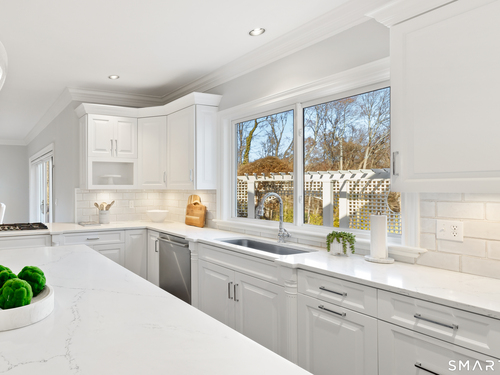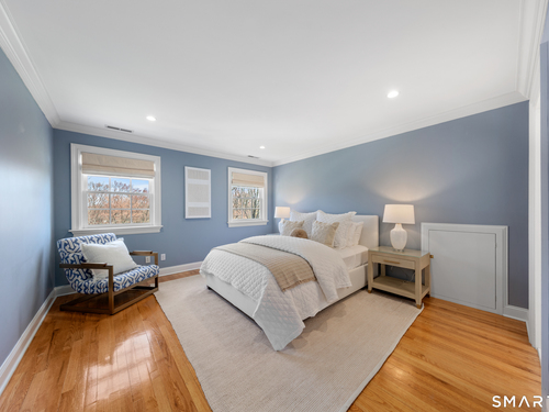 Beautifully sited in prestigious Greens Farms this timeless 5 BR, 6BA clapboard-and-stone Colonial offers stunning architecture & resort like privacy just moments from train, town & beaches. A gracious front porch & exquisite landscaping create an immediate sense of presence; classic, composed & quietly impressive. Inside, a soaring entry filled w/natural light introduces interiors defined by beautiful scale, 9-ft ceilings & gracious flow. Formal living room w/gas fireplace & dining room w/wet bar lend elegance to entertaining while a handsome office/den w/custom built-ins offers warmth & intimacy. The kitchen is refined & inviting w/quartz countertops, Sub-Zero appliances, walk-in pantry & breakfast/dining area opening to bluestone terrace. The expansive family room anchored by a substantial stone fireplace creates a natural gathering place & French doors open seamlessly to the outdoor living space. The main level also includes a secondary entry w/back staircase, laundry room, additional office & 2nd powder room. Upstairs the primary suite is a true retreat w/oversized walk-in closets, dressing area & spa-like marble bath. 4 additional generously proportioned bedrooms including two en-suite offer flexibility for family & guests. Finished 3rd fl ideal for playroom, gym, media room, 6th BR. Outside sprawling grounds, expansive bluestone terraces, exceptional masonry & stunning saltwater gunite pool & spa create a private oasis w/serene resort-like feel. Impeccably presented.