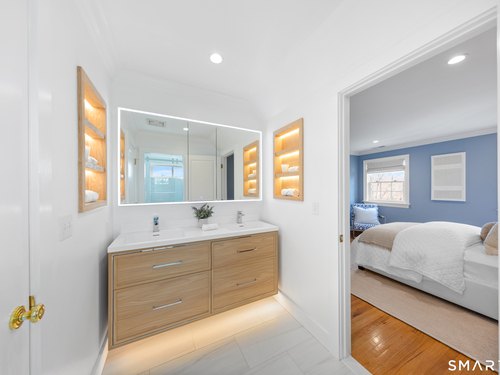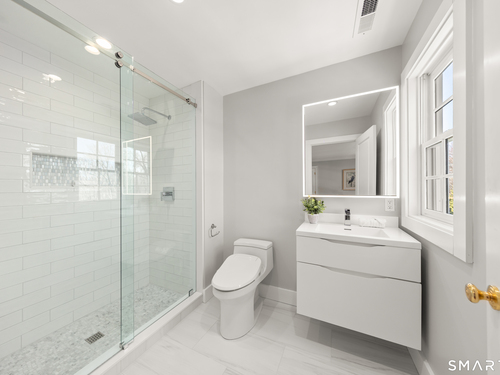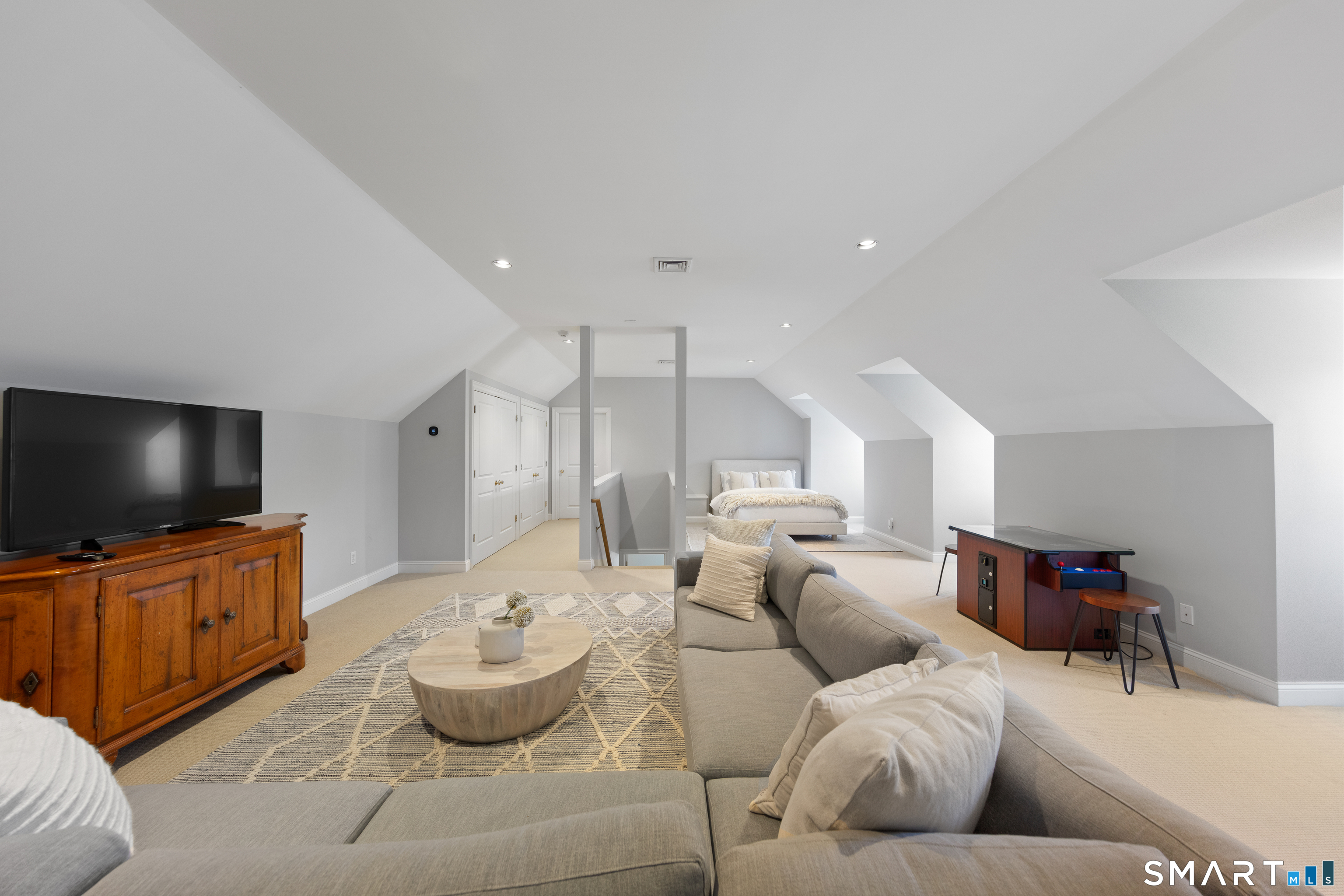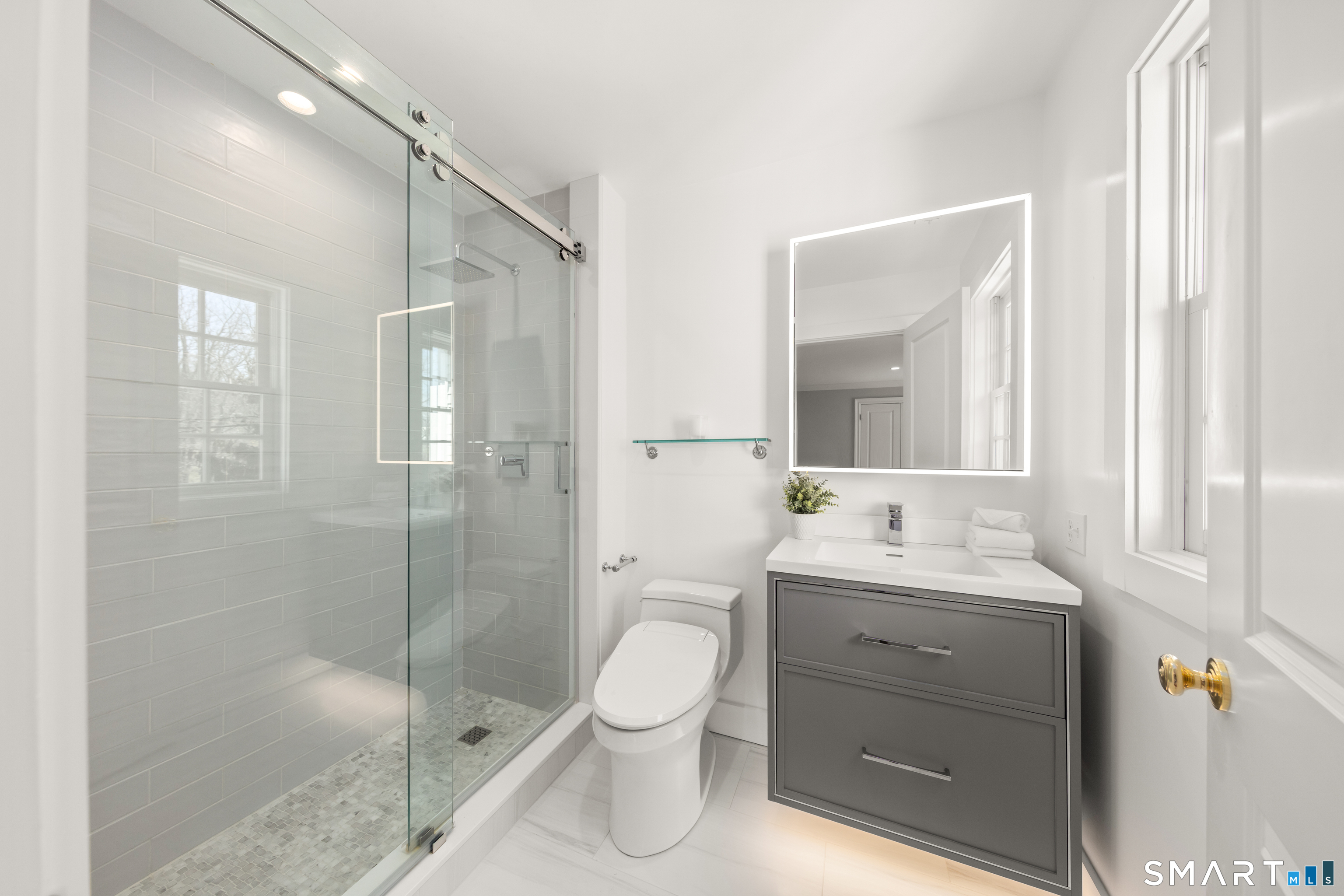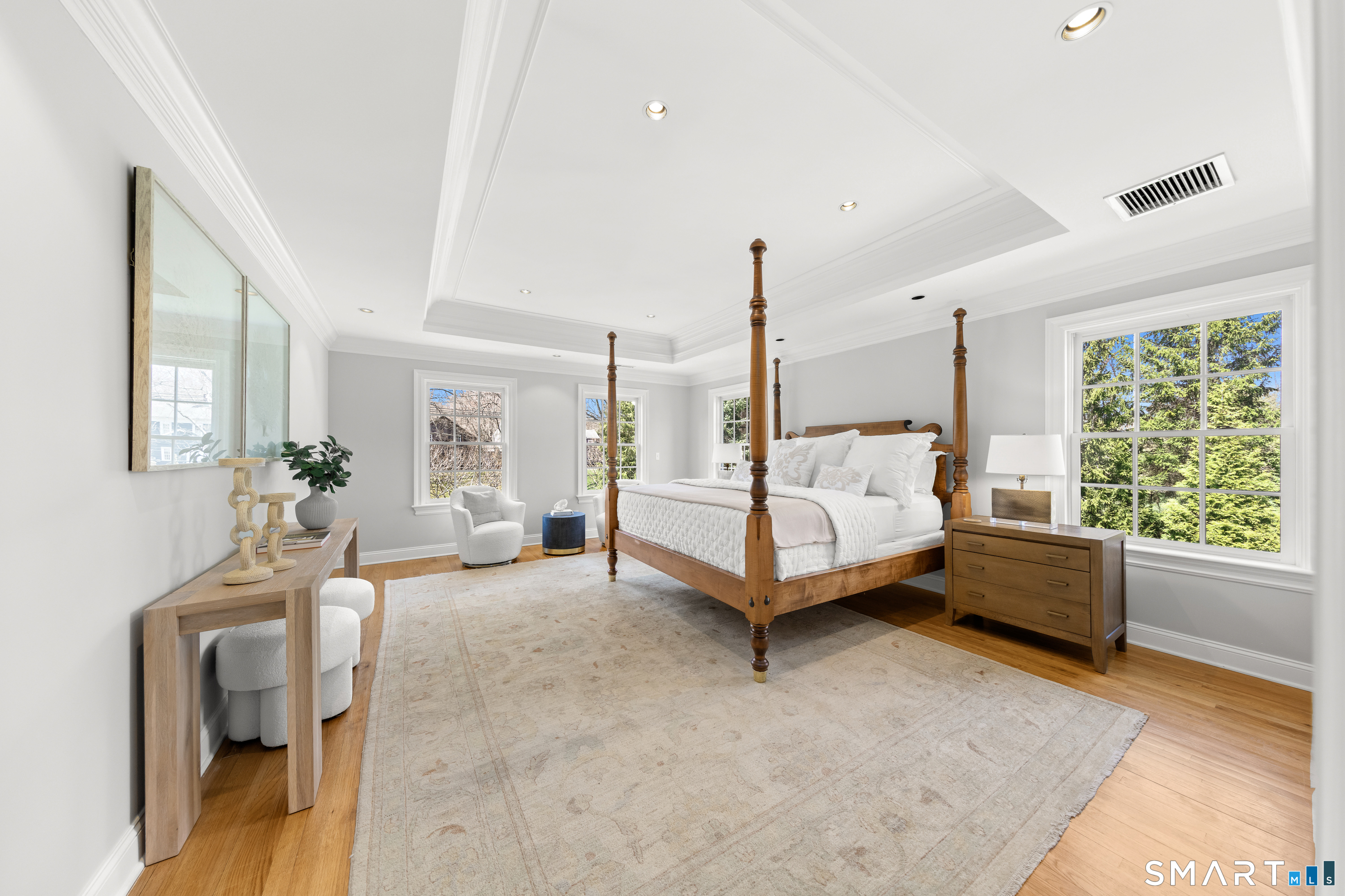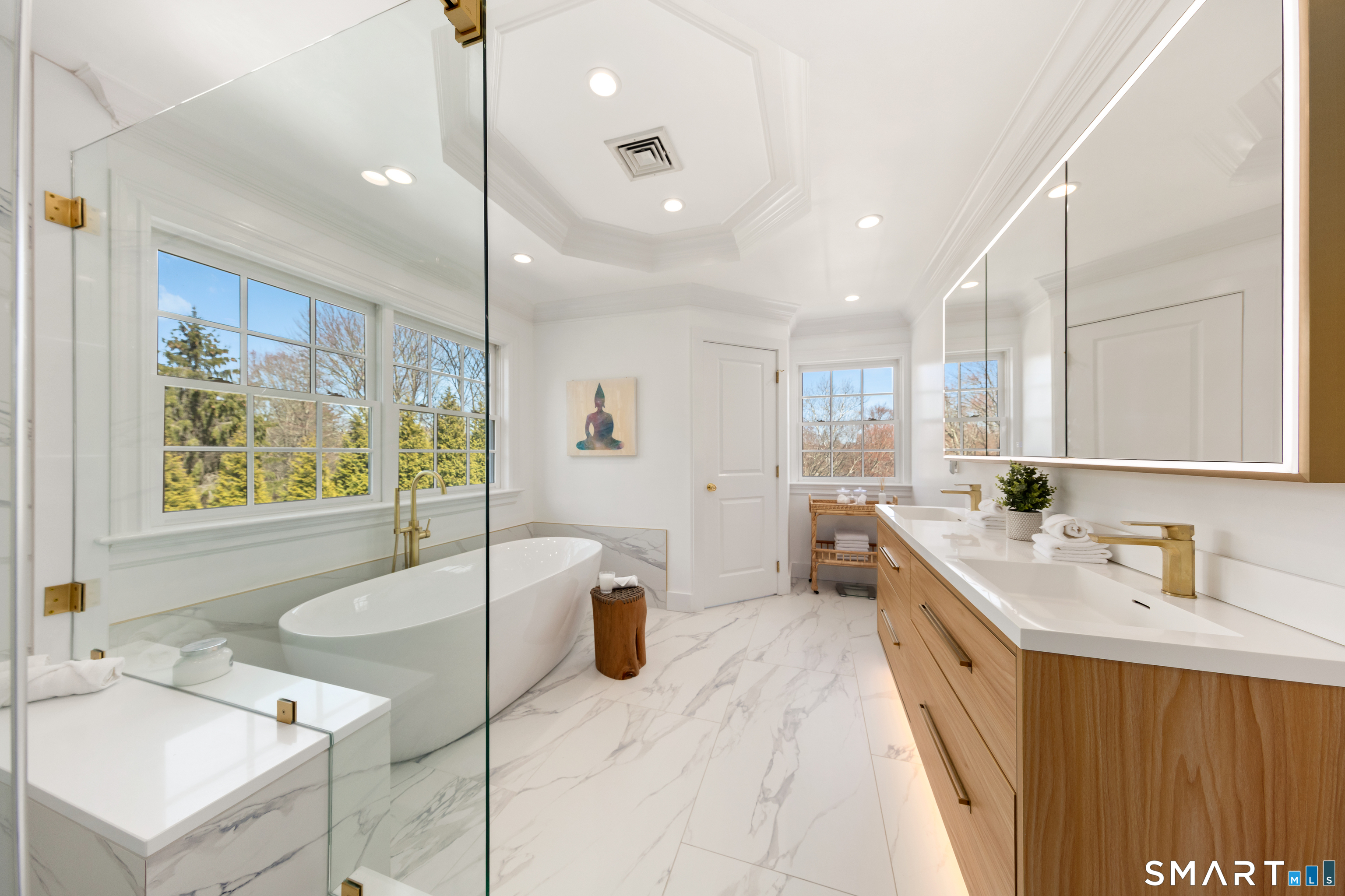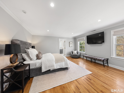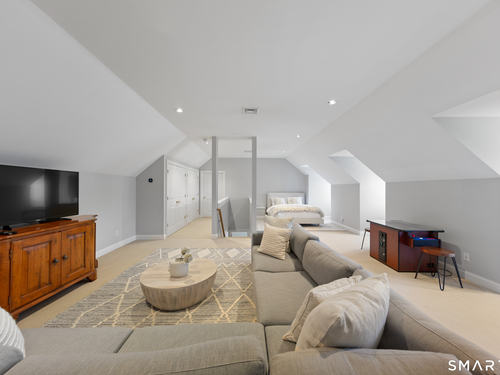 Beautifully sited in prestigious Greens Farms this timeless 5 BR, 6BA clapboard-and-stone Colonial offers stunning architecture & resort like privacy just moments from train, town & beaches. A gracious front porch & exquisite landscaping create an immediate sense of presence; classic, composed & quietly impressive. Inside, a soaring entry filled w/natural light introduces interiors defined by beautiful scale, 9-ft ceilings & gracious flow. Formal living room w/gas fireplace & dining room w/wet bar lend elegance to entertaining while a handsome office/den w/custom built-ins offers warmth & intimacy. The kitchen is refined & inviting w/quartz countertops, Sub-Zero appliances, walk-in pantry & breakfast/dining area opening to bluestone terrace. The expansive family room anchored by a substantial stone fireplace creates a natural gathering place & French doors open seamlessly to the outdoor living space. The main level also includes a secondary entry w/back staircase, laundry room, additional office & 2nd powder room. Upstairs the primary suite is a true retreat w/oversized walk-in closets, dressing area & spa-like marble bath. 4 additional generously proportioned bedrooms including two en-suite offer flexibility for family & guests. Finished 3rd fl ideal for playroom, gym, media room, 6th BR. Outside sprawling grounds, expansive bluestone terraces, exceptional masonry & stunning saltwater gunite pool & spa create a private oasis w/serene resort-like feel. Impeccably presented.