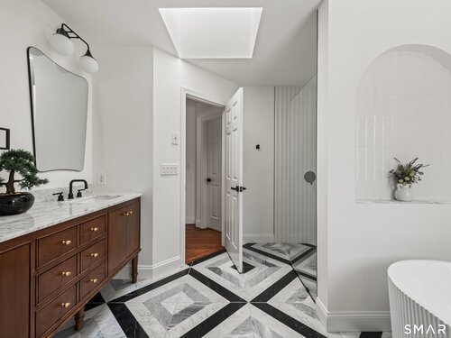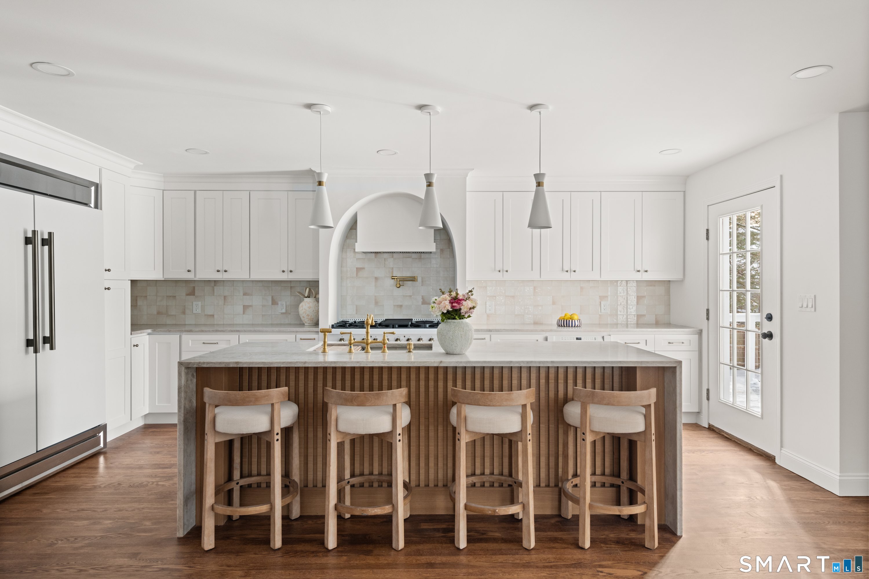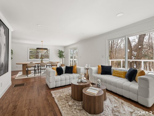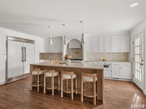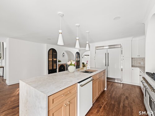 Experience the essence of harmony in this charming Colonial home, where timeless elegance meets the comfort, and sophistication This beautifully crafted residence featuring 4+ bedrooms and 2.2 bathrooms, located in the desirable neighborhood in Wilton. The main level open plan offers a bright and welcoming living room with a fireplace, overlooking an over sized deck. The elegant dining room features a built-in arch. Enjoy The magnificent chef's kitchen is outfitted with top of the line taj mahal countertop, New appliances, 48" gas stove, 60" Sub-Zero refrigerator, and a pantry along with a Custom coffee bar. Luxury woodwork in the family room completed with an attractive arch and a fabulous fireplace. The main floor bedroom used as an office with spectacular views, perfect for remote work or study. The second floor offers a primary bedroom suite which includes a walk-in closet, a remodeled modern primary bathroom with walk-in shower, floating tub, and a double sinks vanity. A full bath, 3 additional bedrooms with access to the unfinished above the garage bonus room. and laundry set-up.515 sq. ft. finished basement with a fireplace provides endless possibilities with a walk-out door and half bathroom. New construction: two car garage and mudroom, above the garage another 650sf unfinished bonus room ready to be finished. New driveway, walkway, Freshly painted inside and outside, new hardwood floors, New light fixture, Custom kitchen detailed and primary bedroom,
