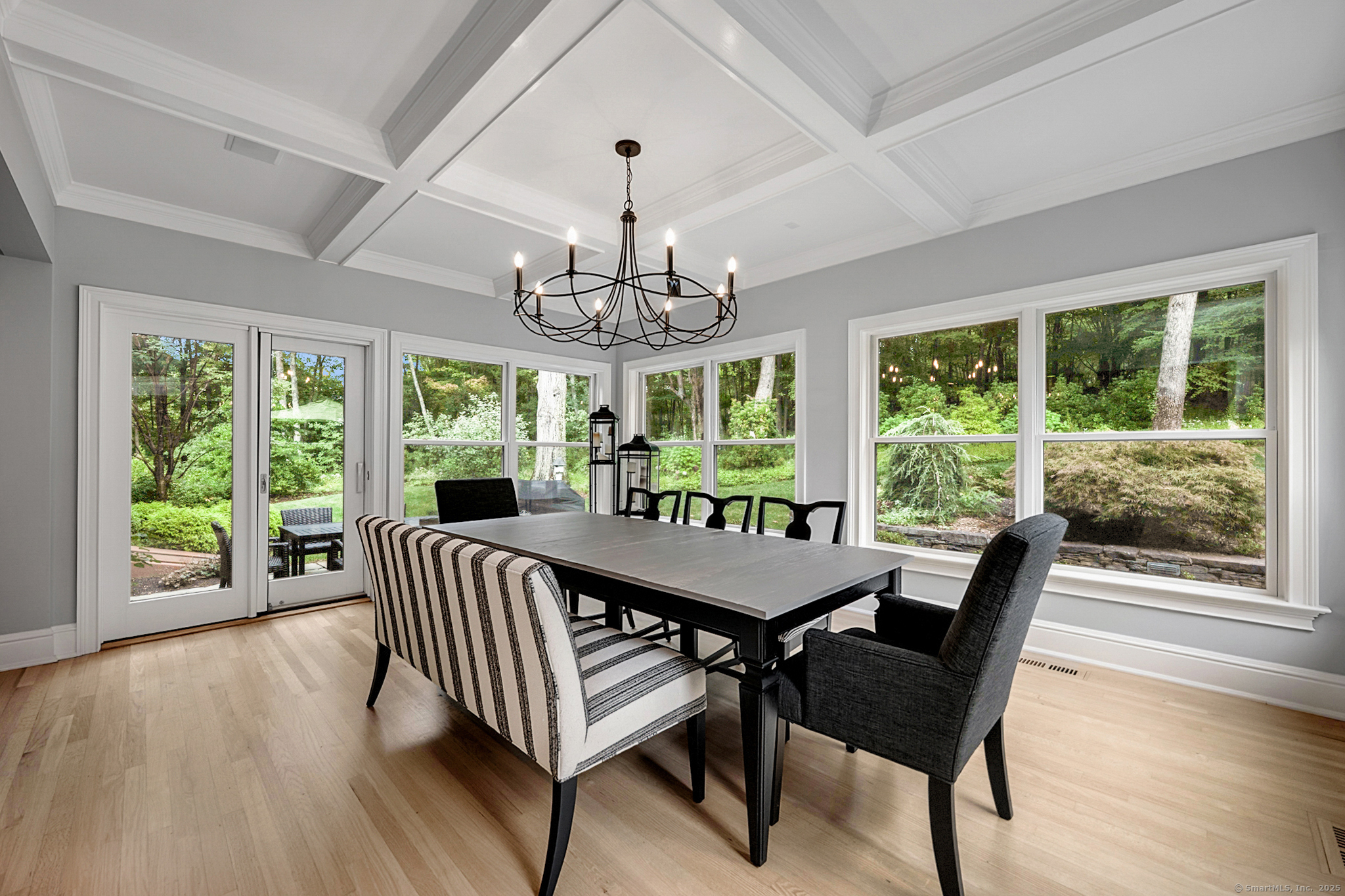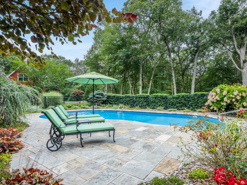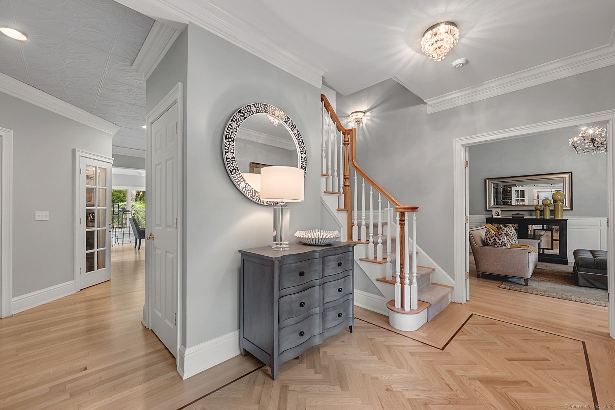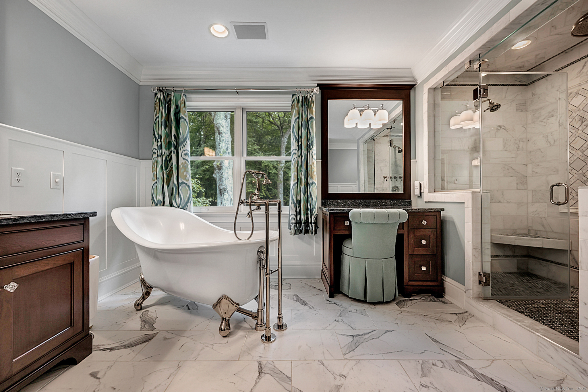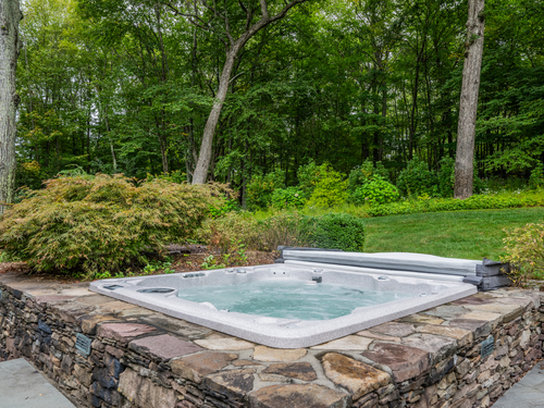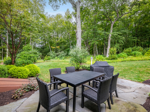 A one-of-a kind home home curated with the utmost of design and details, set on 4.78 acres of lush beauty and serenity. From the minute you enter the home, the luxurious finishes and wonderful layout is noticed. Whether day-to-day living, or gatherings of any size, this home and property is well suited. The Formal rooms have incredible finishes from a vaulted turret ceiling, to gorgeous light fixtures and designer window treatments. Even the custom wet bar is exceptional. The beautiful Kitchen is complete with stainless steel appliances, granite counters & marble backsplash, and a unique painted metal ceiling detail. Adjacent is the casual dining area with coffered ceiling and 3 walls of windows overlooking the impeccable grounds. The Family Room has a wood burning fireplace with sliders to the rear stone patio. A first floor bedroom is ideal for guests or a private home office. On the upper level are 3 more well appointed Bedrooms. The Primary suite has a spa-like bathroom, huge walk-in-closet and turret ceiling sitting area. A wonderful place to begin and end your day. The exterior is just as amazing as the inside....a heated in-ground salt-water pool, an 8 person hot tub, multiple stone patios, a custom waterfall feature and a firepit area with stone walls and detailed lighting. The landscaping has been thoughtfully designed with specimen trees and shrubs, a separate garden area, and a variety of perennials throughout.
