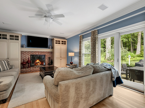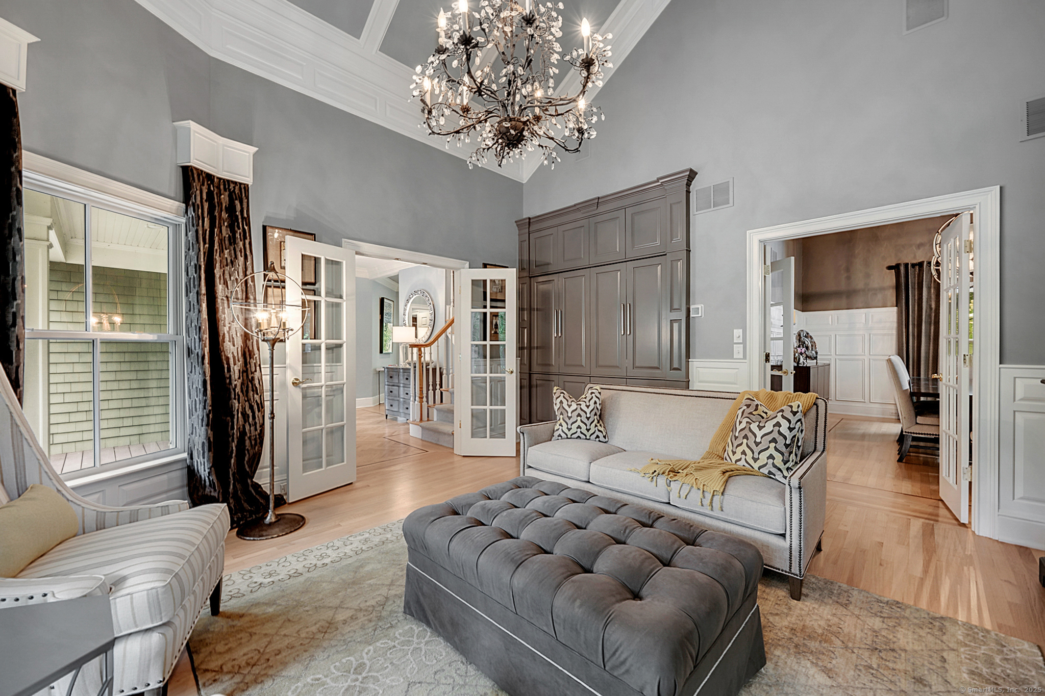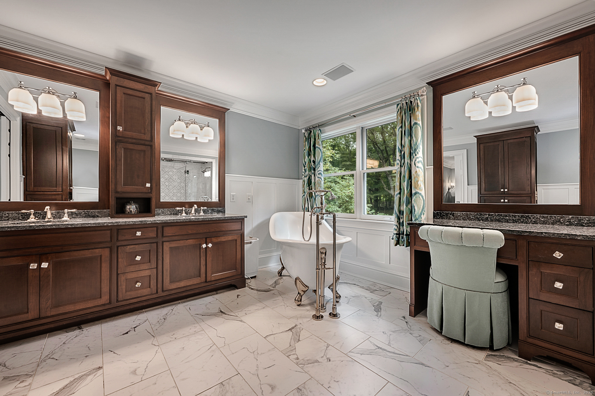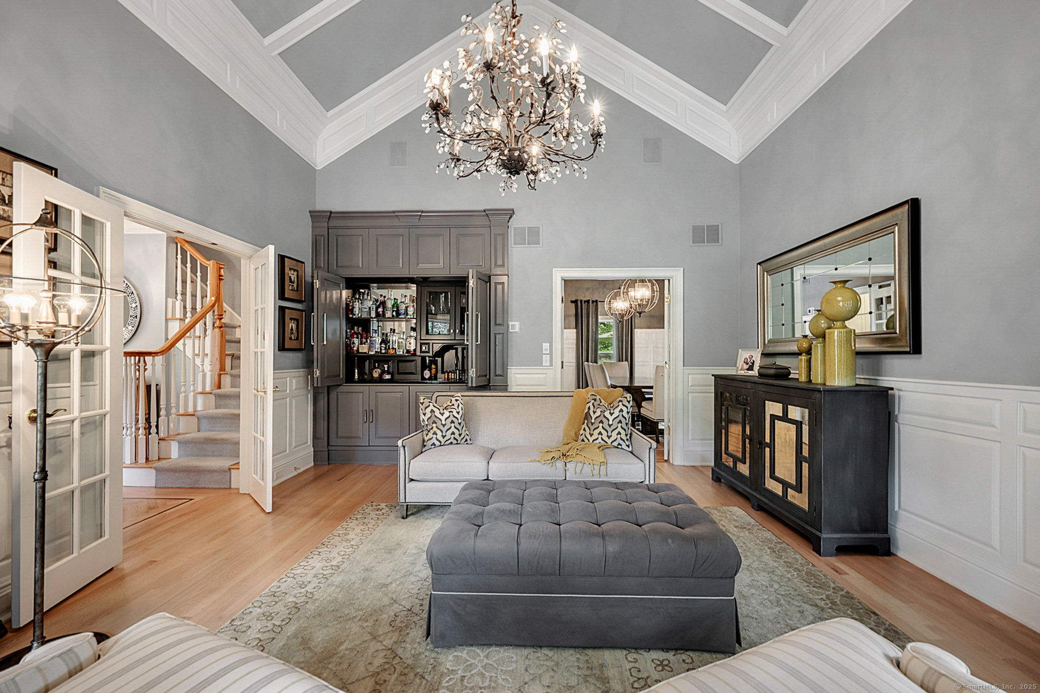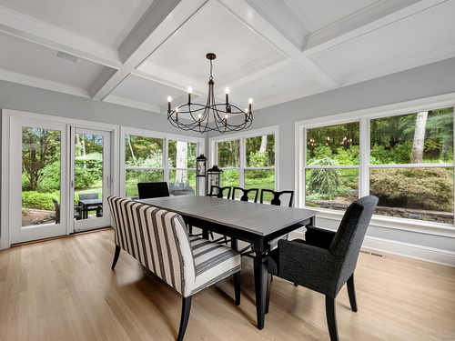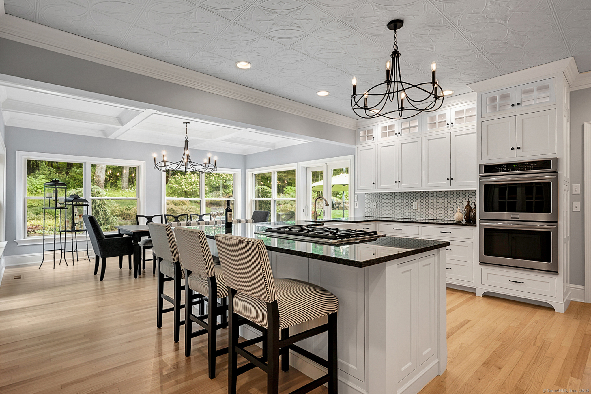 A one-of-a kind home home curated with the utmost of design and details, set on 4.78 acres of lush beauty and serenity. From the minute you enter the home, the luxurious finishes and wonderful layout is noticed. Whether day-to-day living, or gatherings of any size, this home and property is well suited. The Formal rooms have incredible finishes from a vaulted turret ceiling, to gorgeous light fixtures and designer window treatments. Even the custom wet bar is exceptional. The beautiful Kitchen is complete with stainless steel appliances, granite counters & marble backsplash, and a unique painted metal ceiling detail. Adjacent is the casual dining area with coffered ceiling and 3 walls of windows overlooking the impeccable grounds. The Family Room has a wood burning fireplace with sliders to the rear stone patio. A first floor bedroom is ideal for guests or a private home office. On the upper level are 3 more well appointed Bedrooms. The Primary suite has a spa-like bathroom, huge walk-in-closet and turret ceiling sitting area. A wonderful place to begin and end your day. The exterior is just as amazing as the inside....a heated in-ground salt-water pool, an 8 person hot tub, multiple stone patios, a custom waterfall feature and a firepit area with stone walls and detailed lighting. The landscaping has been thoughtfully designed with specimen trees and shrubs, a separate garden area, and a variety of perennials throughout.